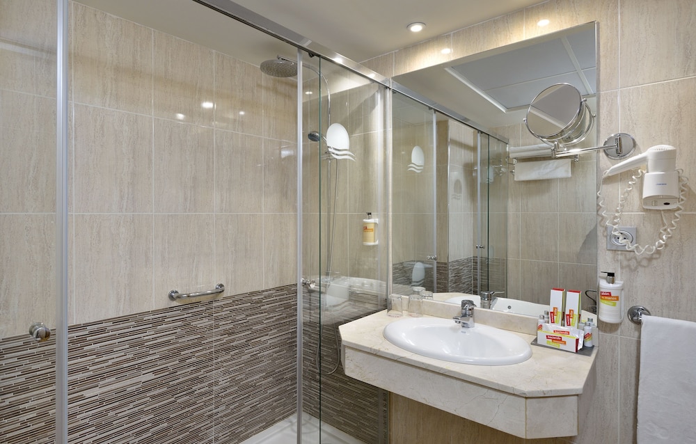 The rooms are spacious, walk in shower is excellent, gym is well equipped, plenty of sunbeds though half of them need replacing, staff are excellent, this is a 4 star hotel and deserves that recognition. Don't go to the sister hotels.