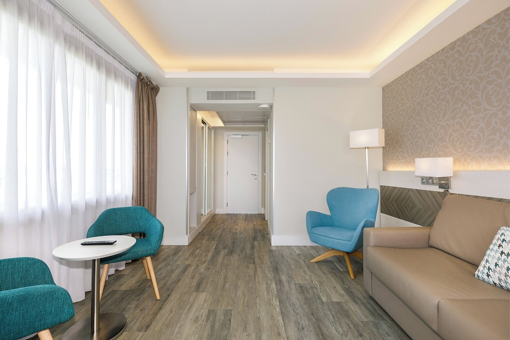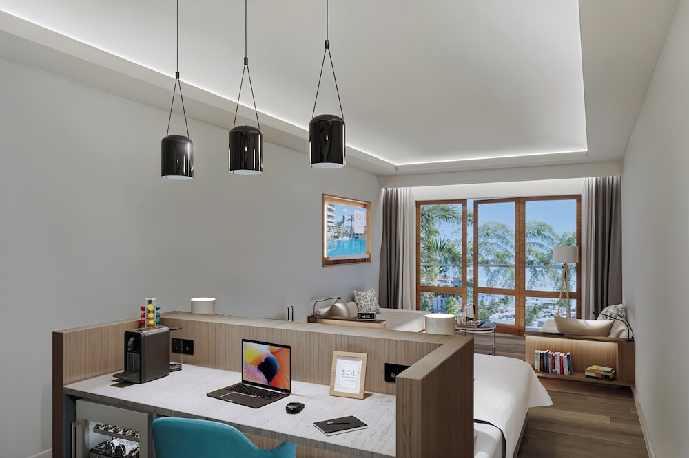 Great check in and a great room upgrade. All down hill after this. The service around the hotel is awful. The bar and restaurant are very badly managed and understaffed. The worst experience was dinner, extremely rude waitress or server, don't want to offend the title. Alicia was one of the worst staff I've ever encountered in a Sol hotel . Alicia was rude, unhelpful and frankly aggressive. The food was dreadful, dry curled up meat, limp looking salad, etc. Tables were left uncleared for long periods with parts of the restaurant cordoned off for no reason, appalling.