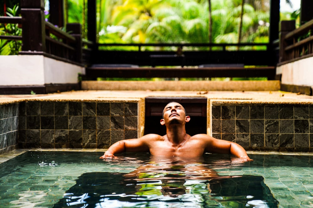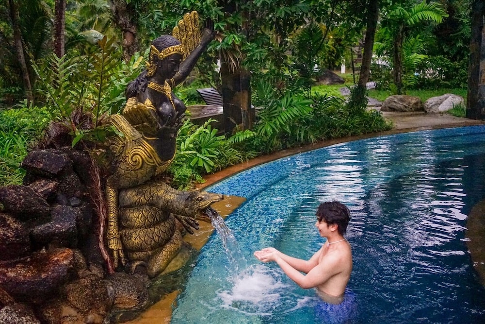 An excellent choice with a superb setting (lively stretch of beach) but the main attraction here are the wonderfully iron-water natural hot springs (and, at 40 degrees, they are hot). Many visitors to Thailand don't realise the country is jam-packed with hot springs, most of which we've visited, and these waters are among the best. If you can splurge on a villa or room that has a private hot spring pool then it's worth it for privacy/calm to soak anytime you want, but the two hot pools in the main complex are enormous and you'll always find space - but might get busy from day visitors (so avoid mid-day soaks). The icy cold plunge pool is wonderful and deifnitely creates a great balance to the 40-degree waters. You emerge from a combination of the two feelign very refreshed.