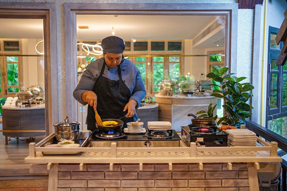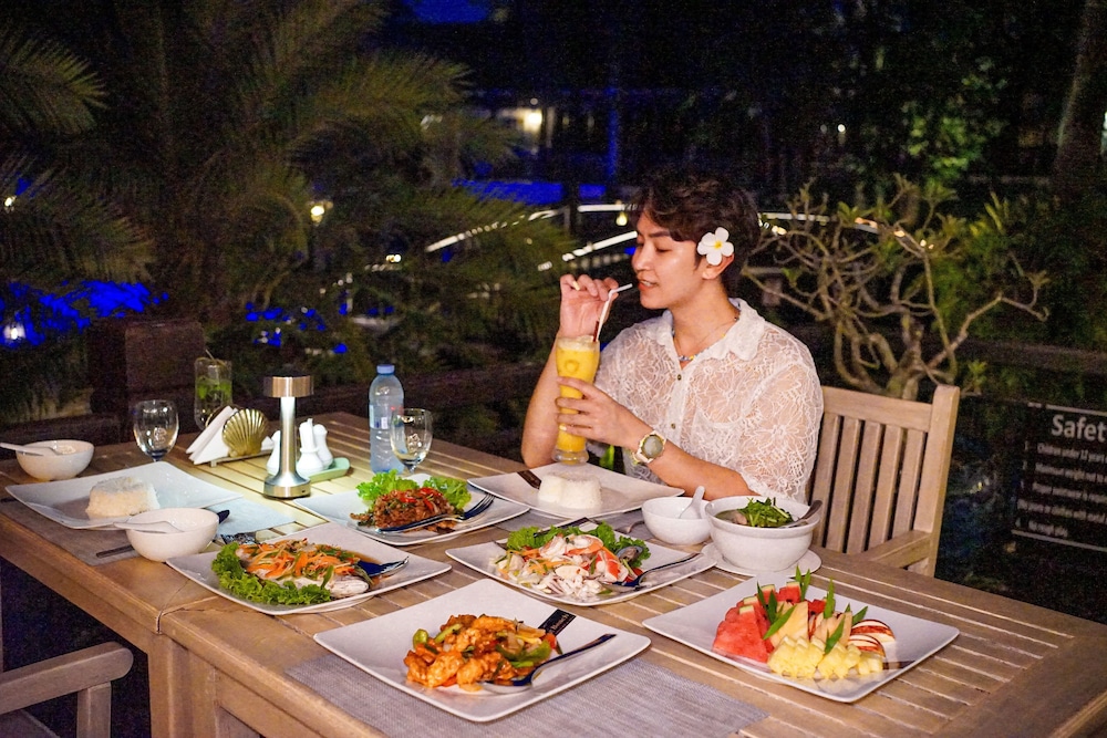 Savor authentic Thai cuisine at Patcharin Restaurant, complemented by a refreshing swim-up bar, making every meal an experience in paradise.