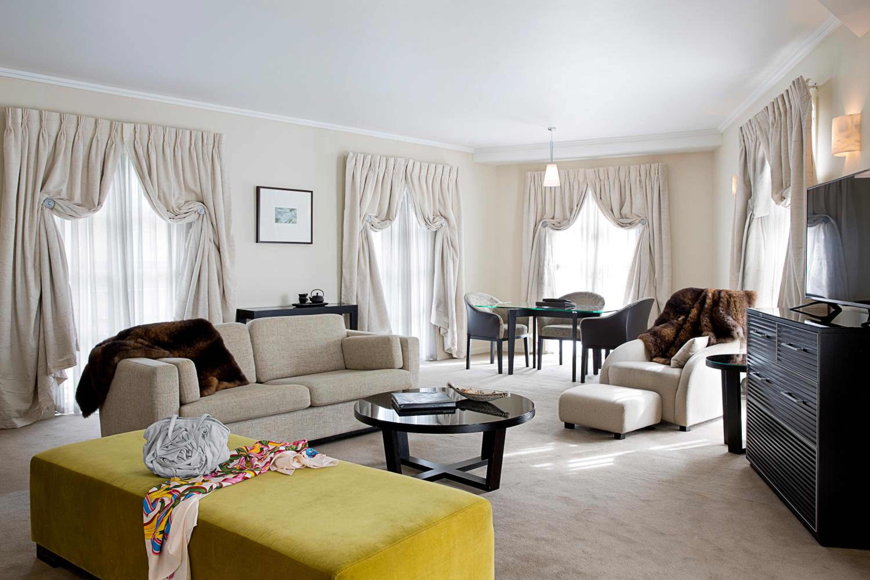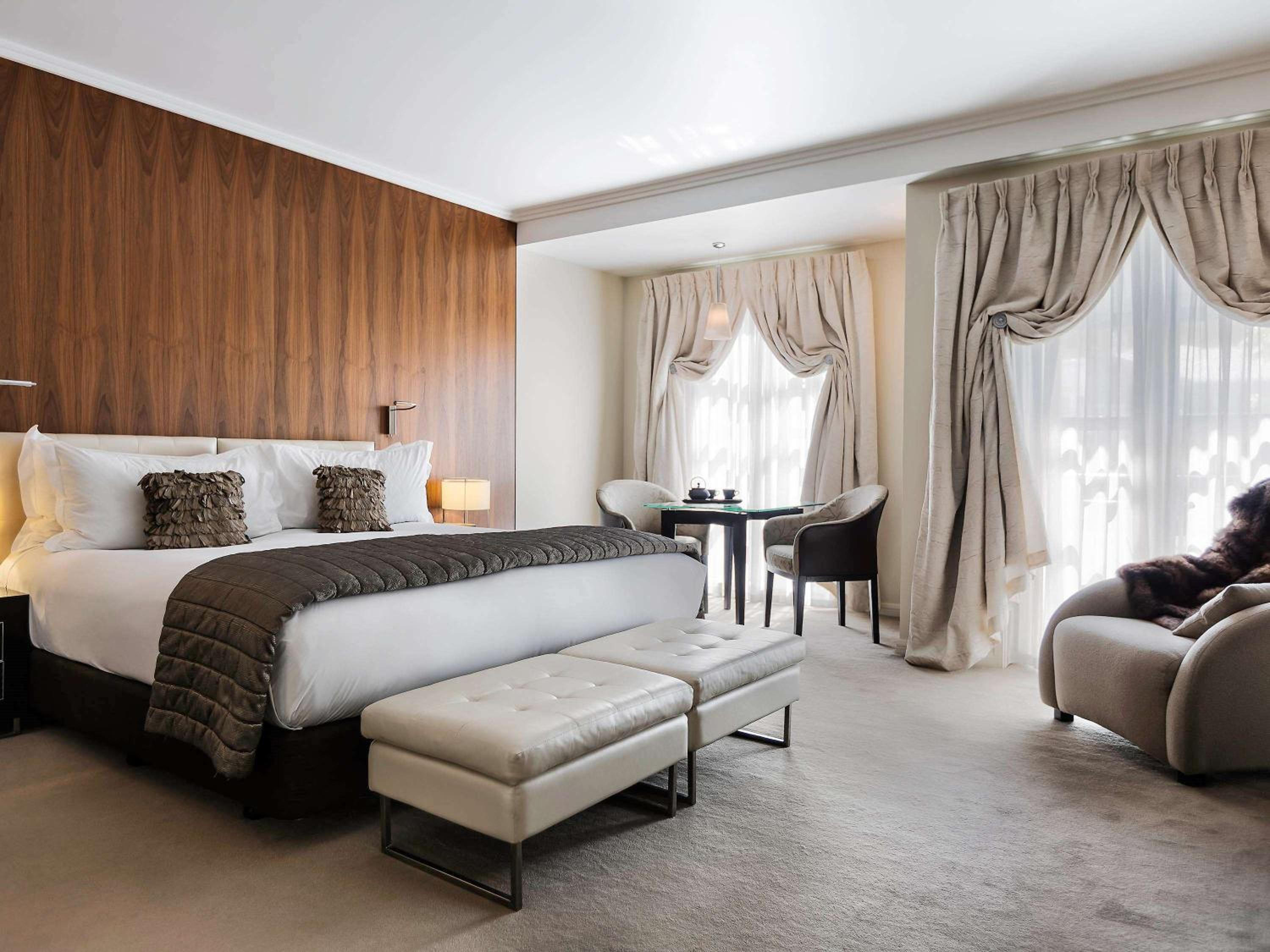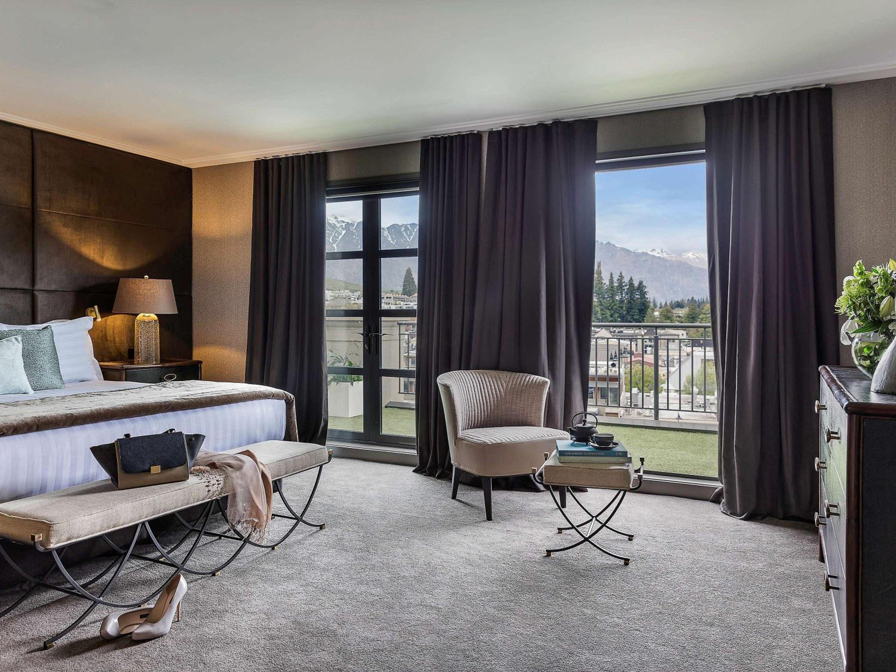 Indulge in French luxury at Sofitel Queenstown Hotel and Spa. Each room features a marble bathroom, double spa bath, and Sofitel's signature "MyBed" for ultimate comfort.