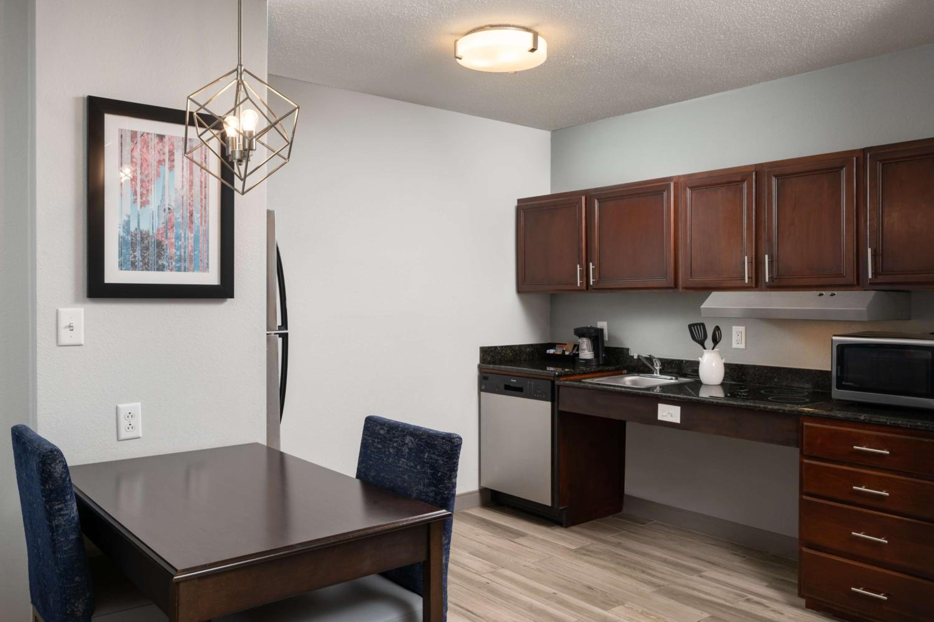 Enjoy a range of amenities including a business center, basketball court, gym, and outdoor pool. The rooms feature full kitchens, MP3 docking stations, dishwashers, and microwaves, providing the comfort of home during your stay.