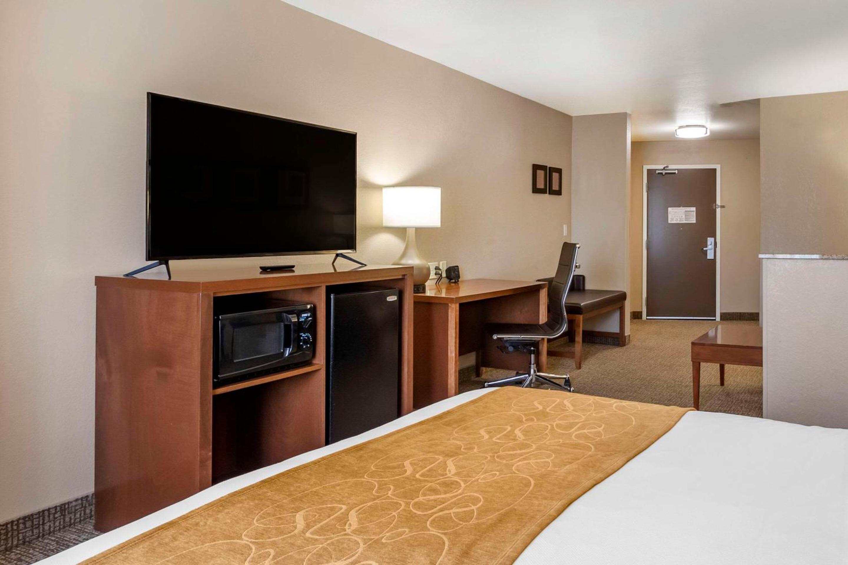Guests can start their day with a complimentary hot breakfast or opt for a Grab & Go bag. The hotel also boasts a fitness center, indoor pool, and hot tub for relaxation. Business travelers will appreciate the free high-speed internet, while all guests can benefit from the in-room amenities like microwaves and recharge devices.