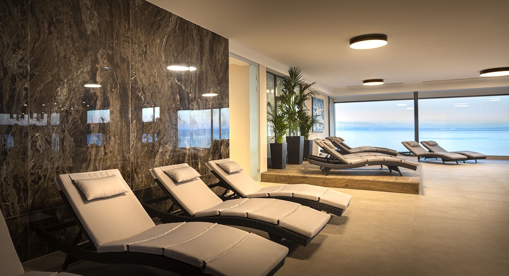 The hotel is located at a quiet area about 25-minutes walk distance from the bus station and center with beautiful sea view. The room and bedding are comfortable but the bathroom is very dark. The spa center is small. The breakfast coffee is good but the food is not very tasty. The receptionists are not enthusiastic.