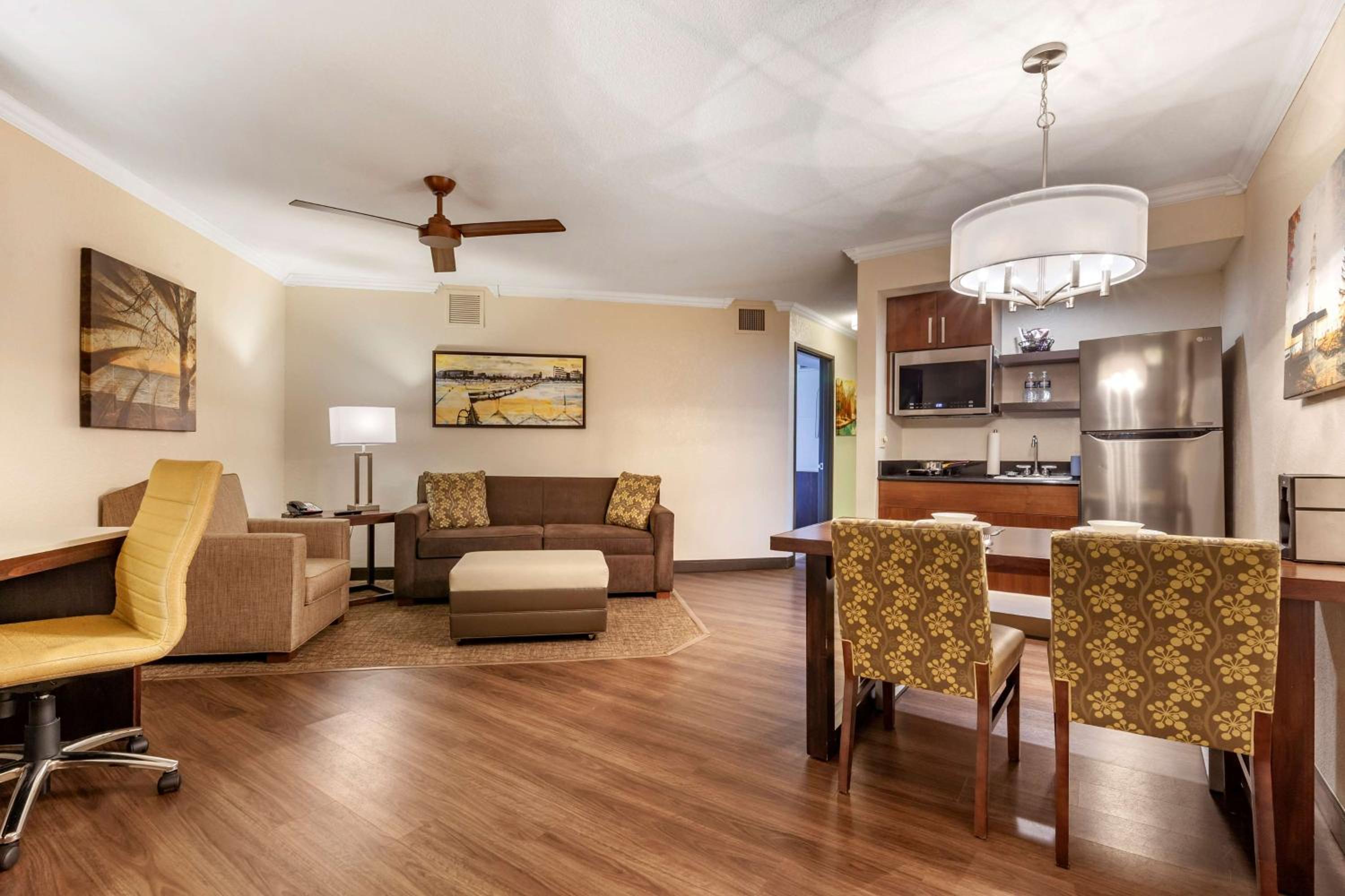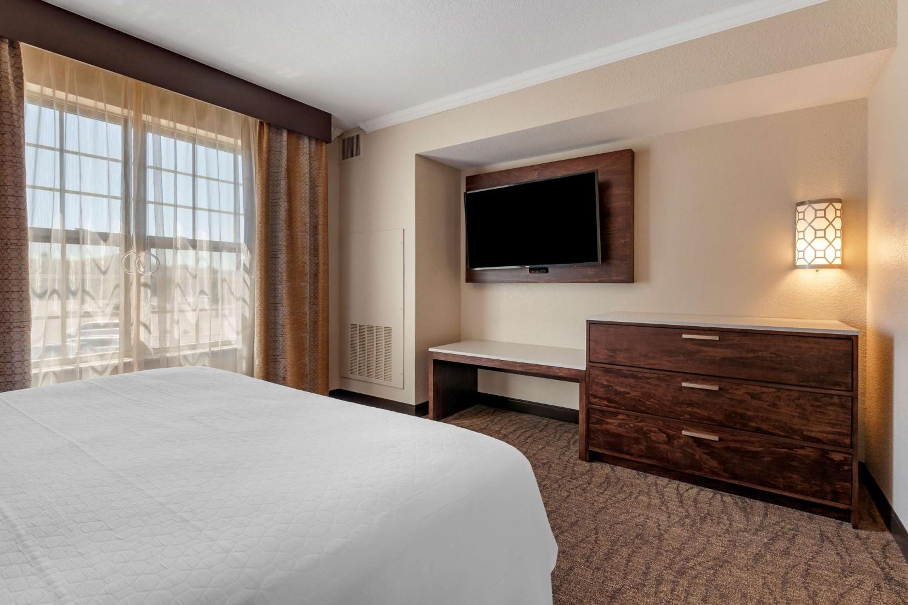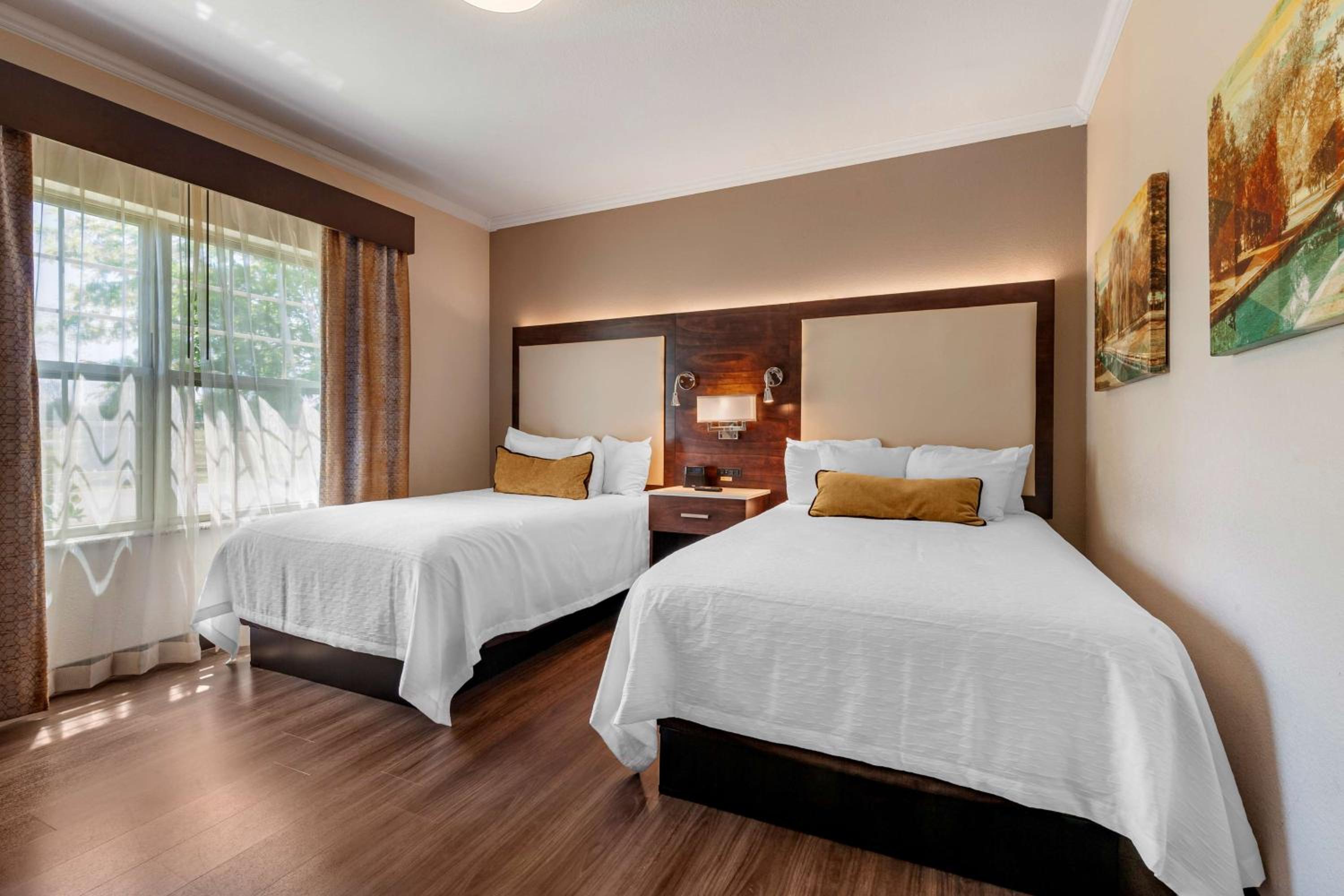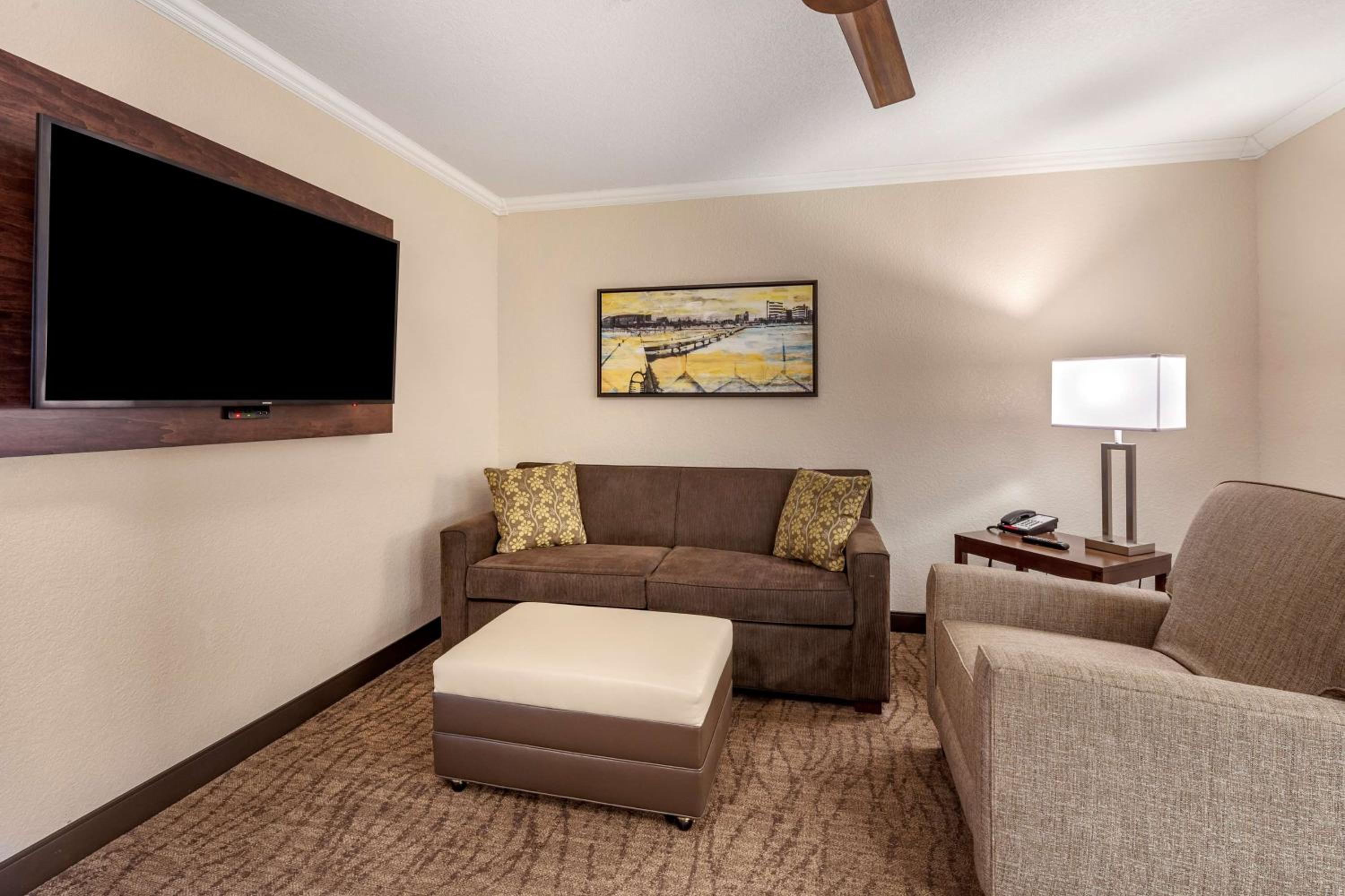 Chose this hotel due to having an onsite restaurant and it was close to our business destination. So glad we found it! Staff were very nice and professional. Rooms were very quiet and clean, had everything we needed. Hot tubs and pool and arcade for families, onsite bar and grill with delicious food at great prices. Just an overall great experience.