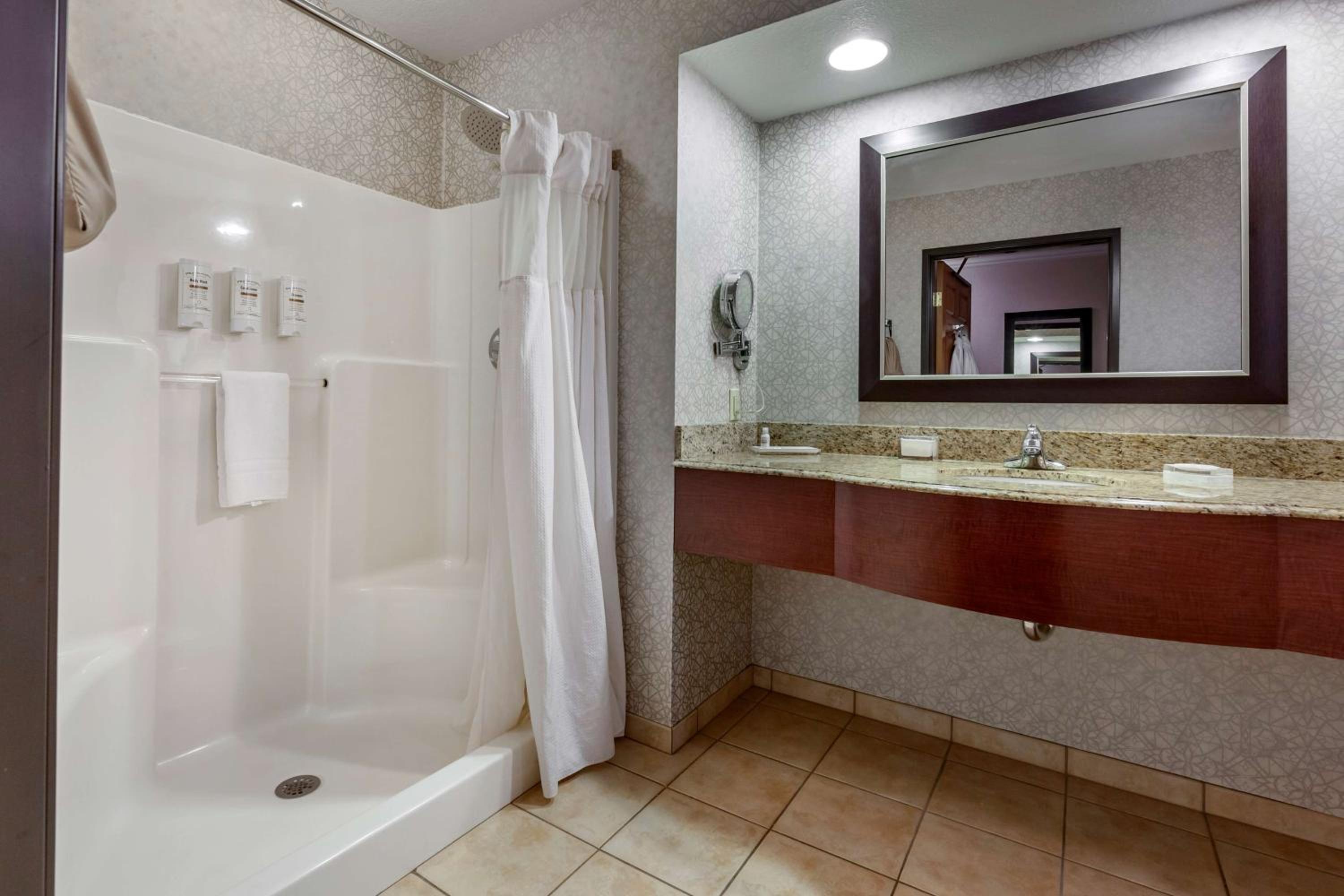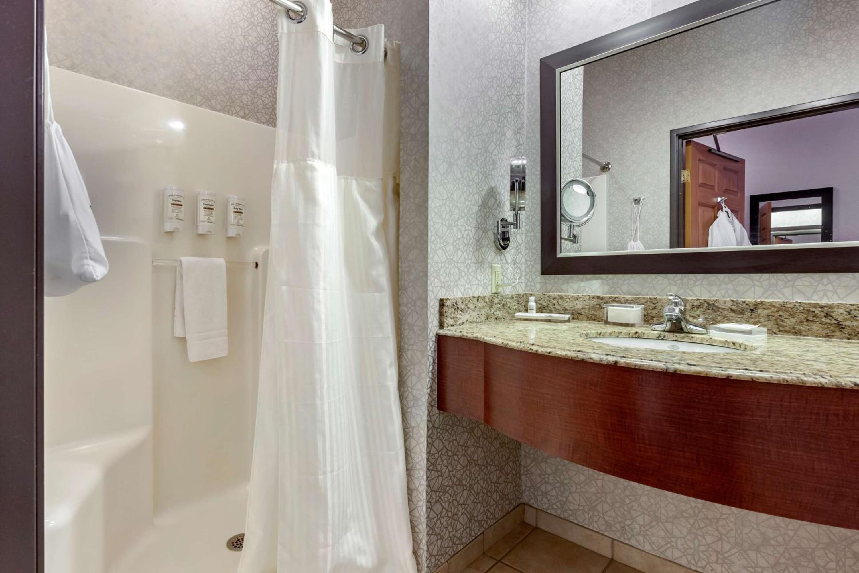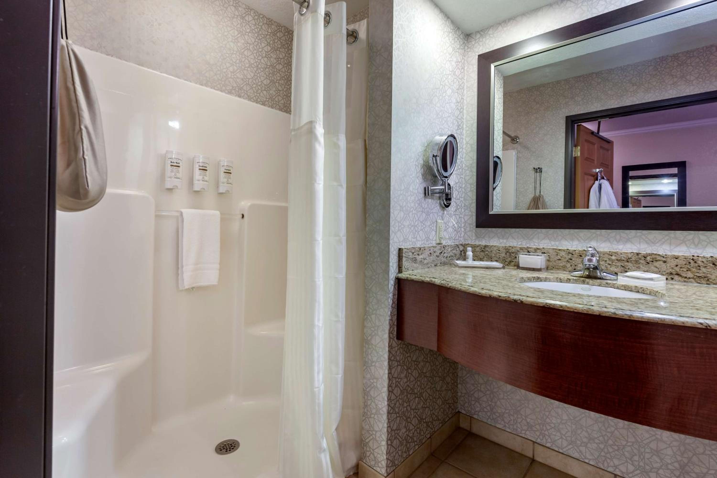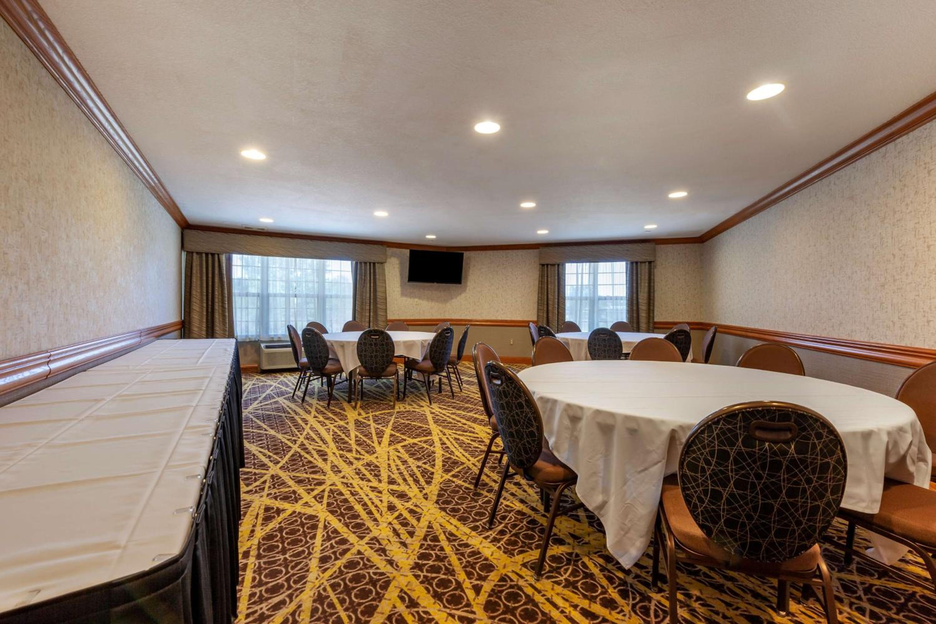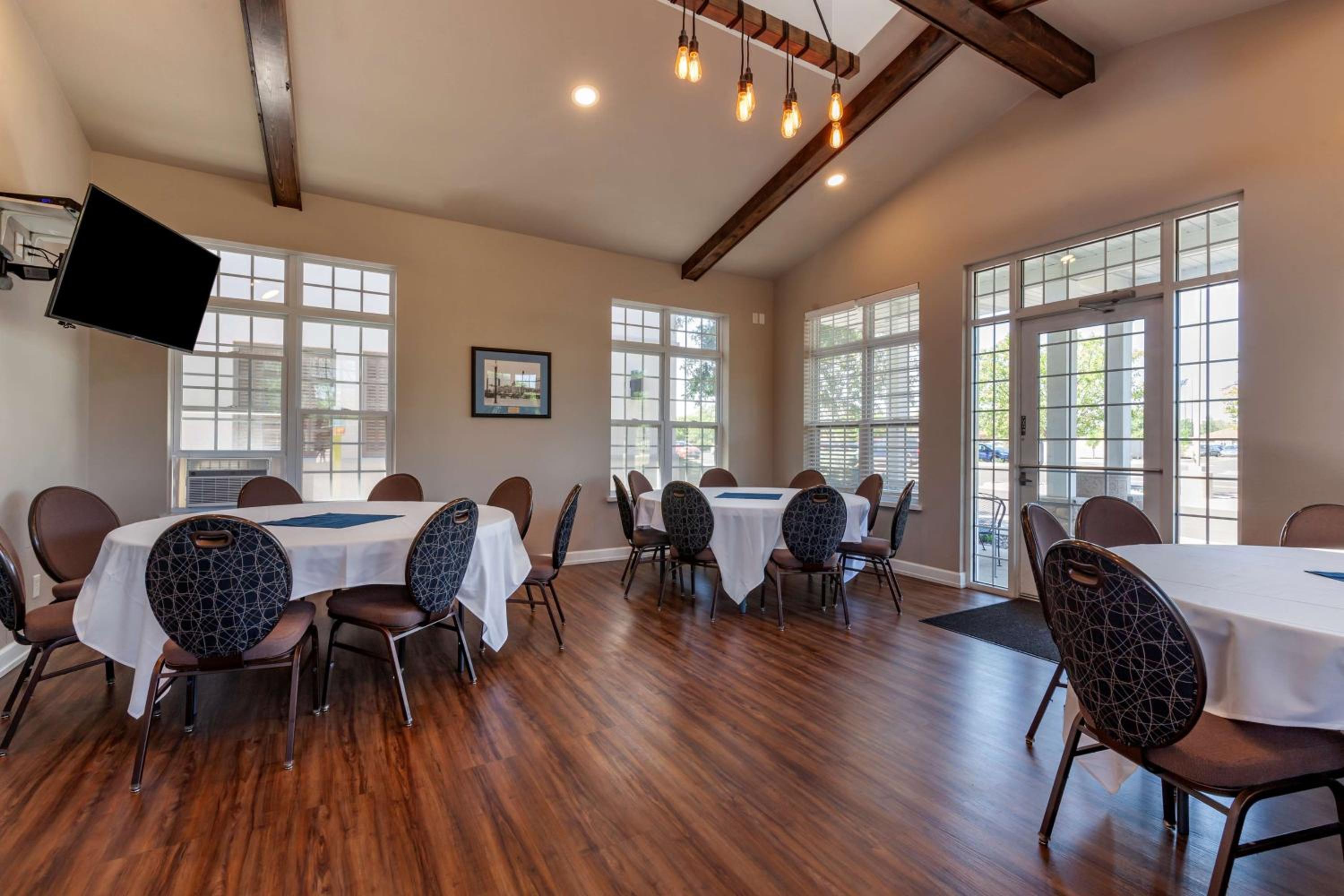 Chose this hotel due to having an onsite restaurant and it was close to our business destination. So glad we found it! Staff were very nice and professional. Rooms were very quiet and clean, had everything we needed. Hot tubs and pool and arcade for families, onsite bar and grill with delicious food at great prices. Just an overall great experience.