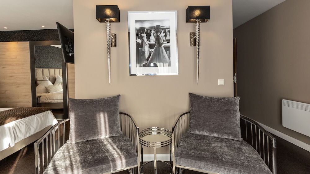 lugar incrível, o hotel por fora parece simples mas por dentro e lindo, a sala de recepção e maravilhosa, a parte da piscina aquecida e saunas muito agradável. O quarto, roupa de cama, banheiro com ducha perfeito, tudo tudo maravilhoso. café da manhã com variedades de queijos, presuntos, geleias, pães e frutas. Um cantinho com salsichas, ovos mexidos, ovos cozidos e batatinhas. Como chegamos tarde, pegamos um buffet maravilhoso com um bife perfeito, pelo preço de 28euros por pessoa, com direito a sobremesa. Voltaria a ficar lá com certeza.