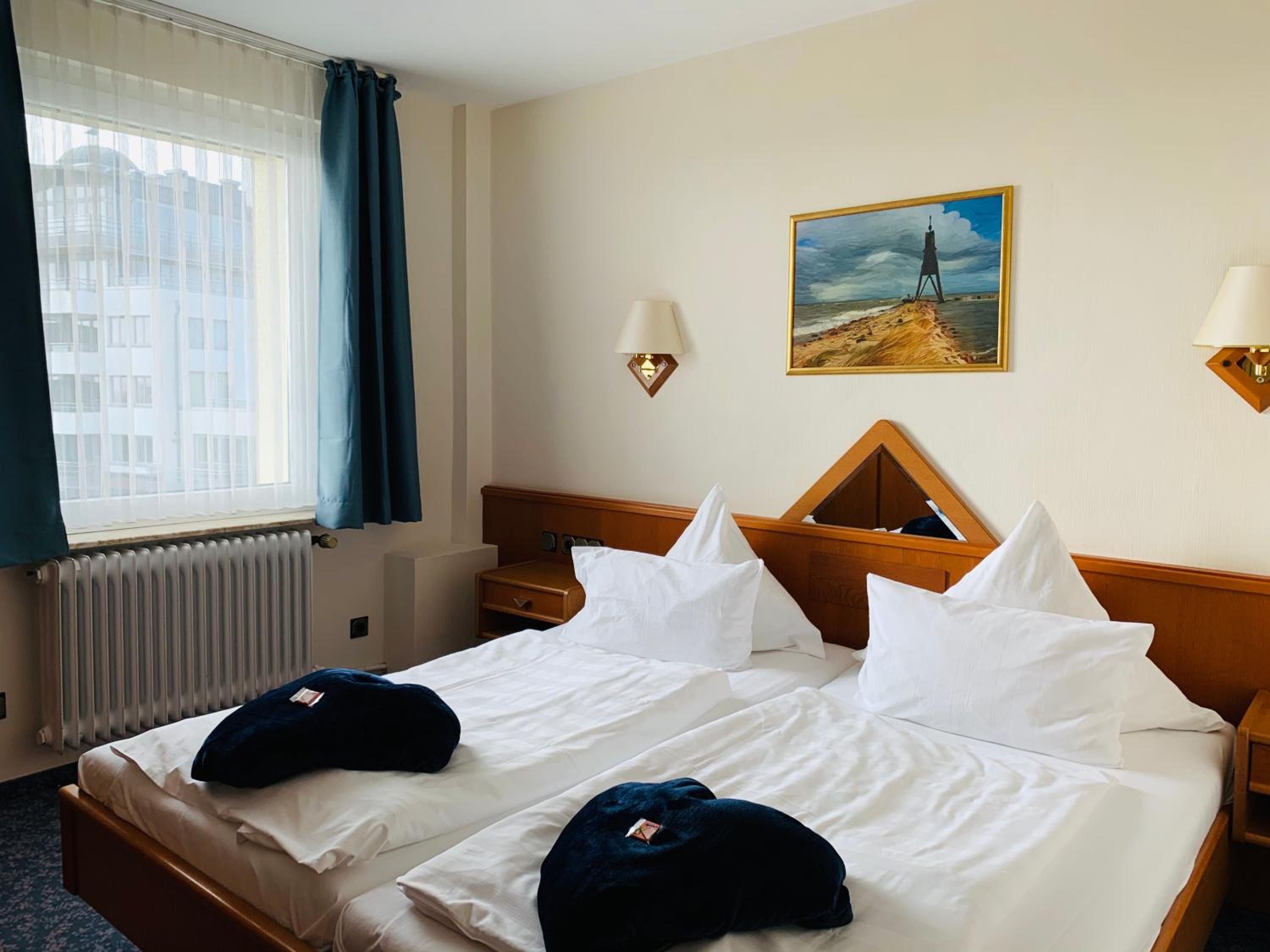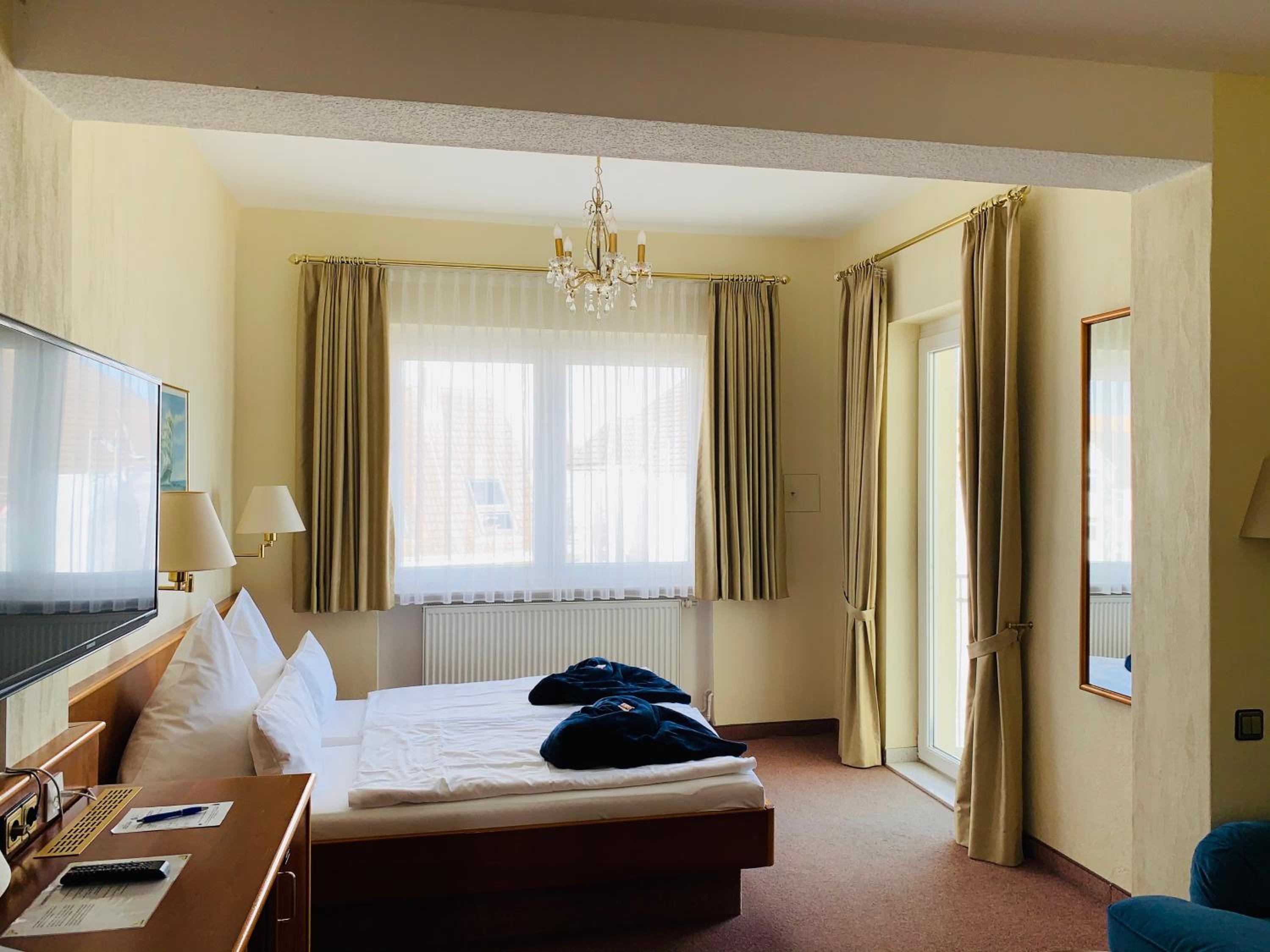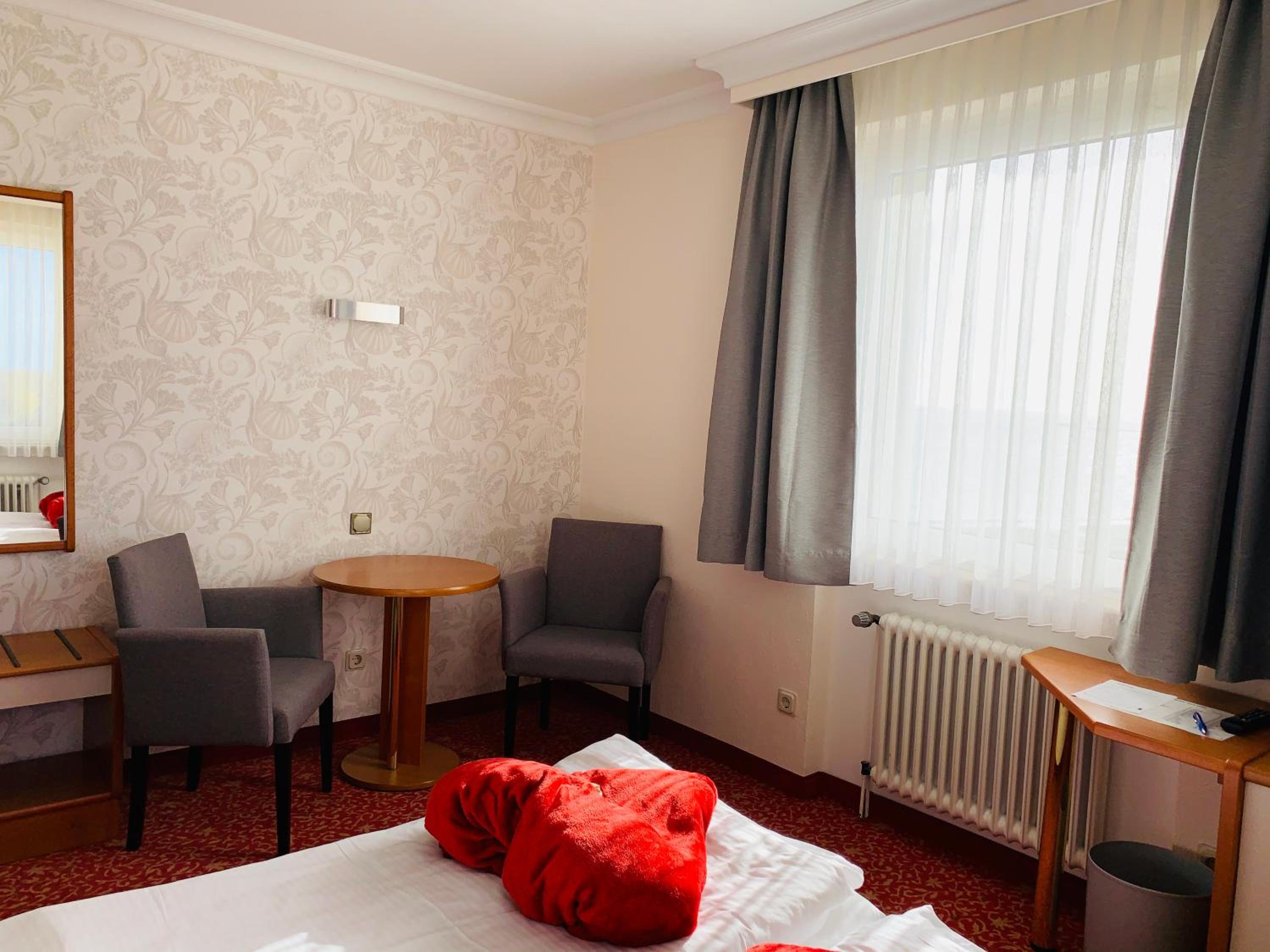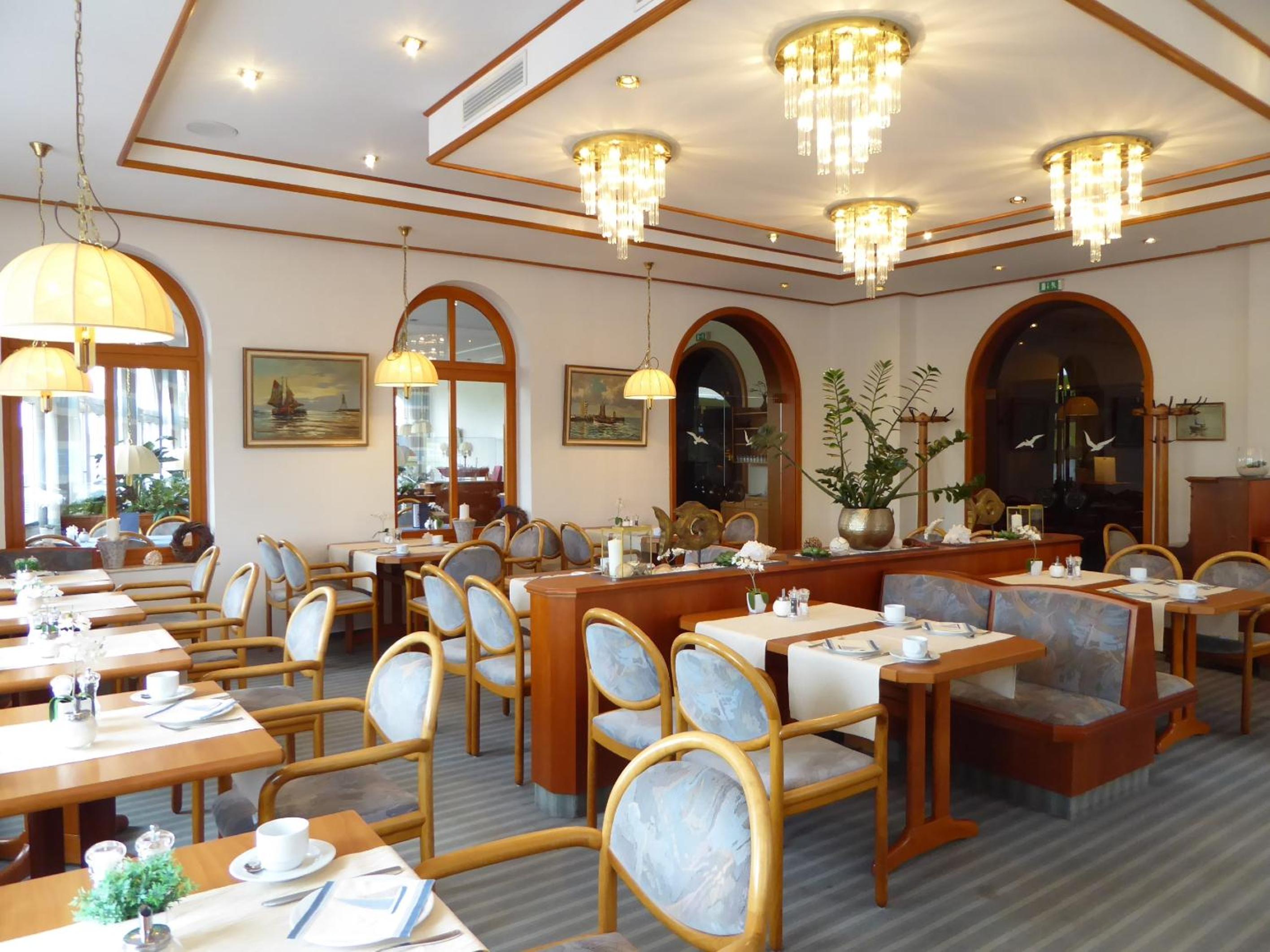 Start your day with a hearty buffet breakfast and explore the nearby Grimmershörnbucht bay with its cozy beach chairs. The hotel also offers free Wi-Fi, a large garden, and free parking, making it a convenient choice for travelers.