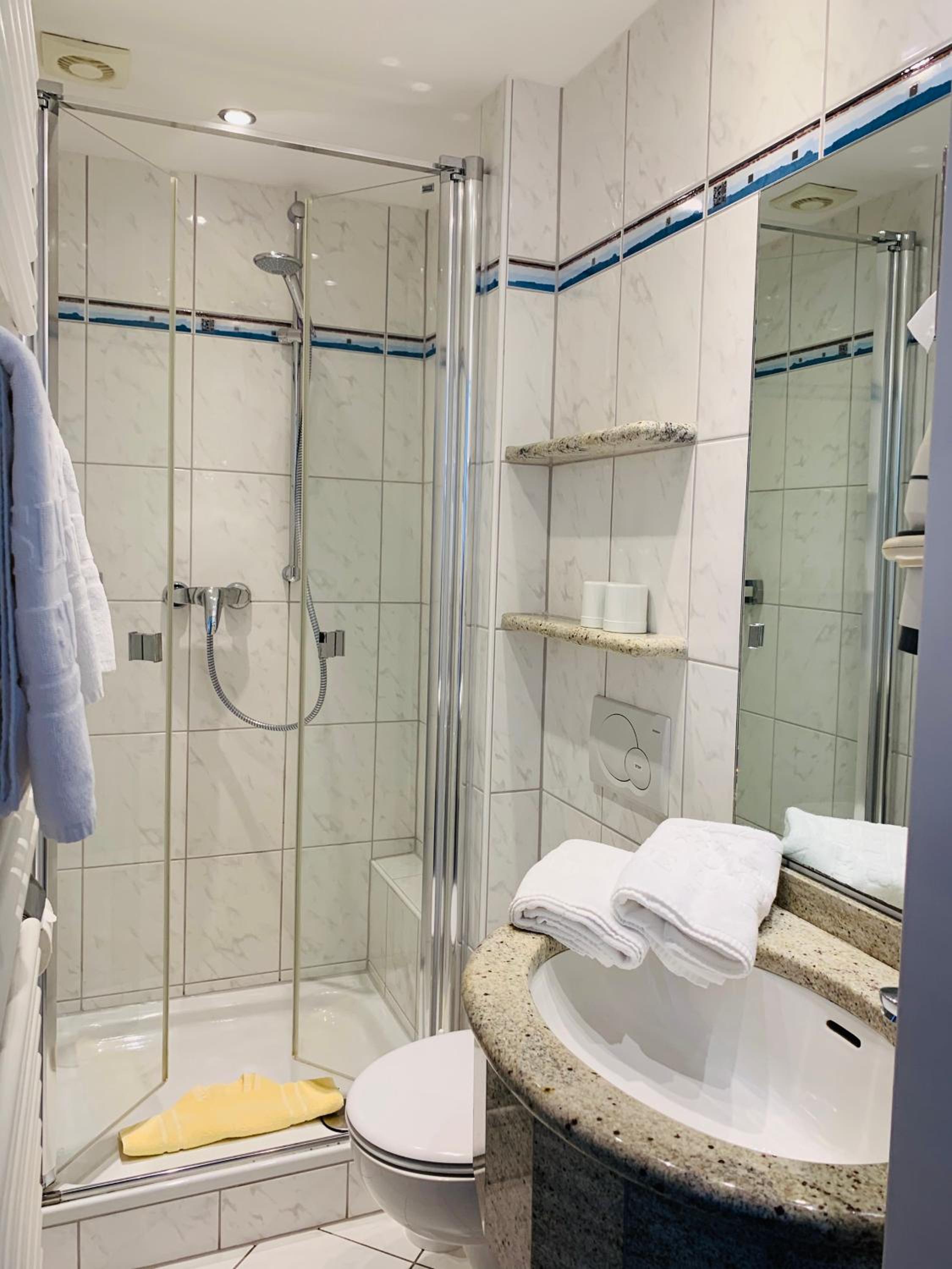Das Zimmer war recht klein, genau wie das Bad! Besonders , wenn man etwas kräftiger ist.