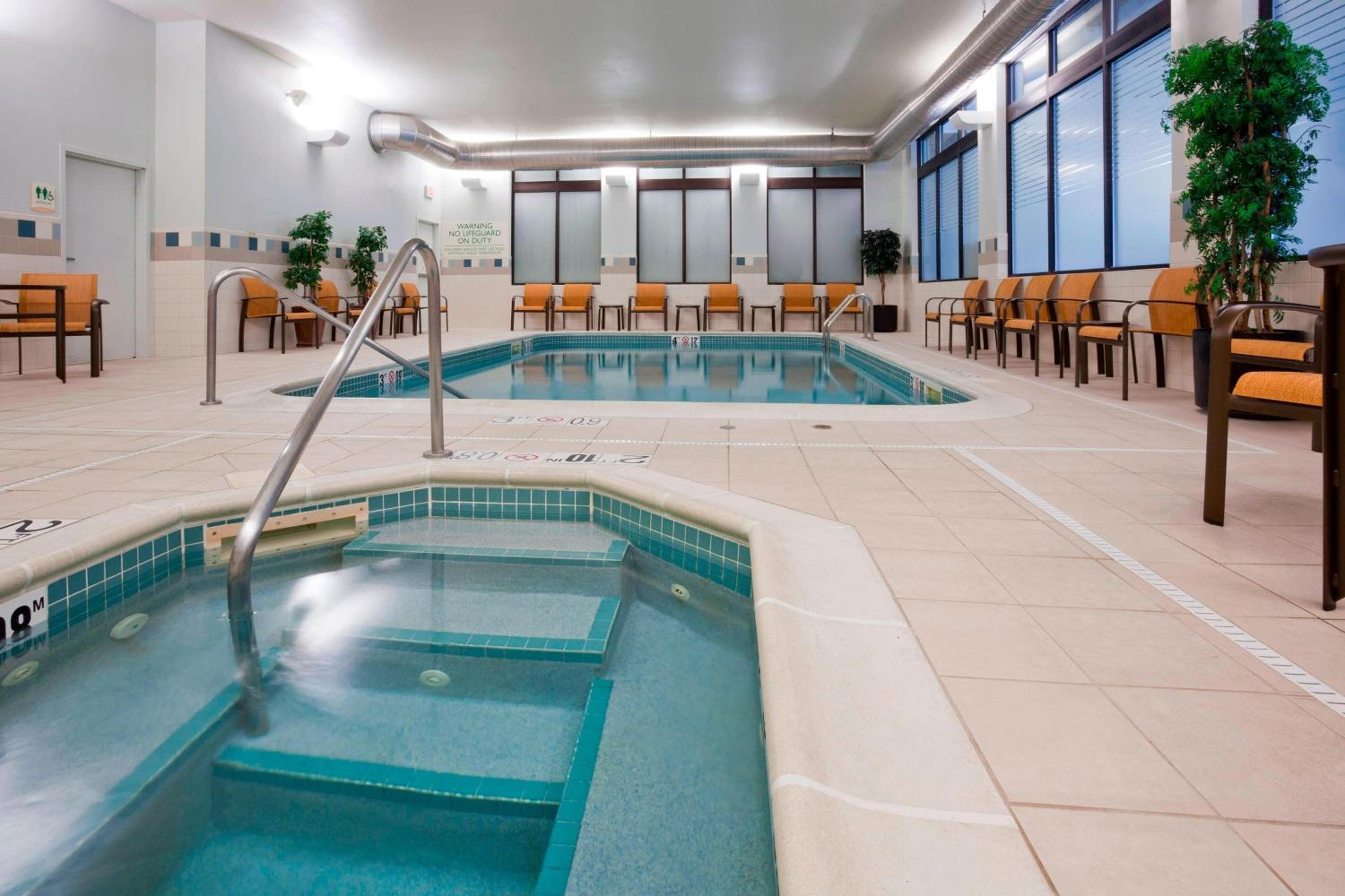 Guests can unwind in the indoor pool, hot tub, and well-equipped fitness center, ensuring a relaxing stay.