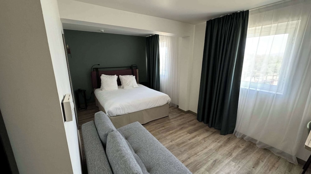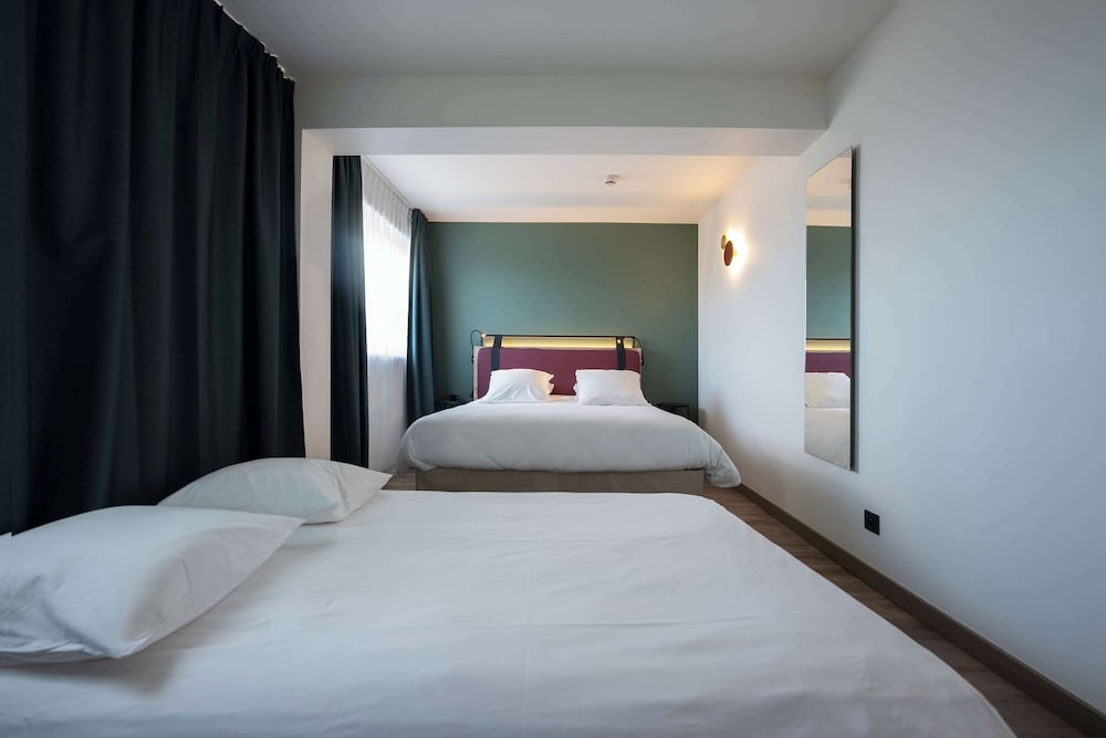 Rien à dire. Chambres très bien et propre. Nous avions 2 chambres communicantes et vraiment sympa. Personnel sympathique. Hôtel bien placé. Le petit plus la piscine.