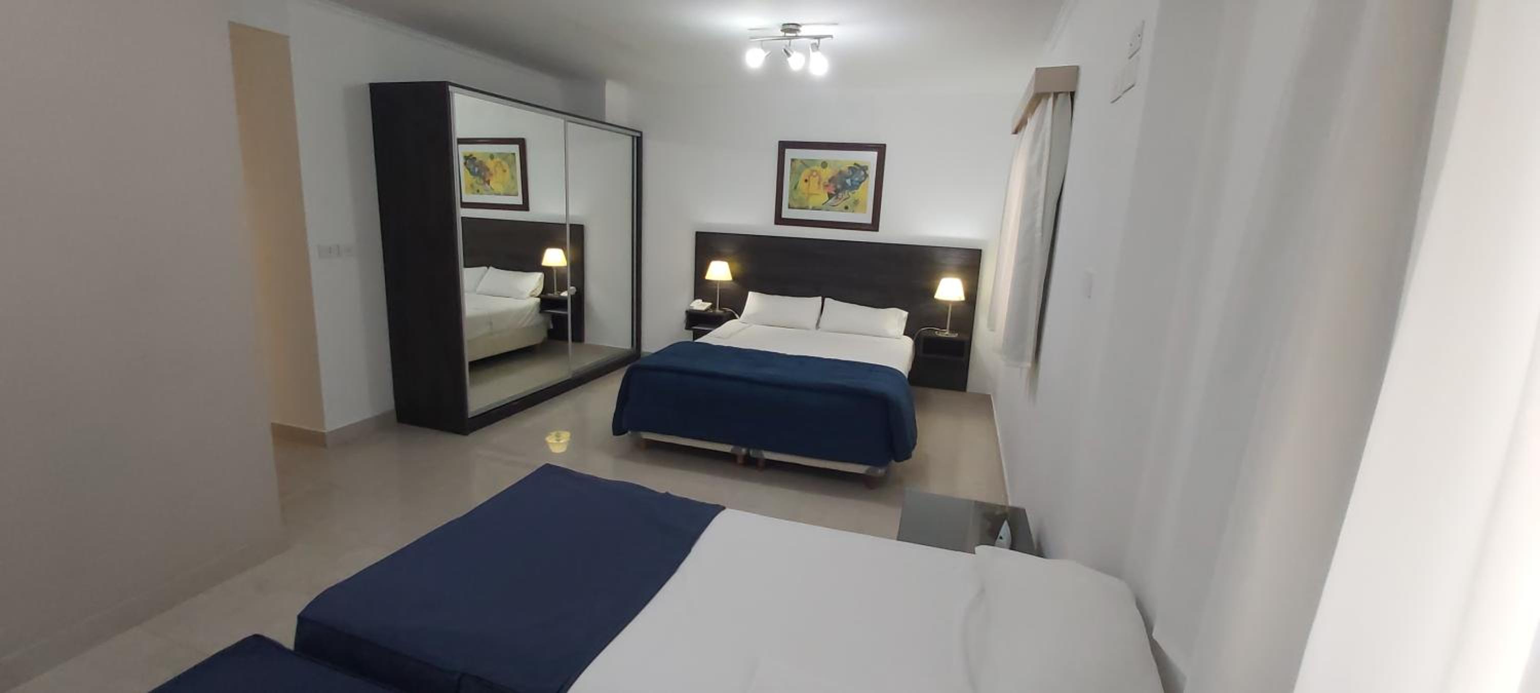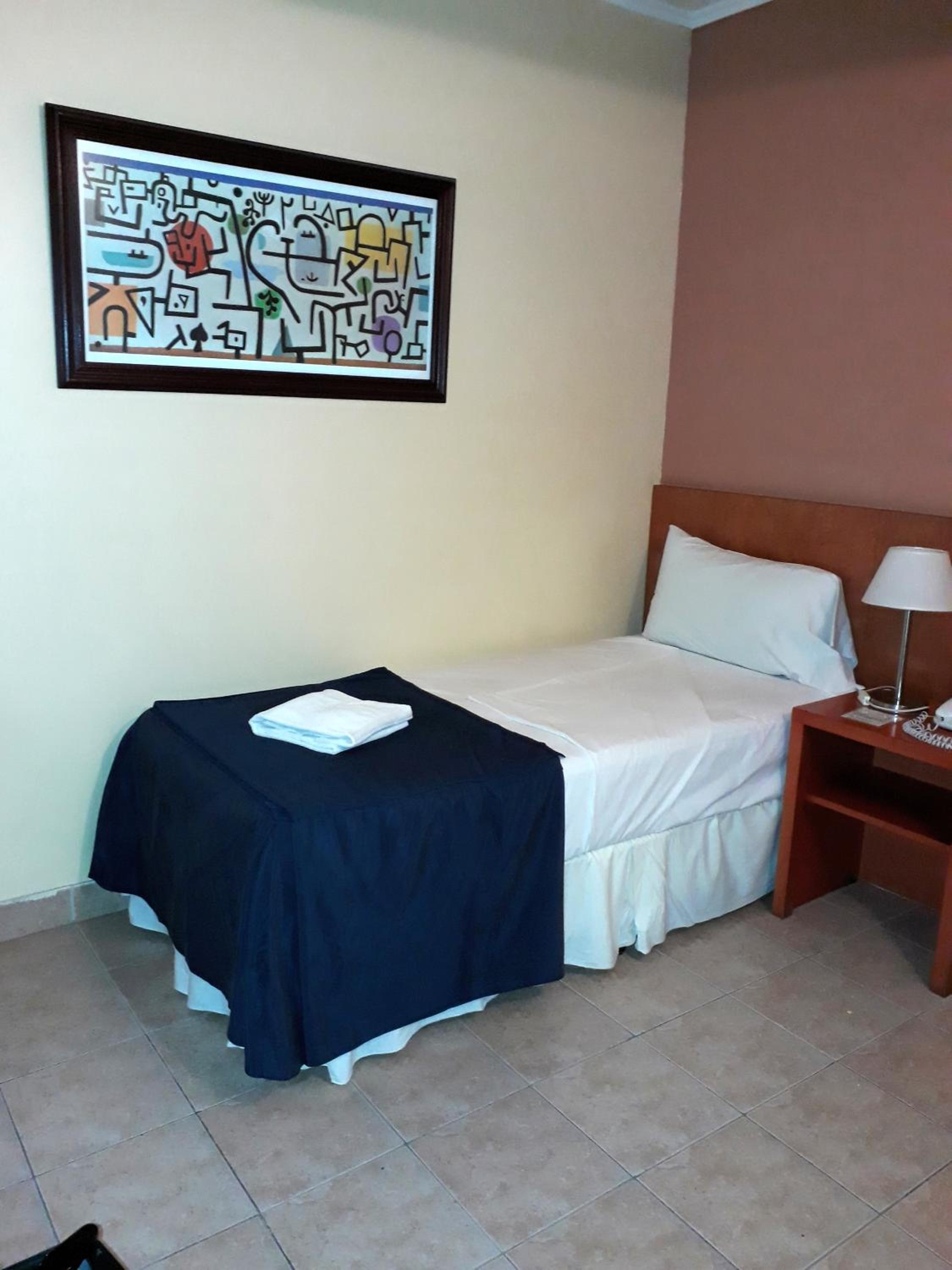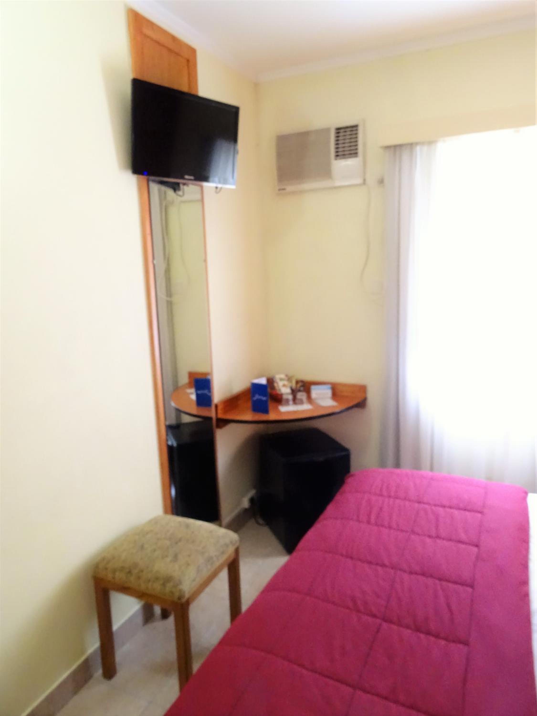 Habitación un poco chicas. Podría tener un televison o pantalla mas grande en la misma.