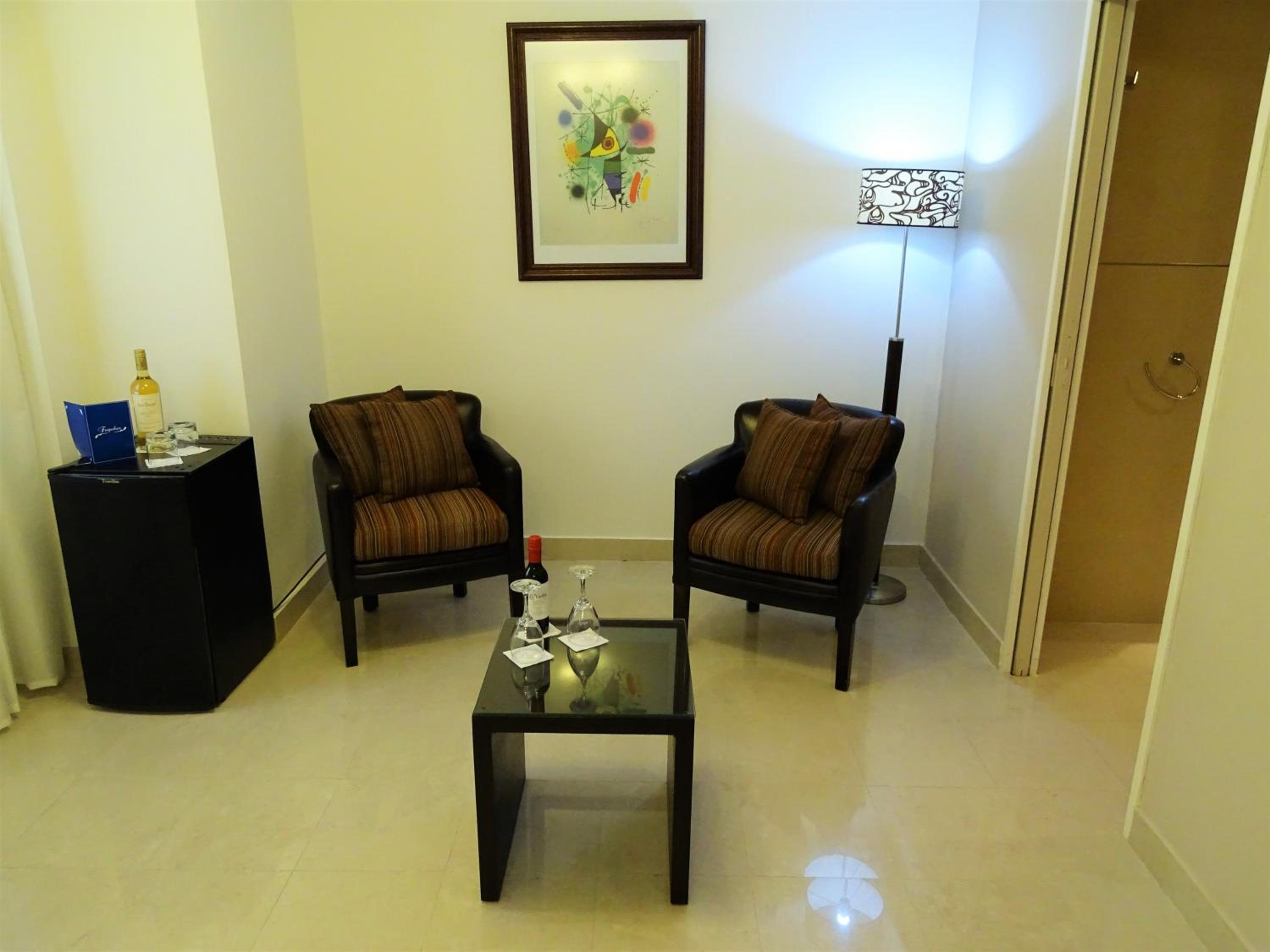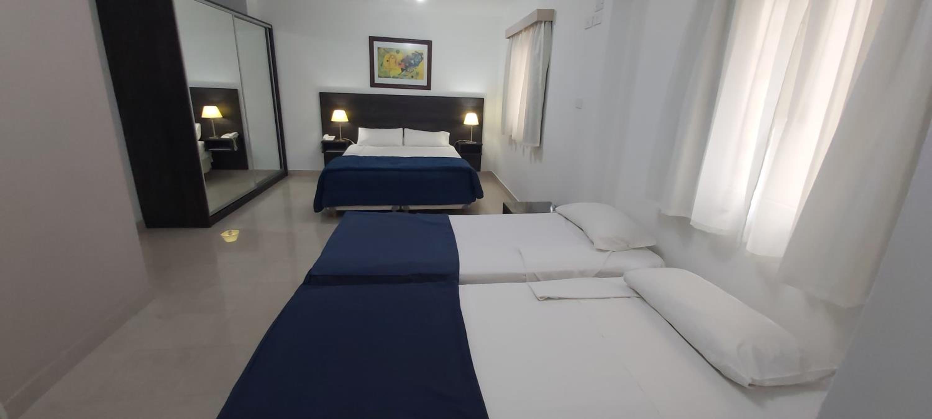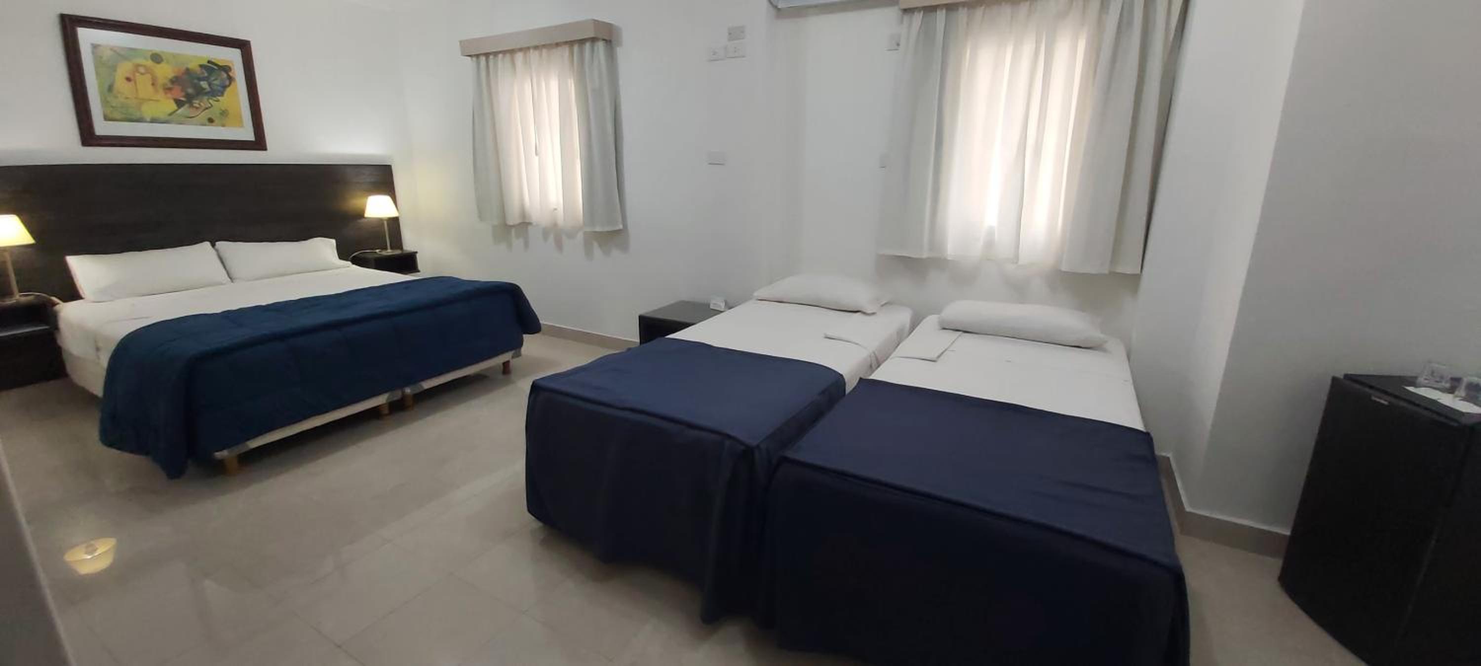 Habitación un poco chicas. Podría tener un televison o pantalla mas grande en la misma.