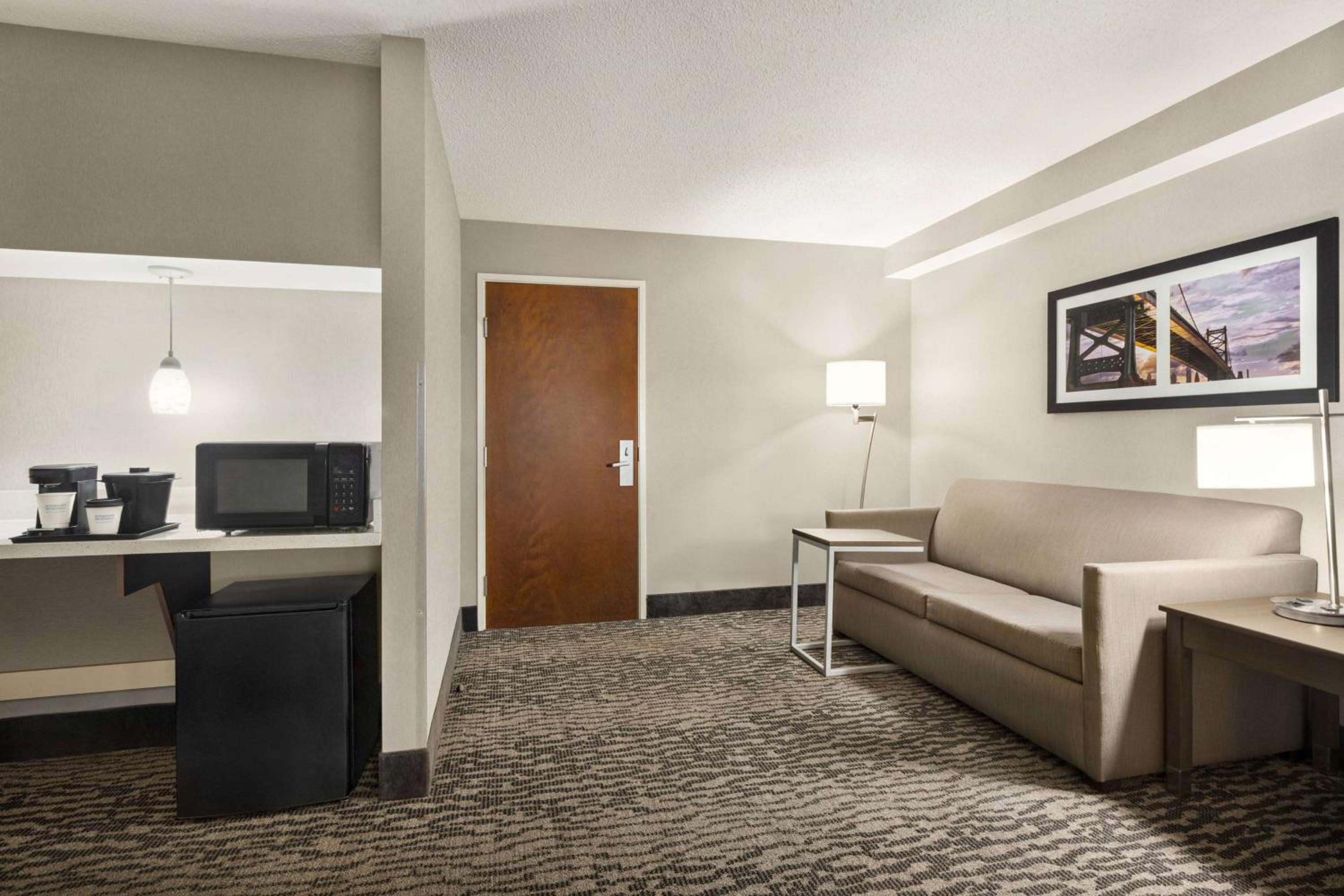 Cozy Accommodations: Unwind in guest rooms equipped with a small refrigerator, microwave, and coffee-making facilities, along with a flat-screen TV for entertainment.