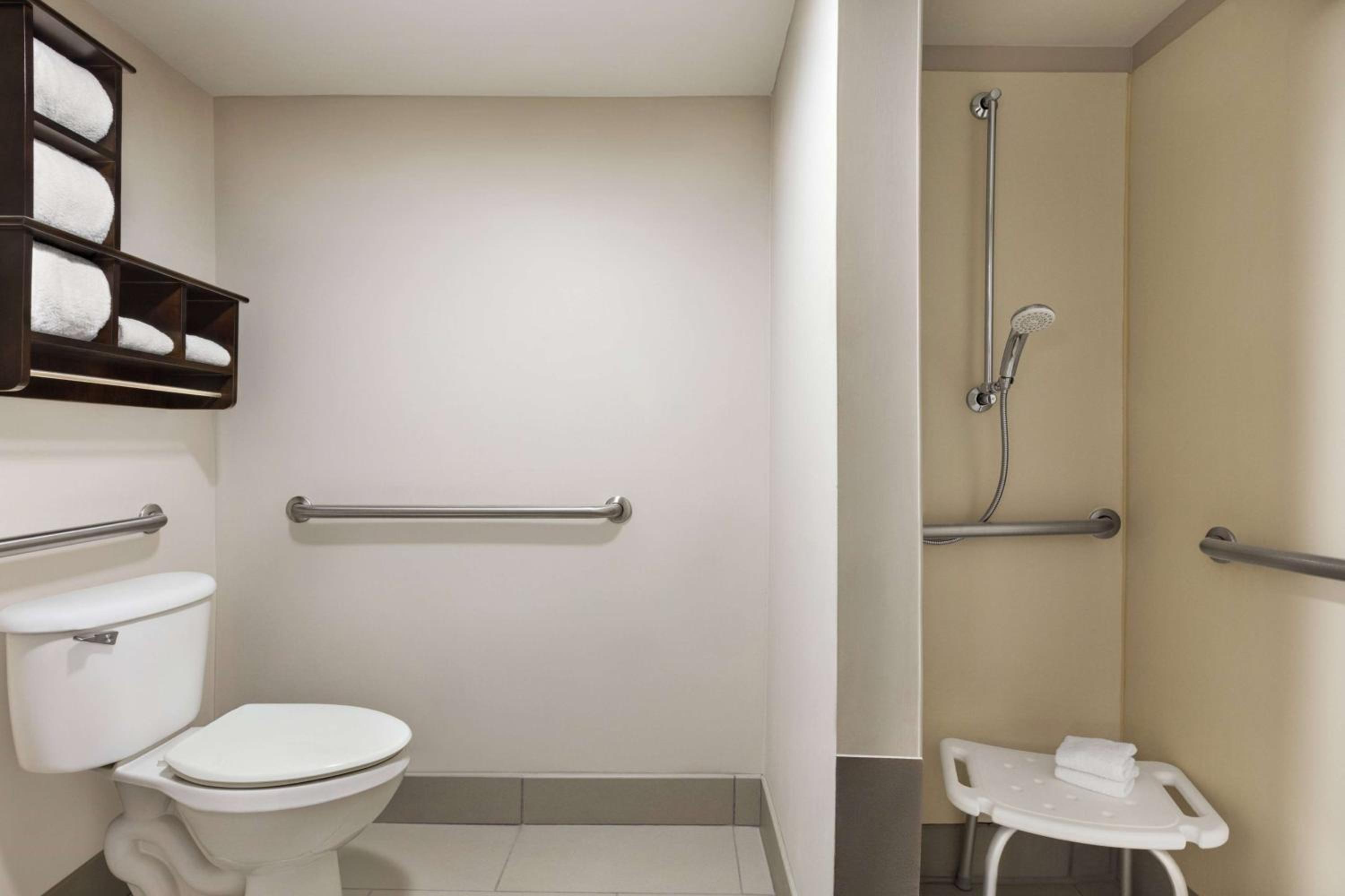 Interacted with staff once for about 30 seconds. Points for having women’s soccer on in the lobby (we were here for another sport but appreciated it). View of the water tower and the red carpet motel were unique.