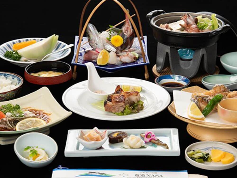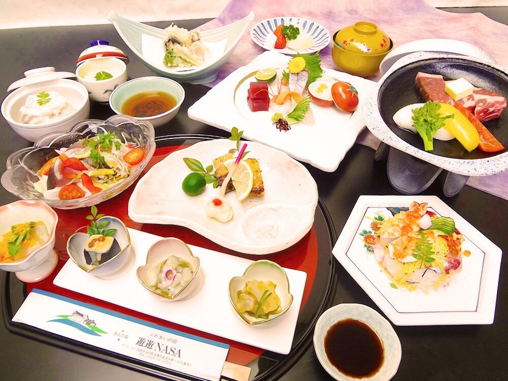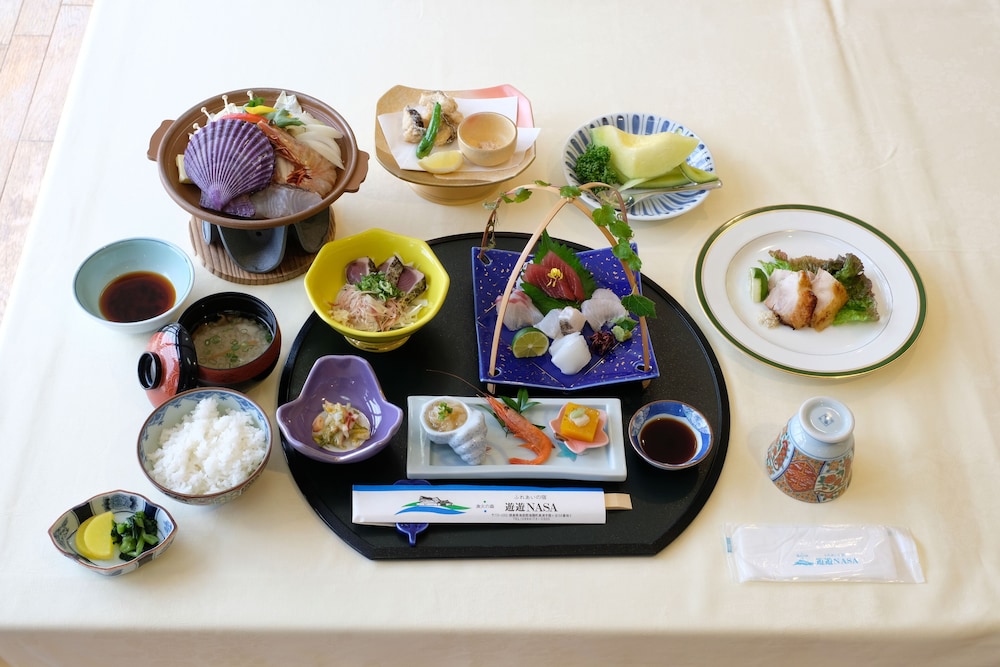 Enjoy a satisfying meal at the restaurant in Fureai no Yado Yu-yu NASA, offering full breakfasts daily for a fee.