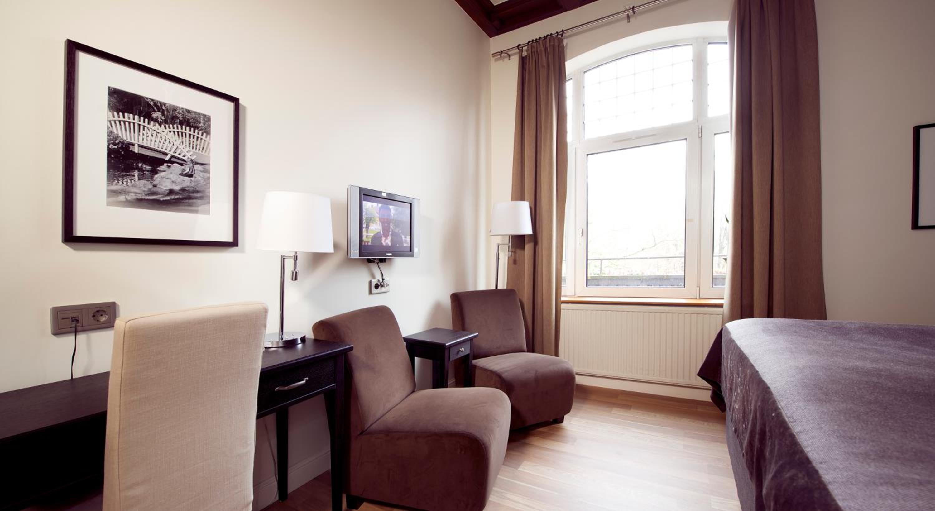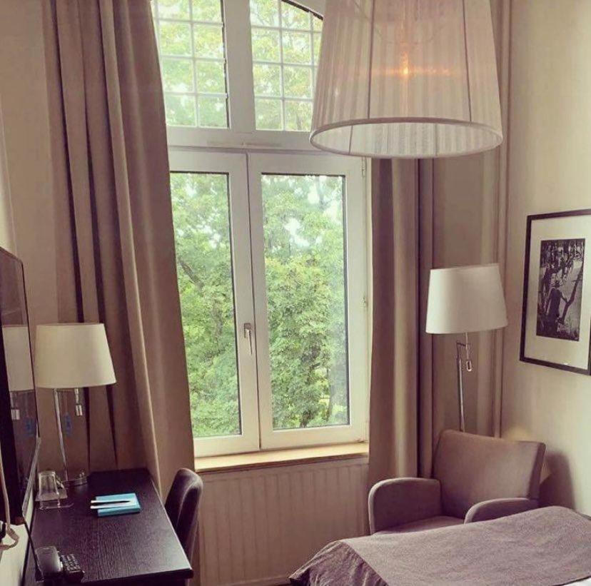 Sköna sängar, bra läge nära centrum och park, nära till parkeringsplatser, go mat som ingick i rummets pris vilket gjorde att vi slapp leta matställen, vacker konst i de olika rummen/avdelningarna i restaurangen och baren.