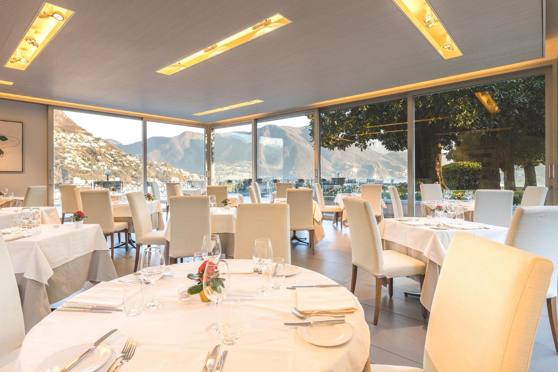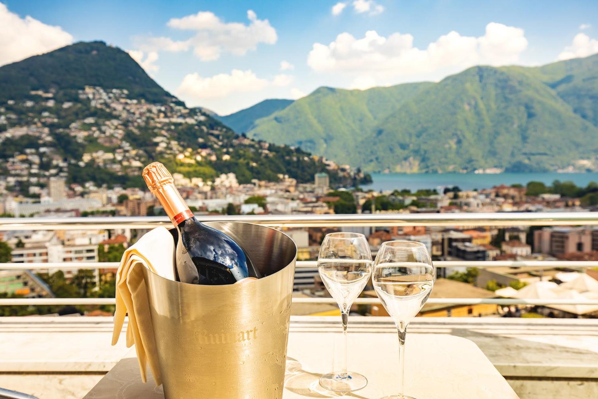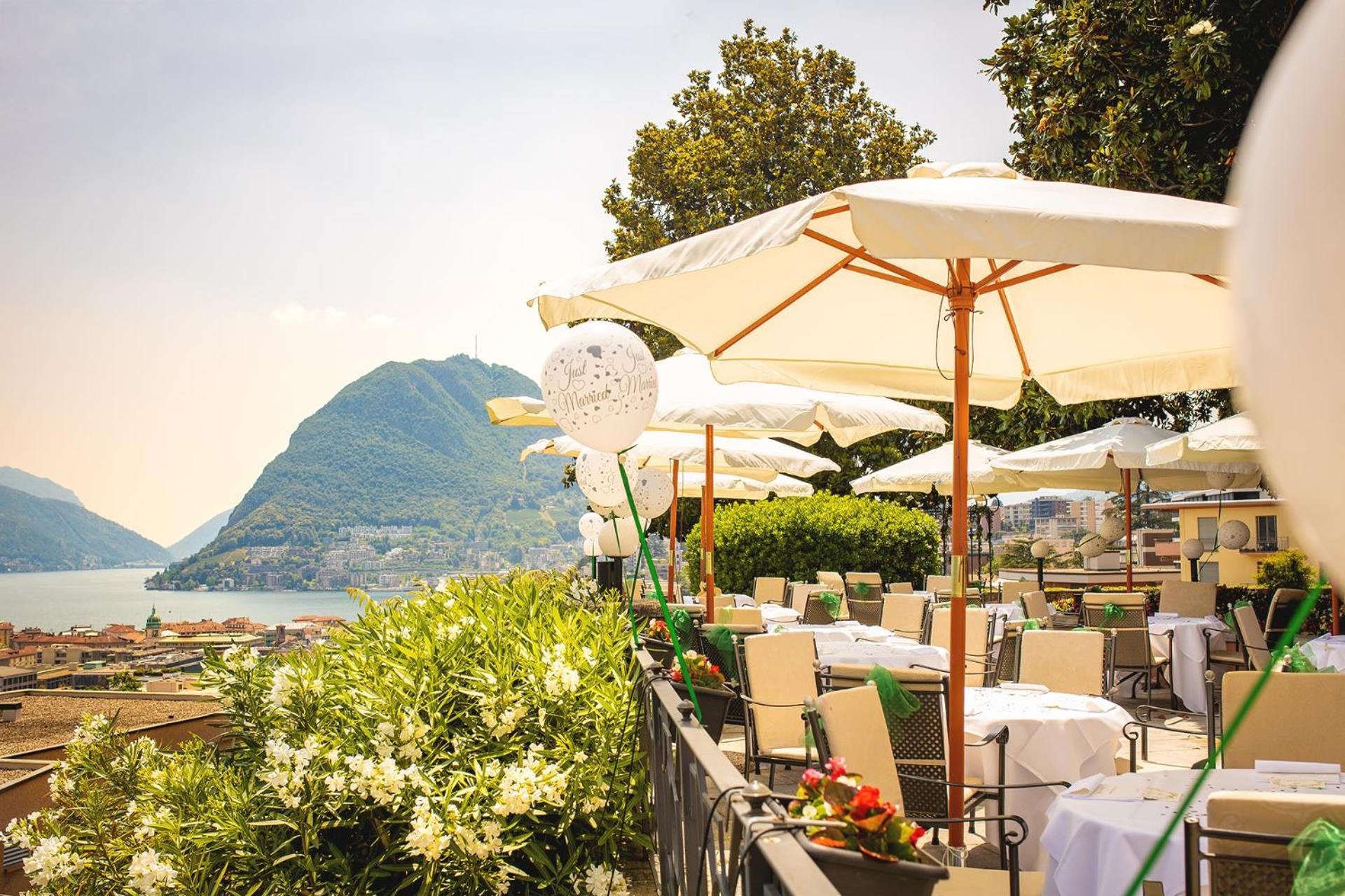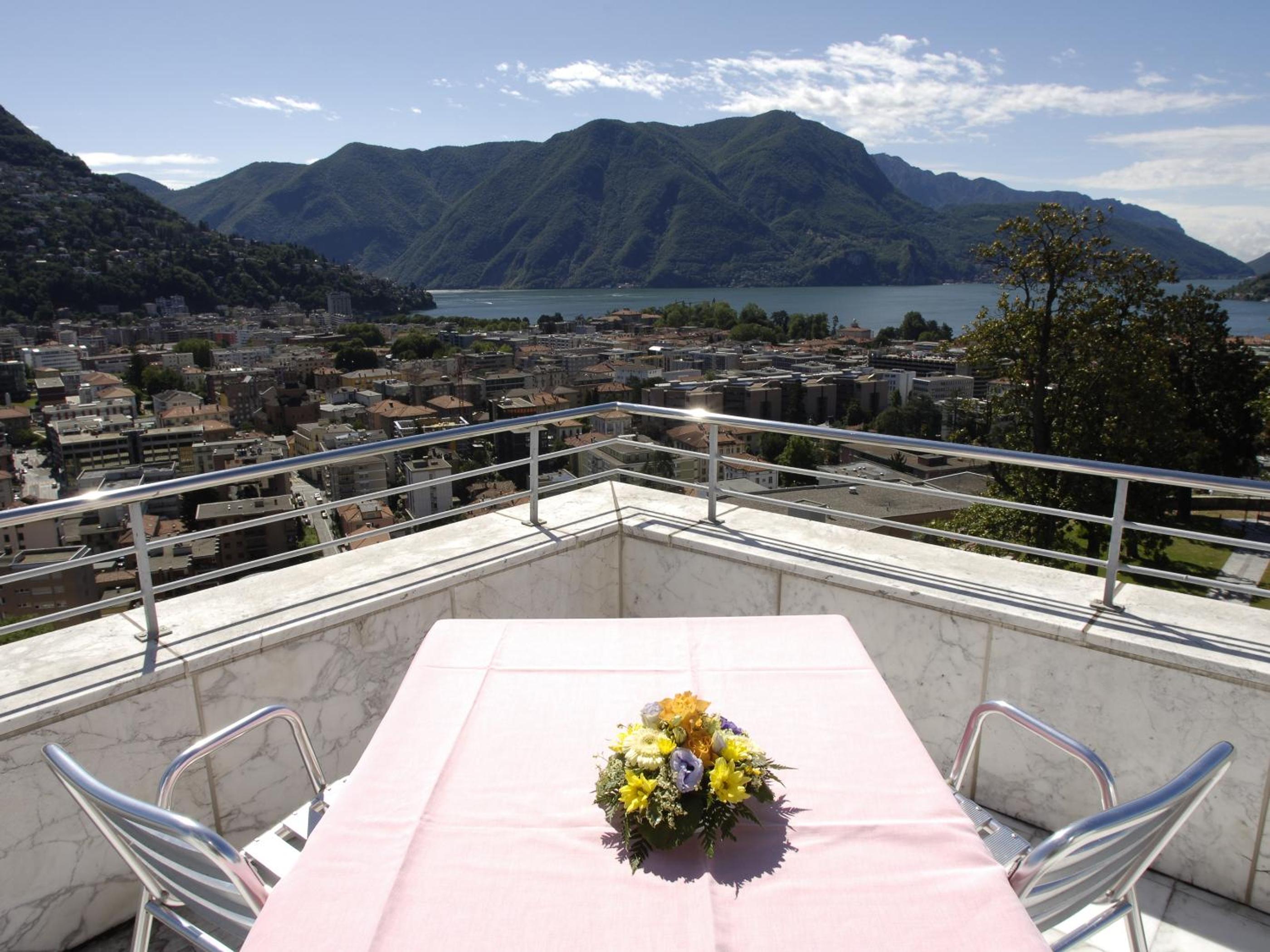 Enjoy breathtaking panoramic views of Lugano, Lake Lugano, and the surrounding mountains from the comfort of your room's balcony. Each room is well-equipped with amenities such as satellite TV, a minibar, and a safety deposit box for a luxurious and relaxing retreat.
