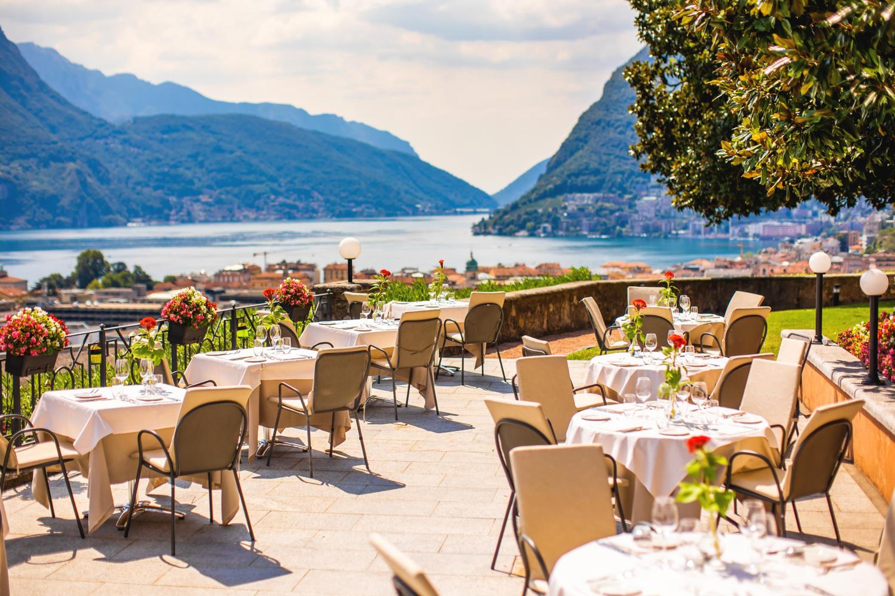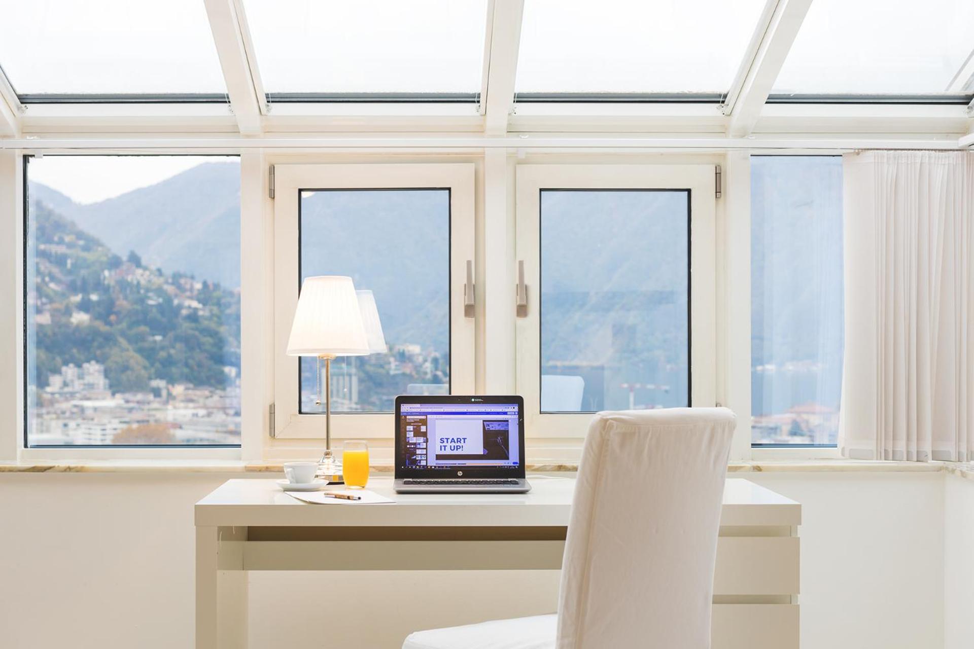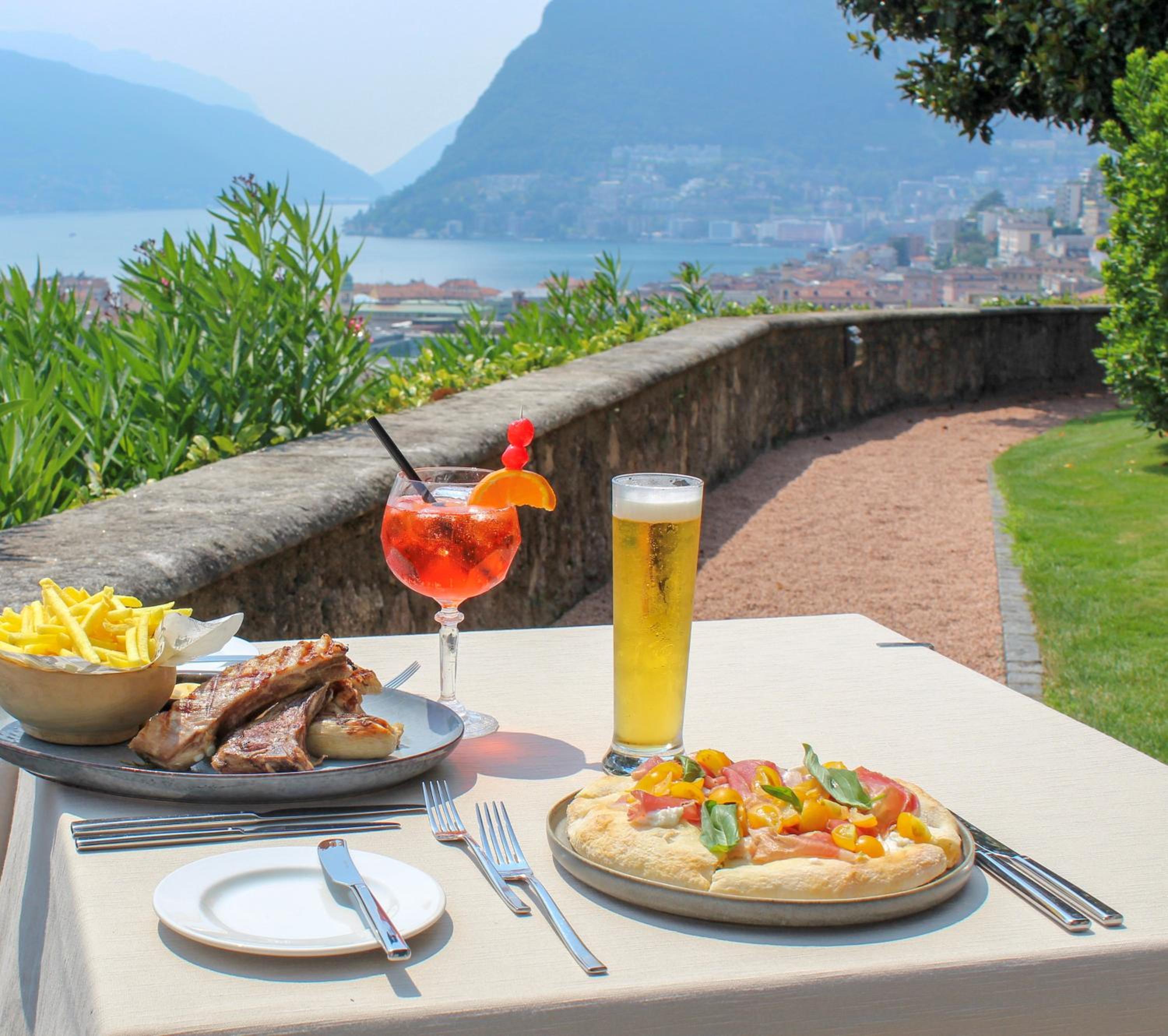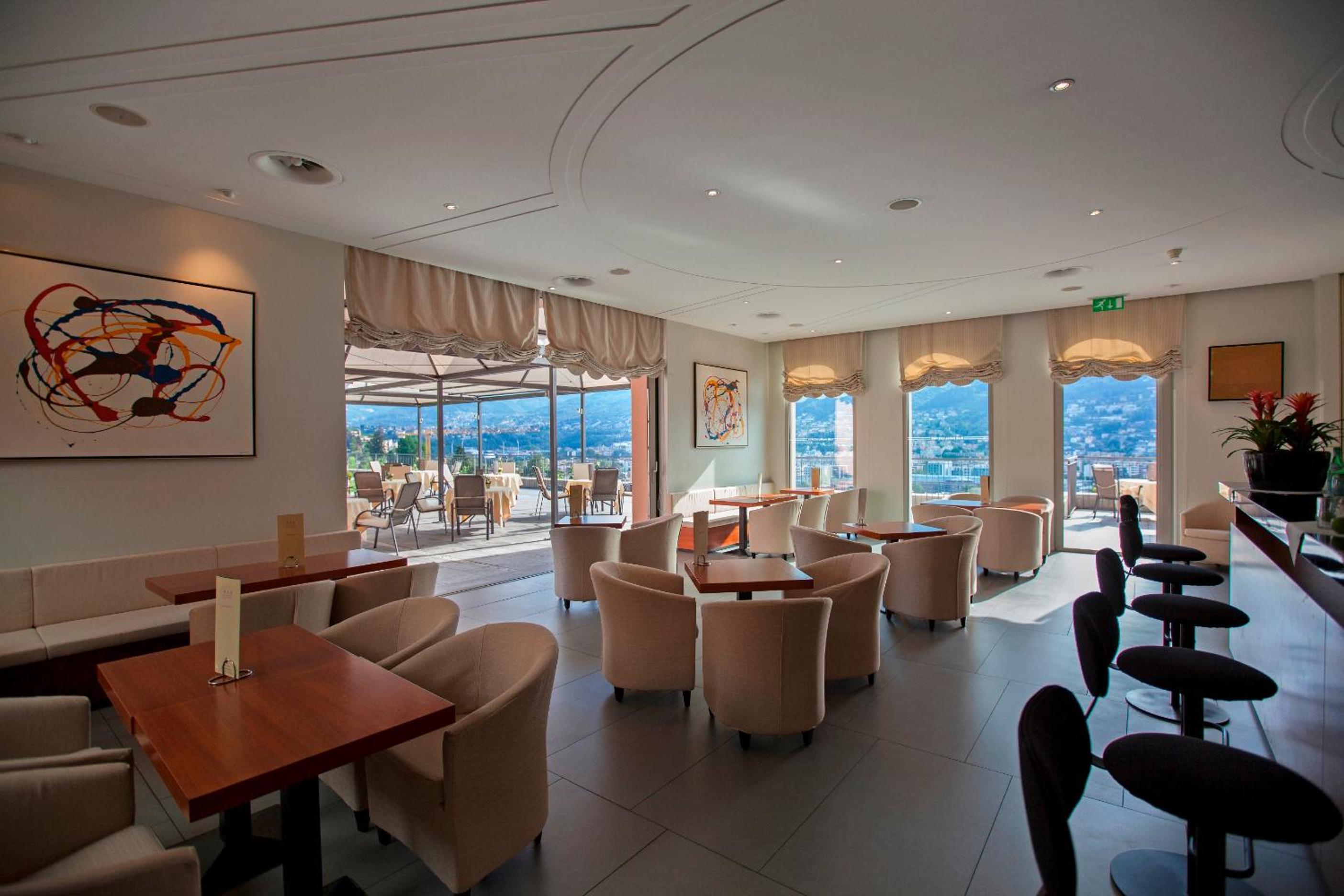 Enjoy breathtaking panoramic views of Lugano, Lake Lugano, and the surrounding mountains from the comfort of your room's balcony. Each room is well-equipped with amenities such as satellite TV, a minibar, and a safety deposit box for a luxurious and relaxing retreat.