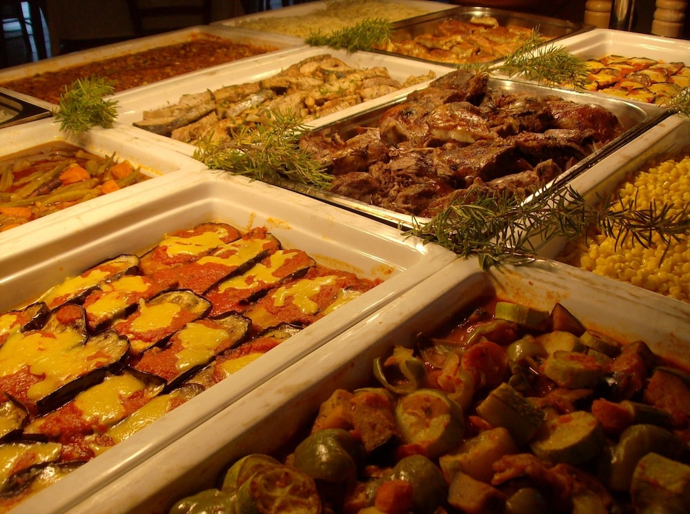Lots of egg options, yogurt with lots of topping options, different breads, loafs, croissants, pastries, fruit, cold and hot meats, juice, milk, coffee and tea.. it was busy however staff was amazing ! Cleaning up for you and constantly adding more food. Very well done!