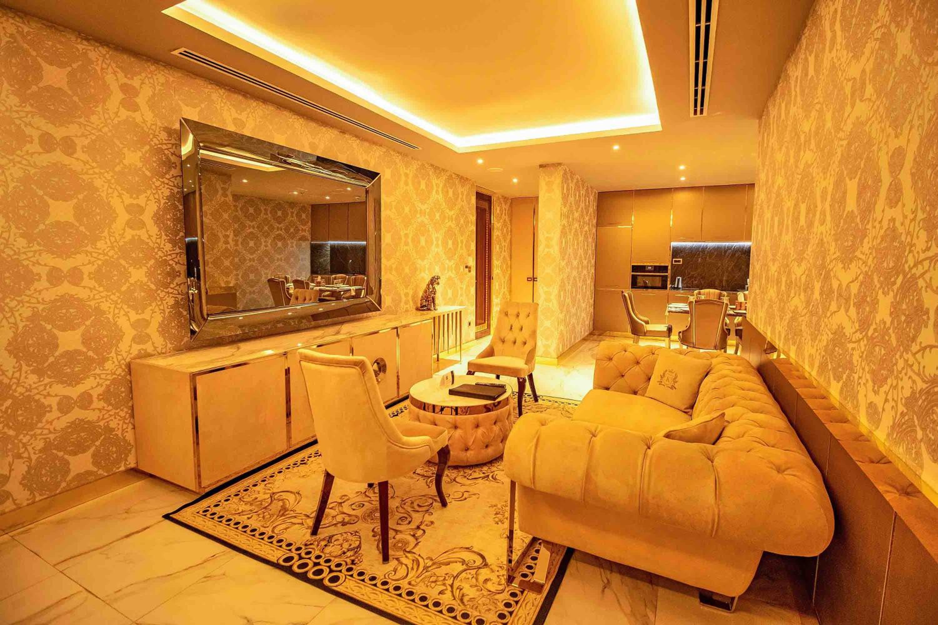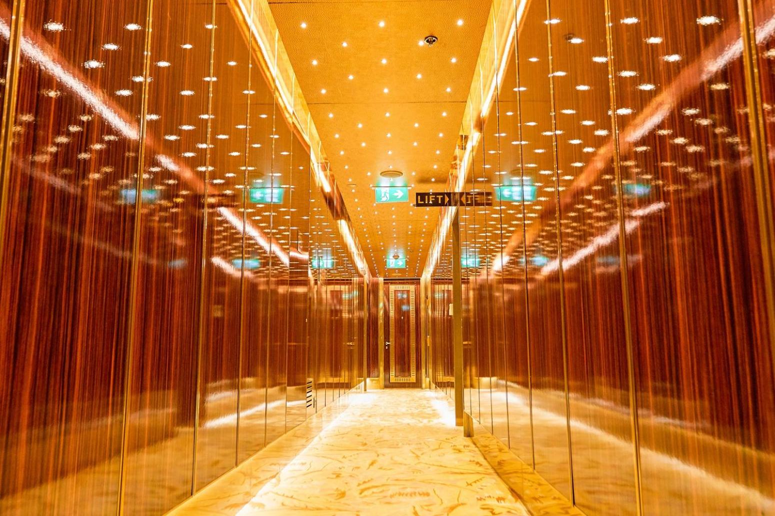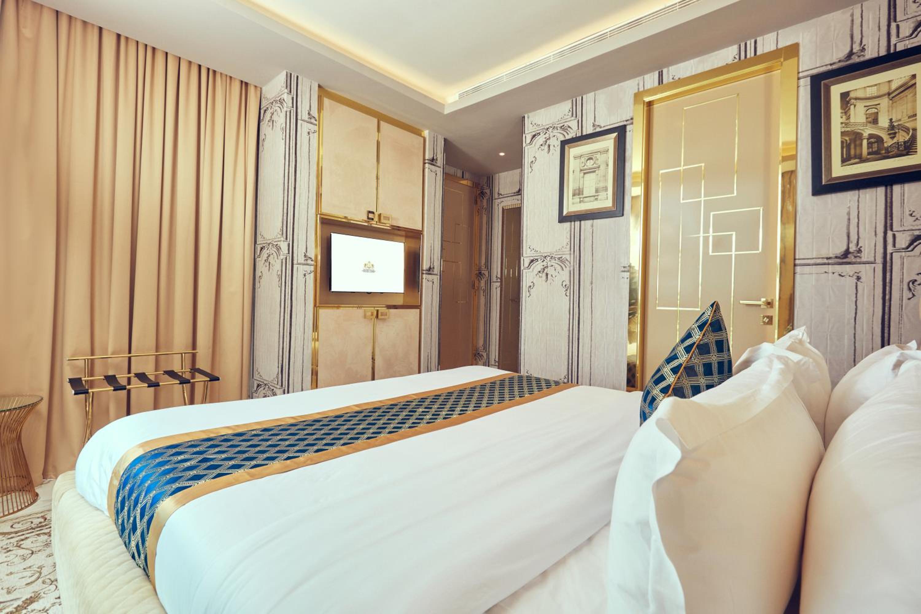 The hotel is opulent; full of marble and gold. However, the room amenities are not consistent. Slippers and Kleenex in one room and not im another. Also, water leaks because of the half shower door. No TV in the room in some rooms. Upside is that the staff are nice and professional and the hotel is close to many shops etc.
