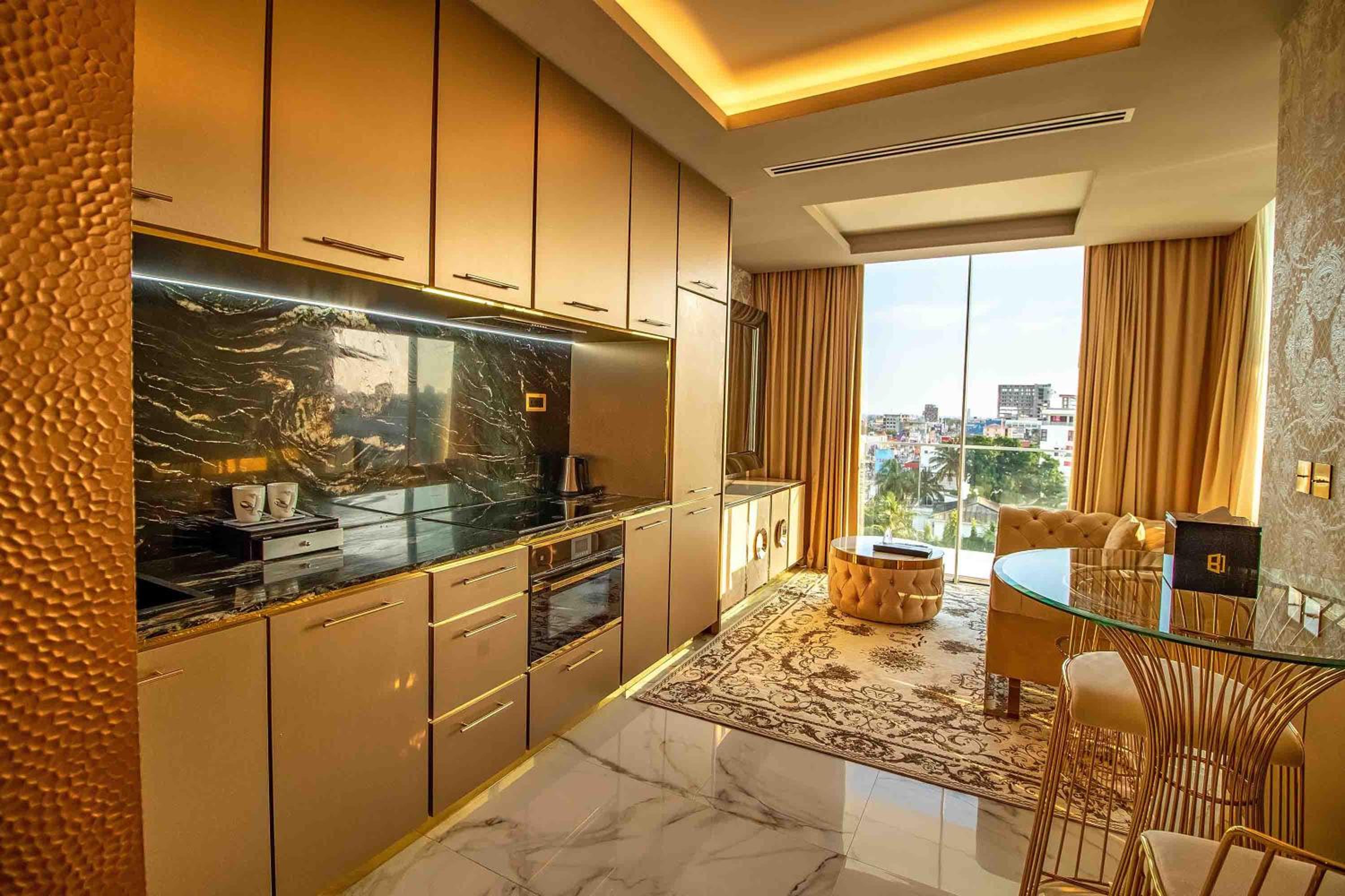 Number One Oxford Street Hotel & Suites in Accra offers 5-star accommodation with air-conditioned rooms, modern amenities, and stunning city views. Guests can enjoy a comfortable stay with a range of facilities including a fitness centre, outdoor pool, and a 24-hour front desk.