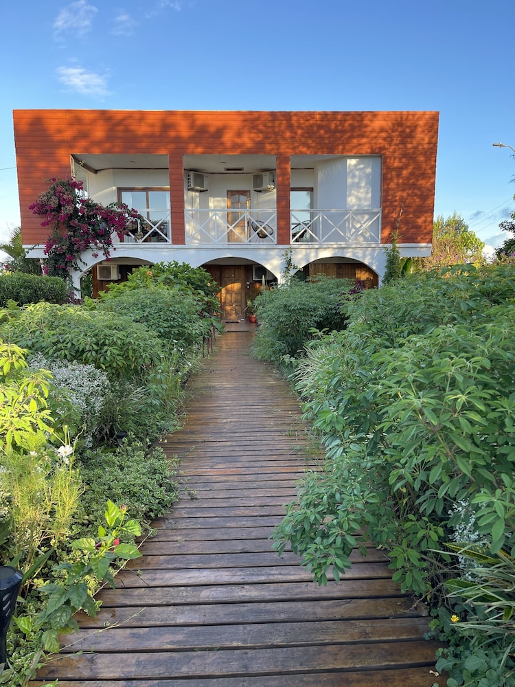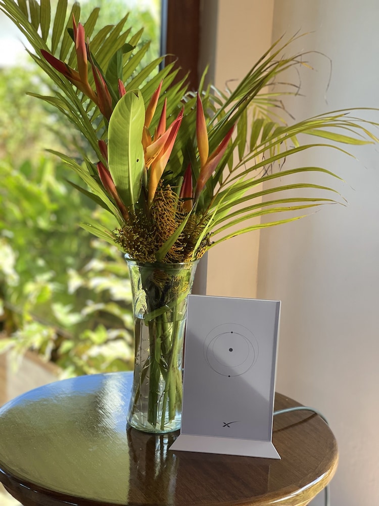 The hotel staff/service will welcome you when you arrive at the airport, offer you a beautiful garland, and take you to the hotel. The property is located off the center, where you need to rent a car or ATV, which the hotel also offers for a reasonable price. The hotel is clean, peaceful, and surrounded by beautiful trees and flowers, welcoming you when you arrive. A free delicious breakfast was offered, and a ride back to the airport was also offered. Overall, it was a memorable and beautiful experience.