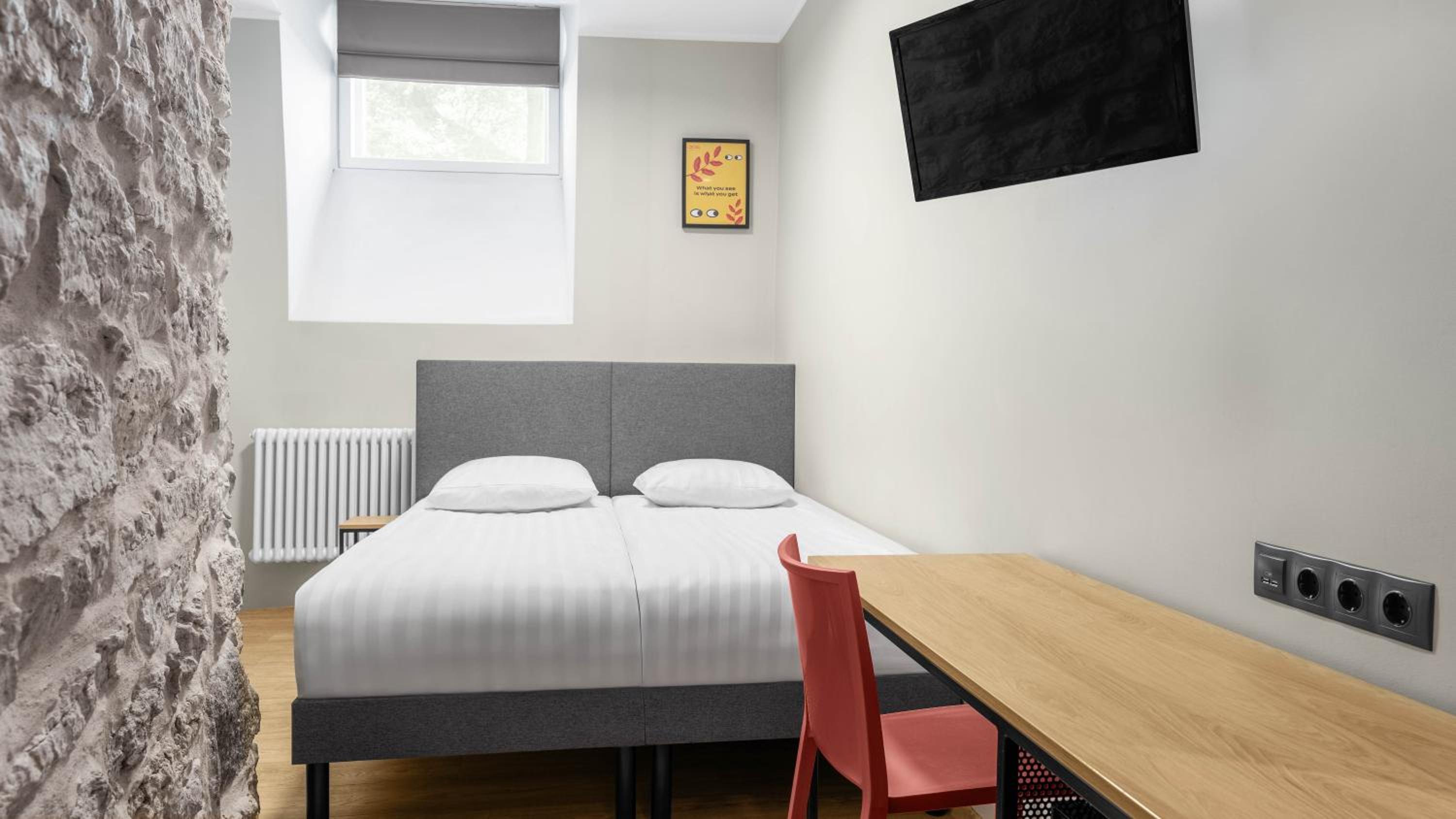 Tunnelmallinen. Ikivanhaan rakennukseen tehty pieni moderni hotelli, jossa on kaikki tarpeellinen, mutta ei mitään ylimääräistä. Mitkään äänet eivät häirinneet nukkumista.