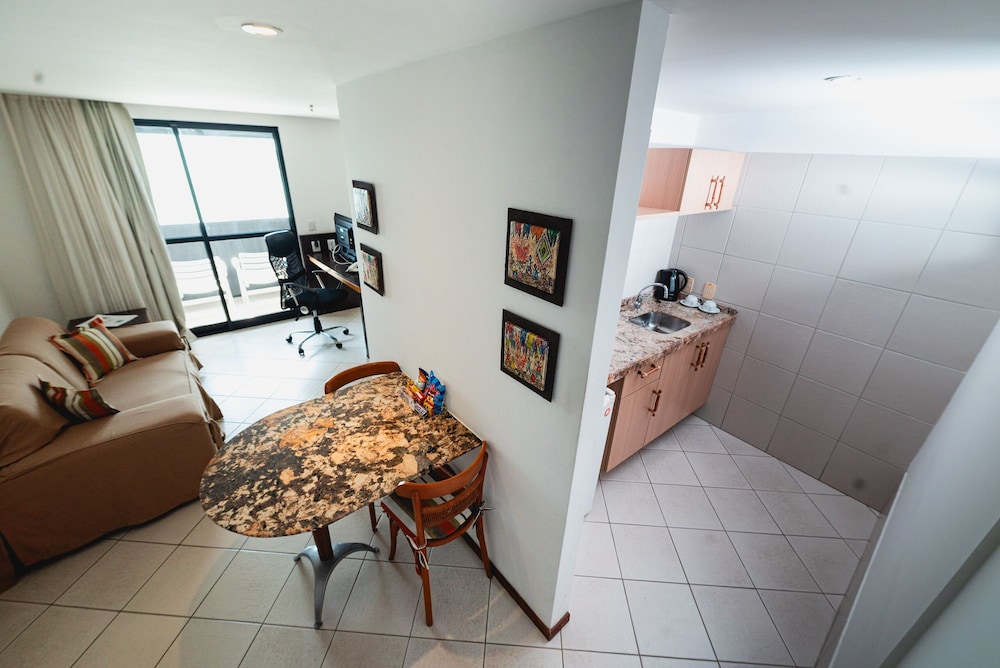 Perfeito! Adorei a hospedagem, a cordialidade de todos os funcionários. Meu quarto foi maravilhoso, vista para o Morro do Careca, varanda, quarto espaçoso, com utensílios de cozinha. Cama boa, tv era smart, quarto amplo, tinha ferro no quarto e mesa de passar a roupa. Não tinha secador no quarto, mas tem na recepção. Era meu aniversário, e eles se preocuparam com o melhor quarto, e ainda recebi cartinha + mimos com frutas.