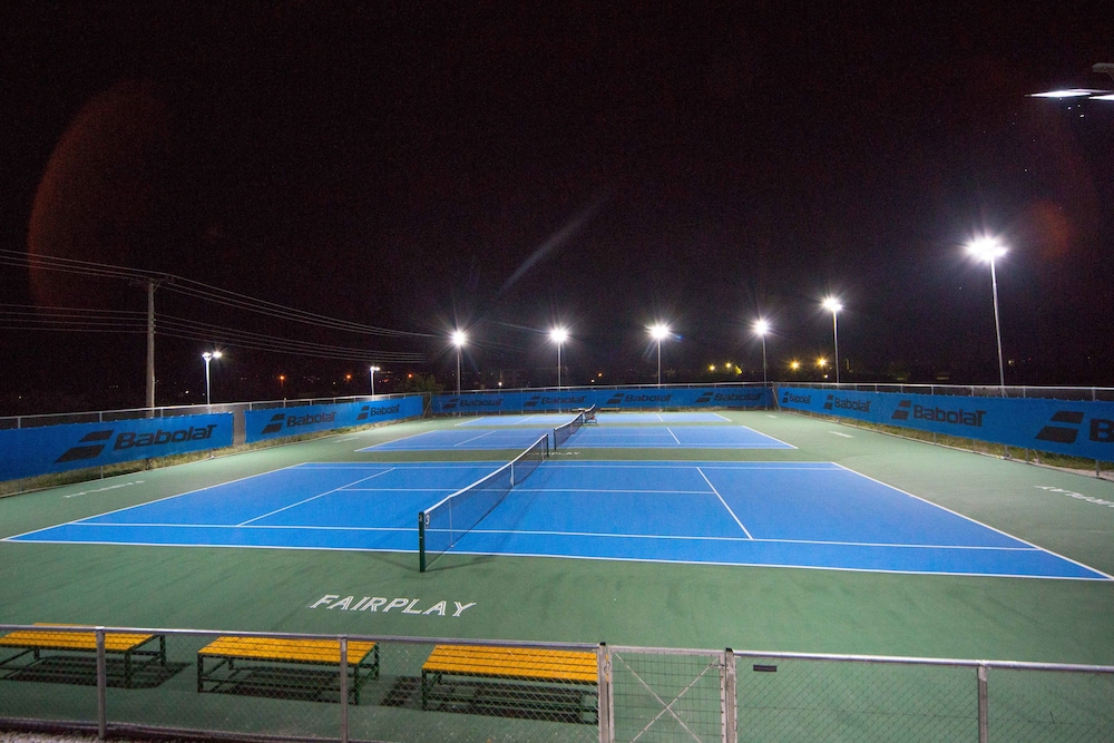 Nice hotel. Only downside is people play tennis till midnight right by the windows. Also no shops around. Overall great hotel.