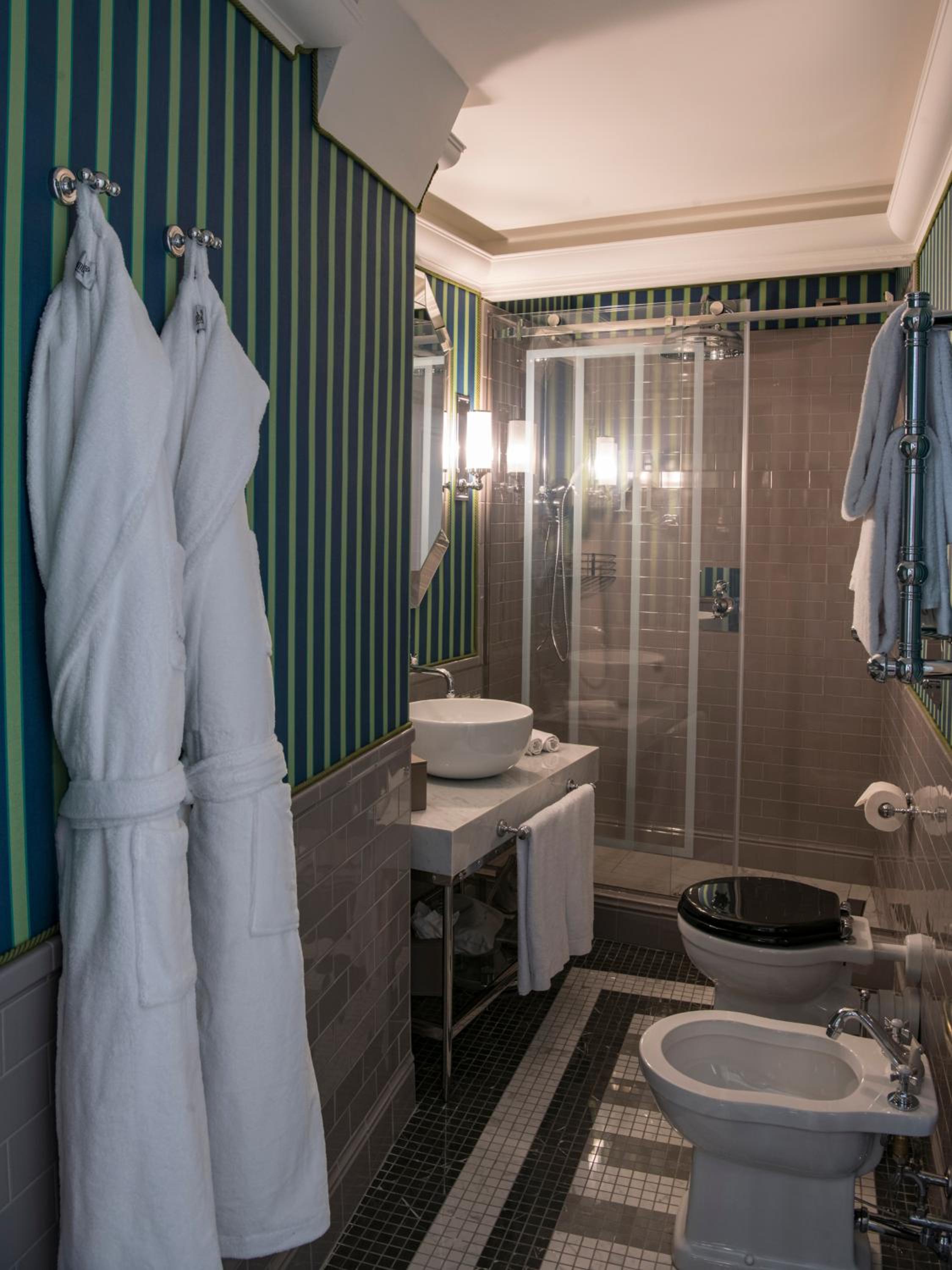 Indulge in the elegantly decorated rooms adorned with artisanal furniture, minibar with complimentary soft drinks, and unique touches like original frescoes in some rooms.