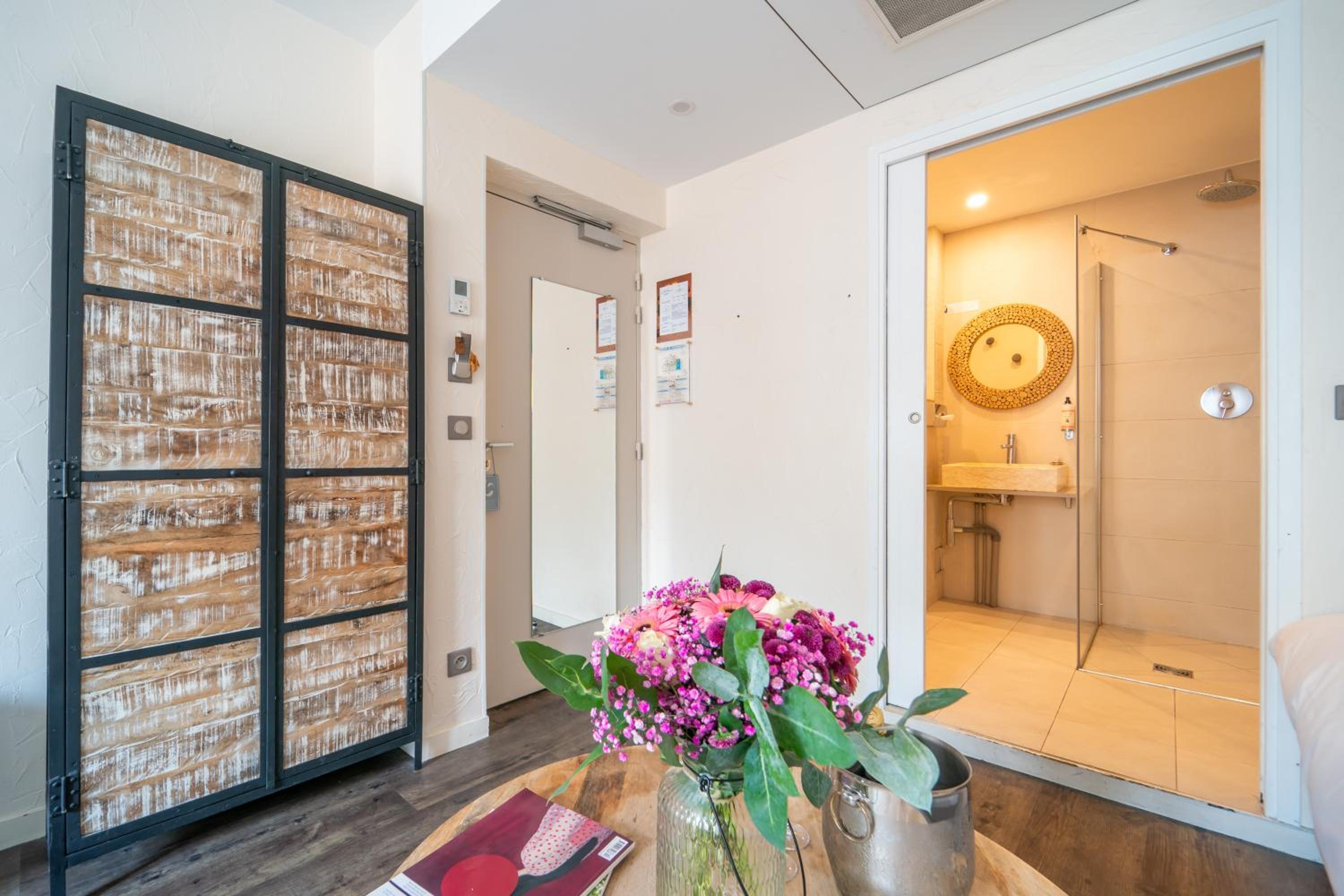 Emplacement proche de Bastille, accueil très sympathique et serviable. Chambre avec bouilloire, cafetière, petit bureau, placard, WC séparés, lit très confortable, rideaux occultants. Au sous-sol (accès direct par ascenseur) un jaccuzzi (4 personnes environ) + sauna + hammam en accès gratuit presque H24, bonnes températures (peignoir, sandales et serviettes supplémentaires fournis). Très agréable pour se détendre à tout moment.