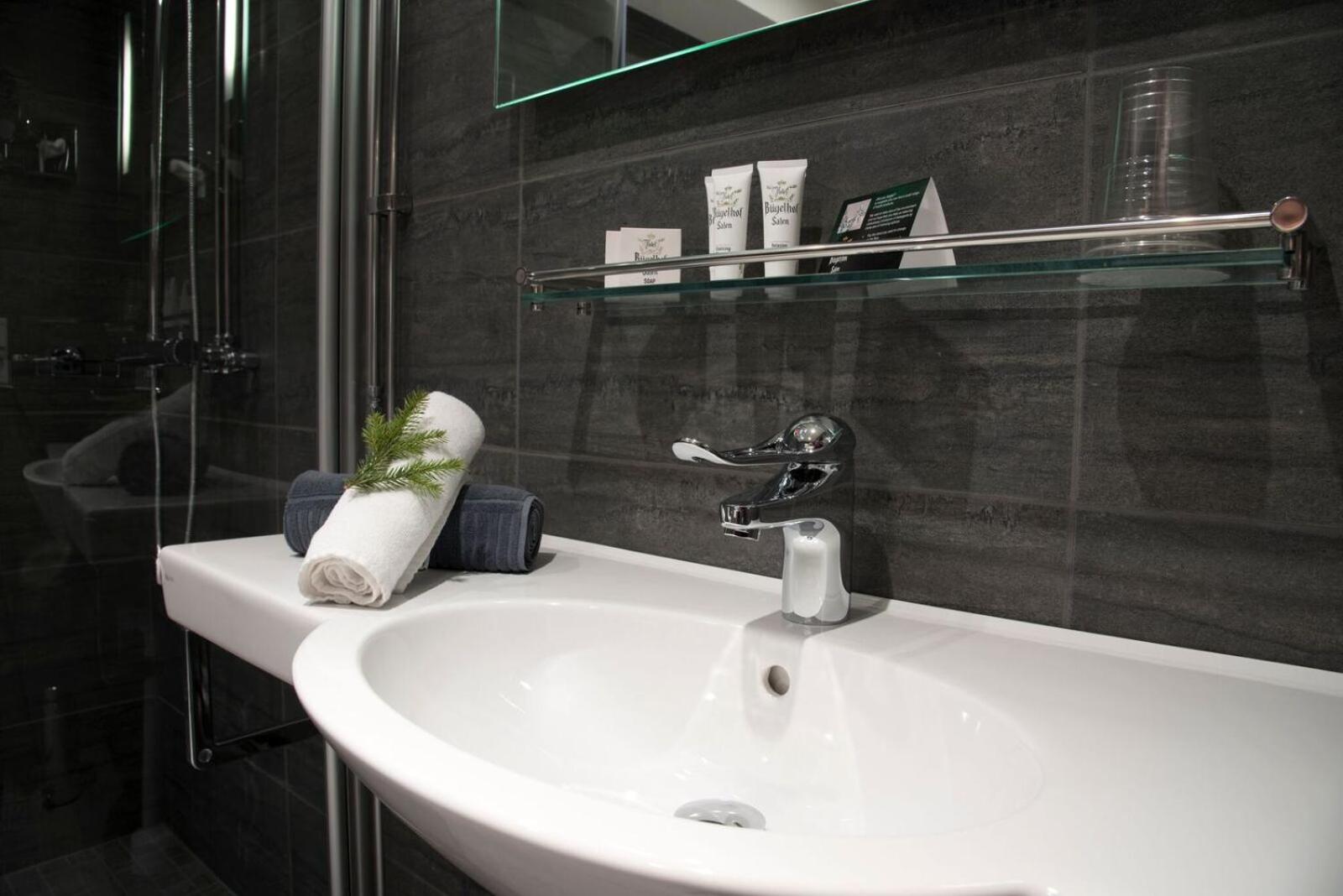 All rooms at Hotel Bügelhof are thoughtfully furnished with an armchair, desk, and a flat-screen TV for your entertainment. Select rooms even boast a private balcony for stunning views.