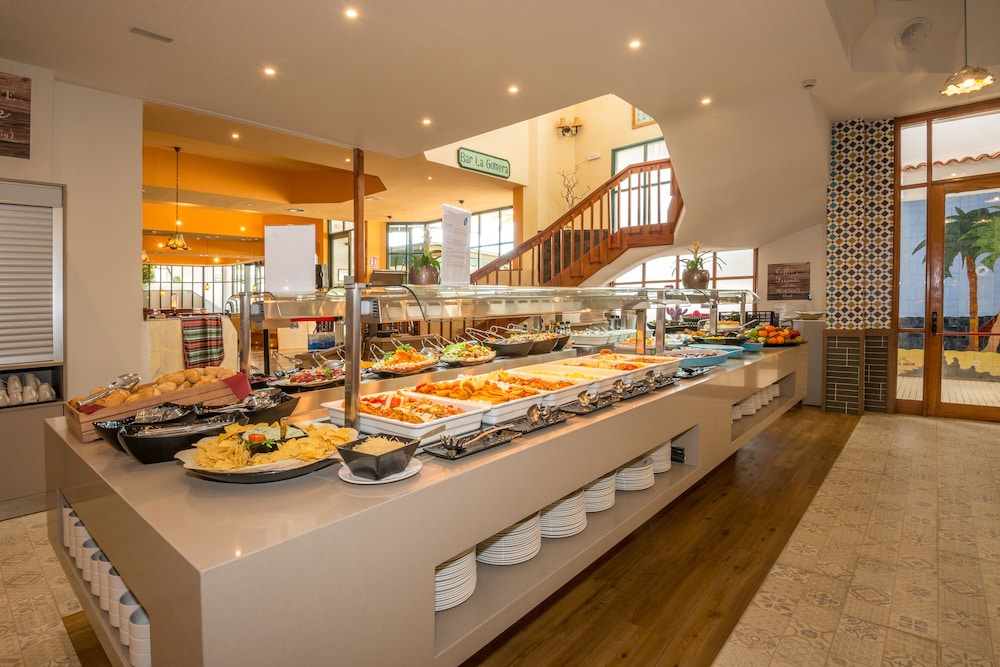 The food was poor quality, mostly frozen goods fried in oil adding some extreme low quality desserts and unmature fruits. If you want to go veggie, forget it...poor quality, not changing, boring. At dinner they once served Wiener Schnitzel...Ich lebe in Österreich, bitte. Extreme dry, no taste. Their fishes salty as hell and I'm saying that as a Hungarian. Breakfast not changing at all. (srry pancakes to churros and back, sometimes you can have mushrooms) That was low quality as well. One day, we ate fresh calamari and Canarian potatoes at a different restaurant; that same evening, the hotel served frozen calamari (likely from Mercadona). On top of that, I got a gastrointestinal infection that lasted four days and forced me to take sick leave. Since I hadn't eaten anything outside the hotel the previous day, I'm fairly certain the hotel food was the cause.