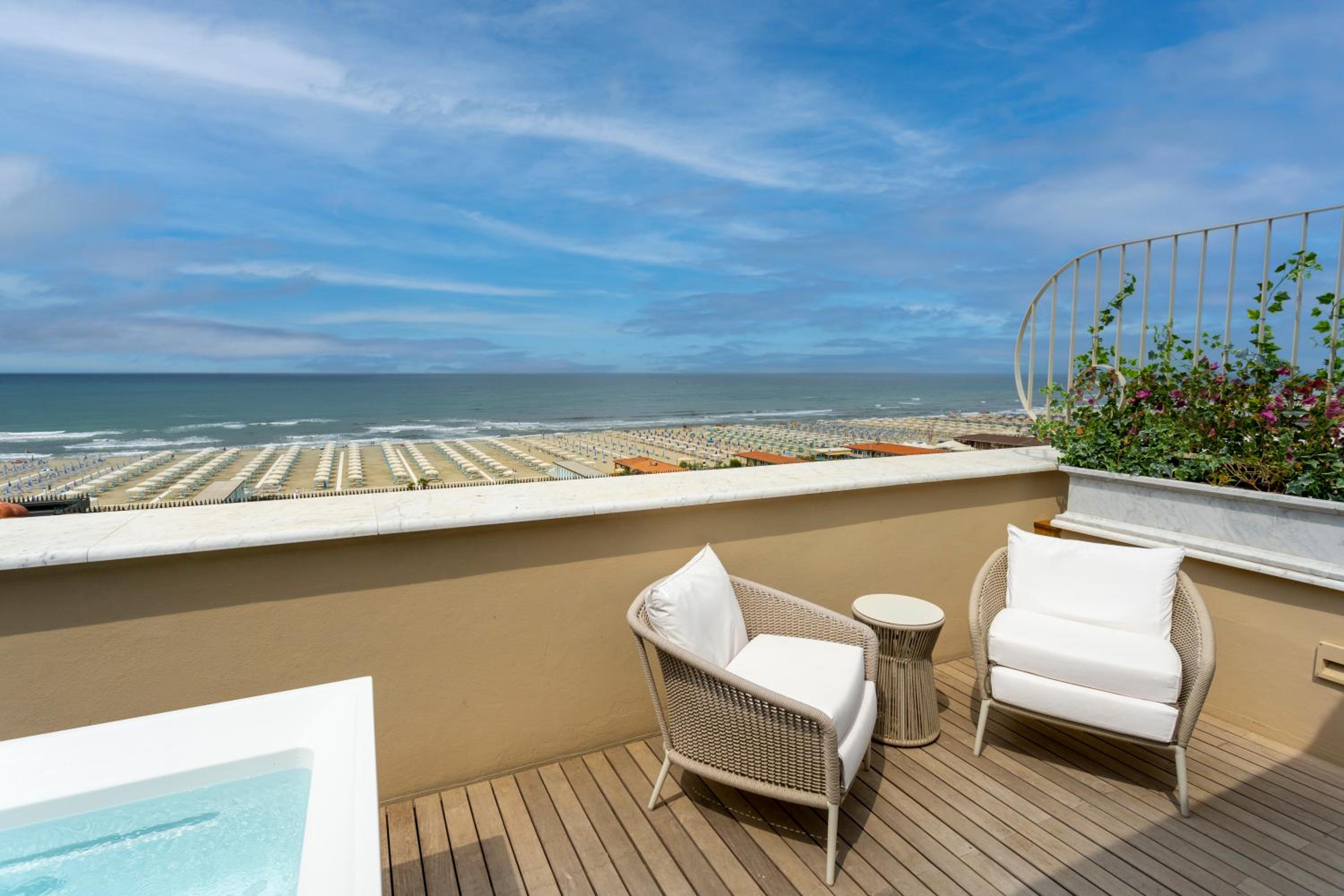 The Grand Hotel, situated along Viareggio's picturesque promenade, offers a luxurious stay with breathtaking views of the Versilia coast and the Apuan Alps.