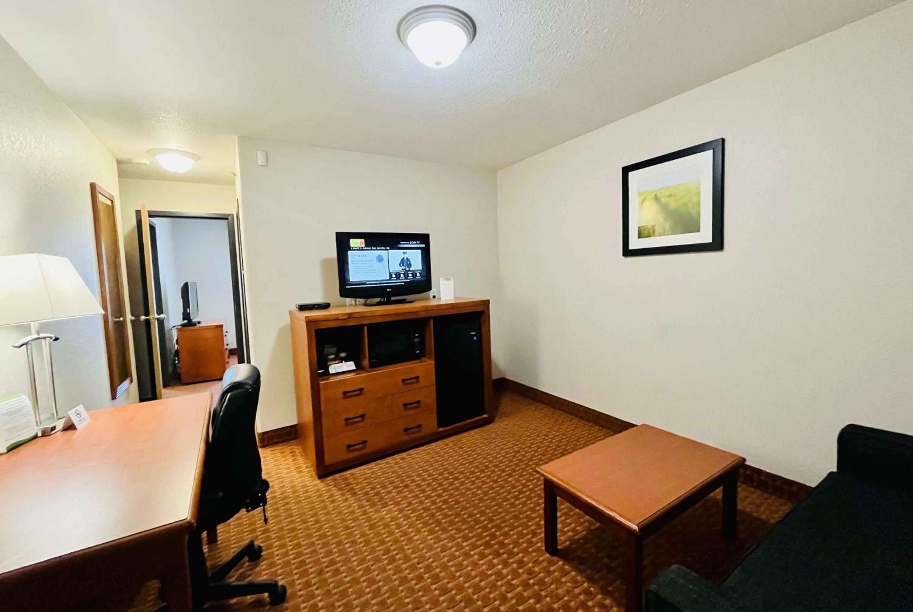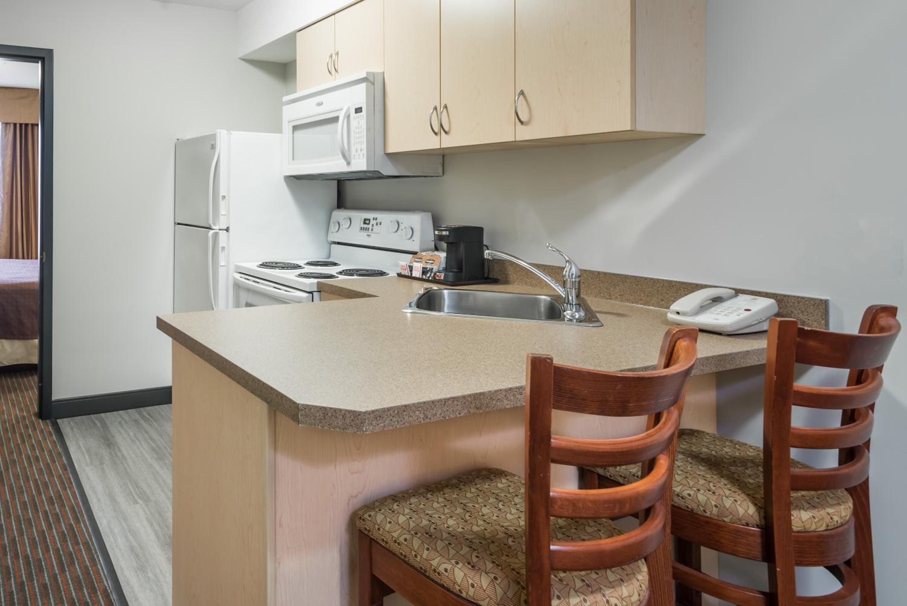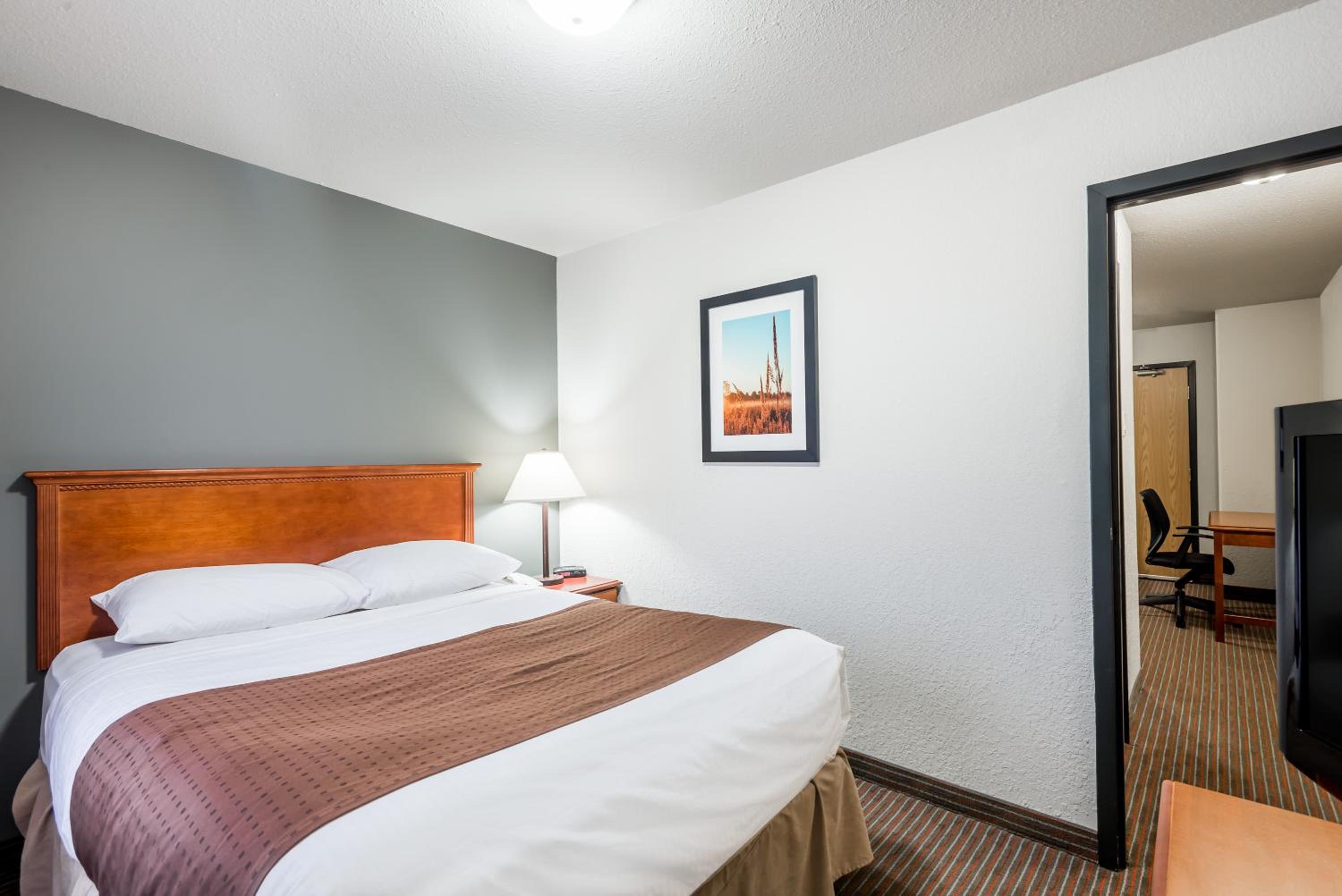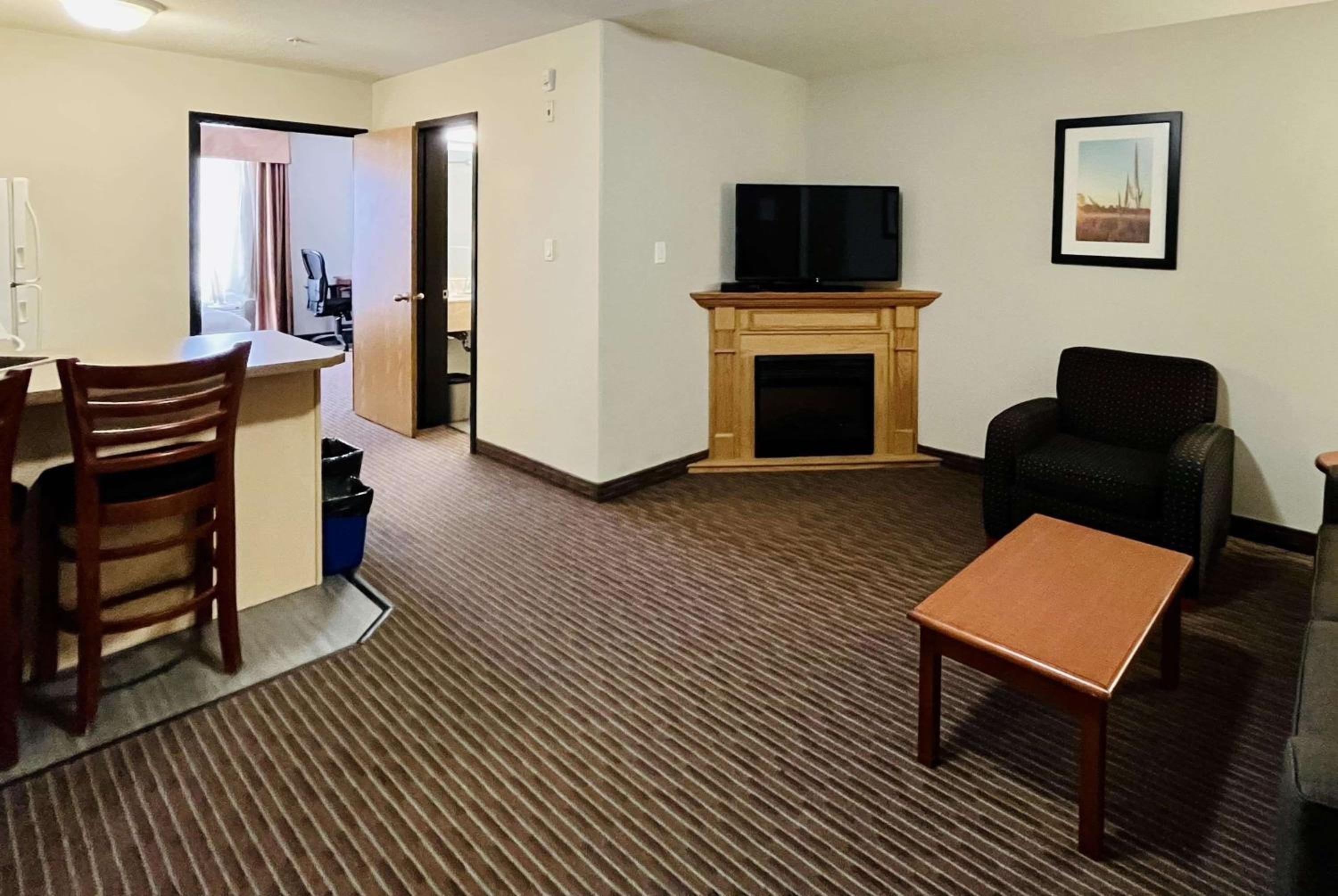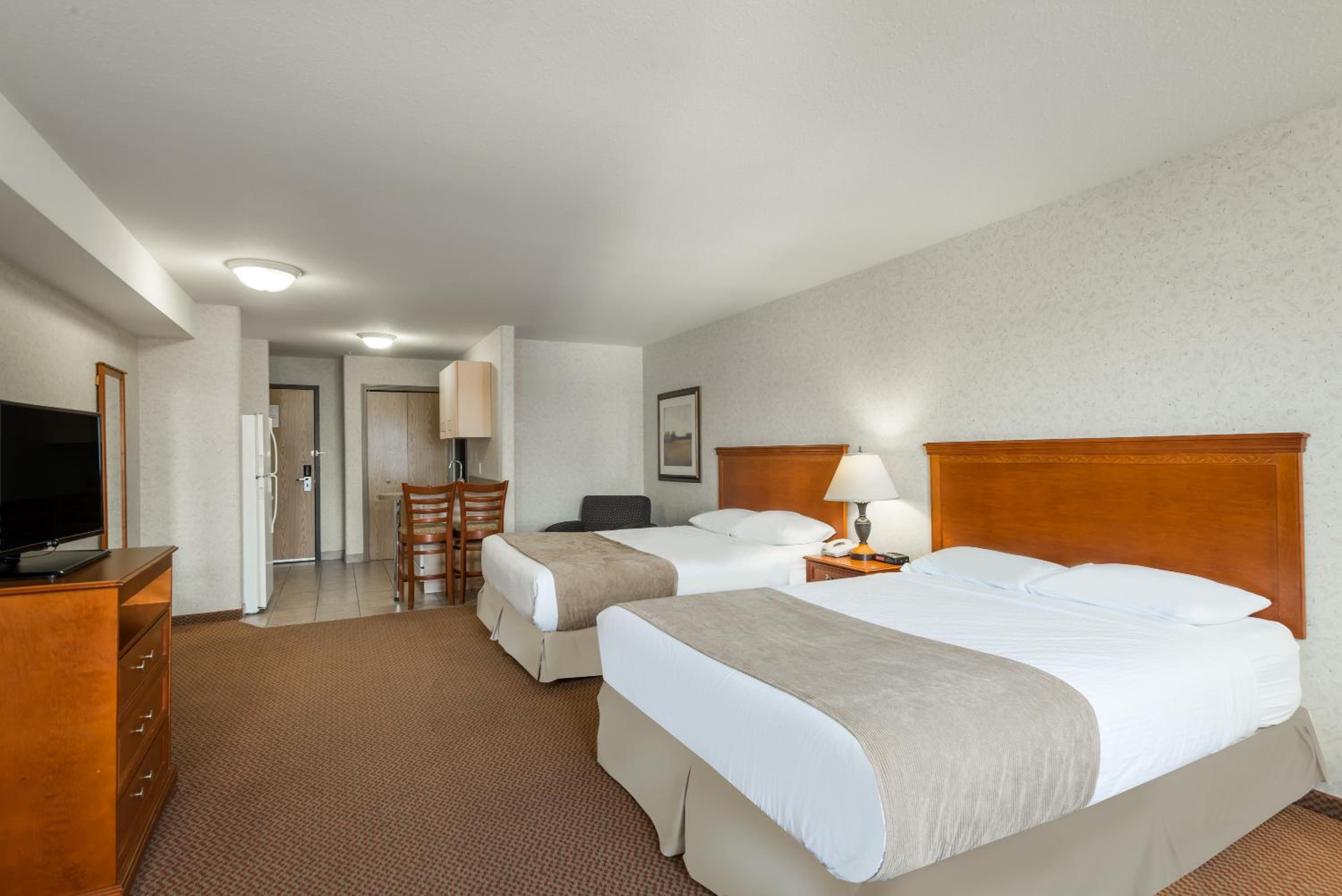 Enjoy free shuttle service to/from Grande Prairie Airport, free WiFi, and in-room essentials like a flat-screen TV, microwave, and refrigerator. Upgrade to a suite with a kitchenette for added convenience during your stay.