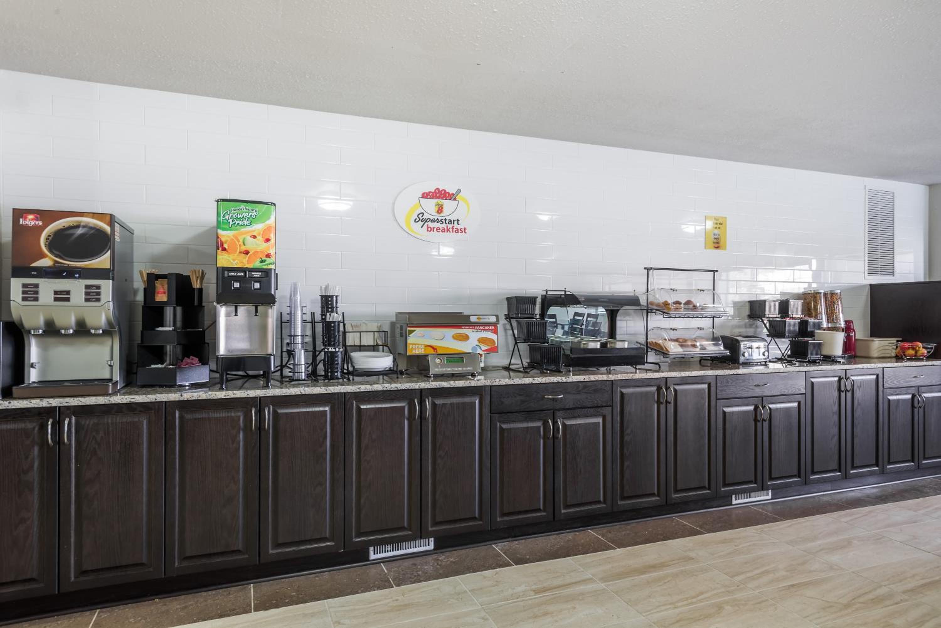 The breakfast was fine. Kind of meh (the egg omelet things had been sitting out awhile) but there was a decent selection. Bed was comfortable. Pool was great, nice waterslide. Great price.