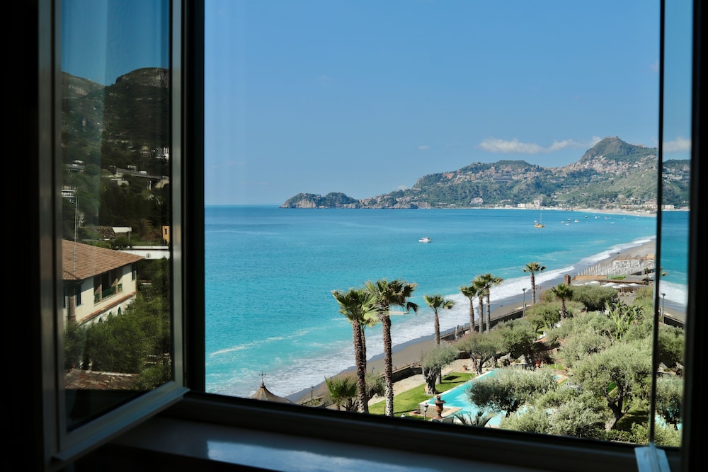 I have to thank all the staff. They were all friendly and accommodating. The seafront view was priceless. Slept with the balcony doors open every night and listened to the waves. Watched the sun come up in the morning a few times also. Taormina in the background and the town was enjoyable during the evening.