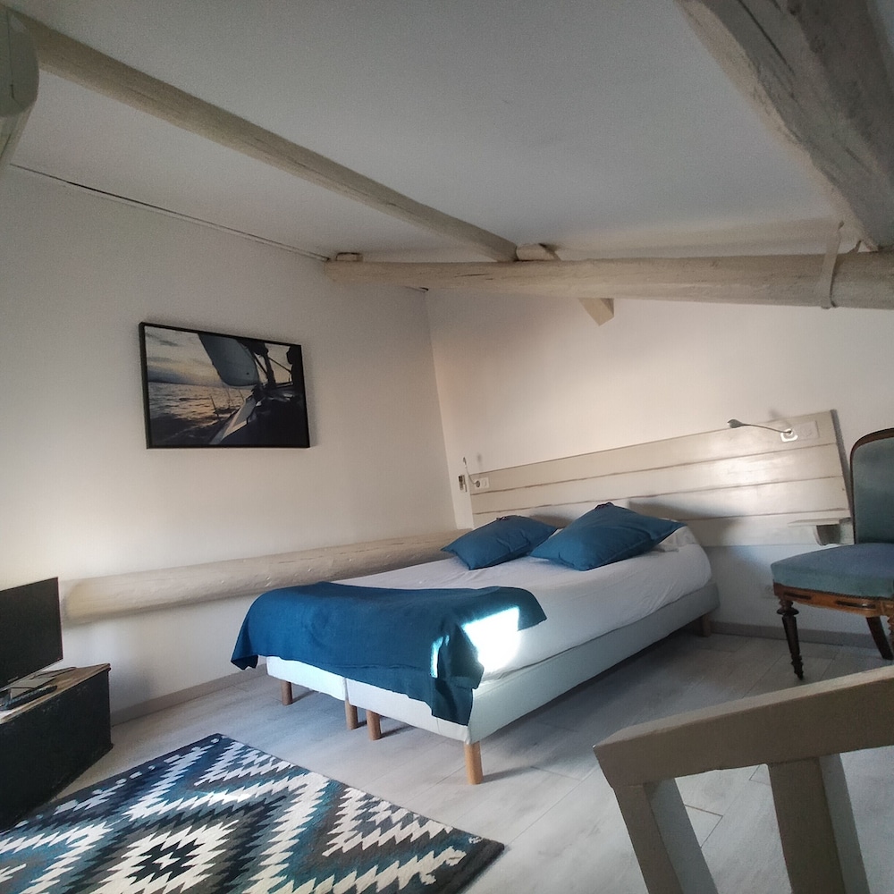 Ma chambre était au second étage (vue sur rue perpendiculaire au port) bon espace, deux matelas associés en single. Propre et fonctionnel. Salle d'eau correcte. Très bien pour se reposer si la "clim chauffage" ne se met pas en route car assez bruyante.