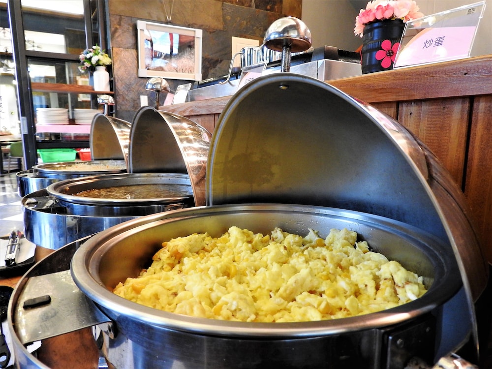 早餐很滿意,算是三星住宿的頂端了,約10樣菜餚可搭配稀飯,三種抹醬可配吐司