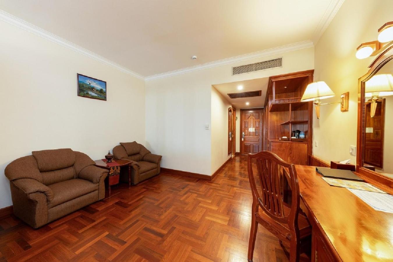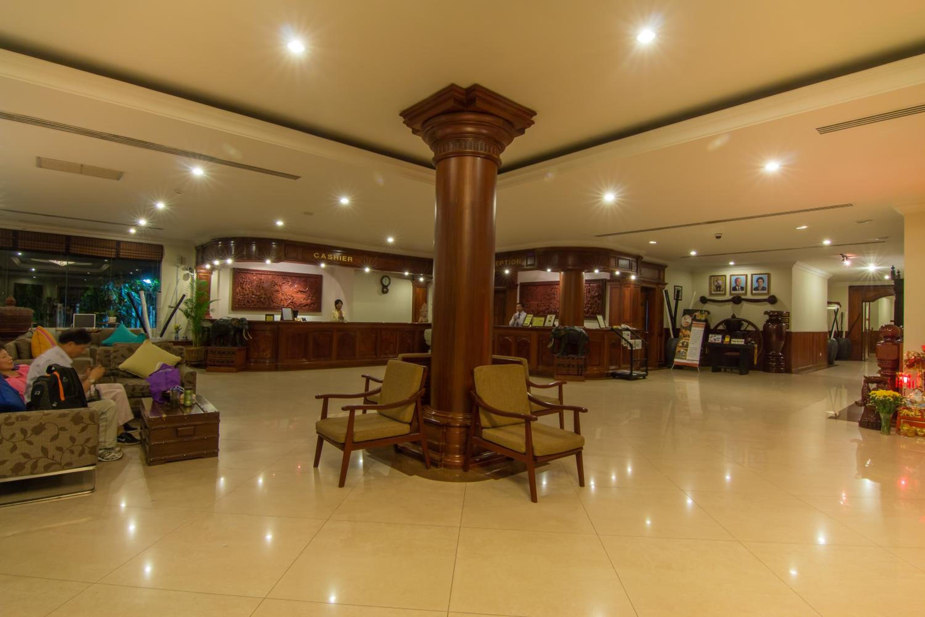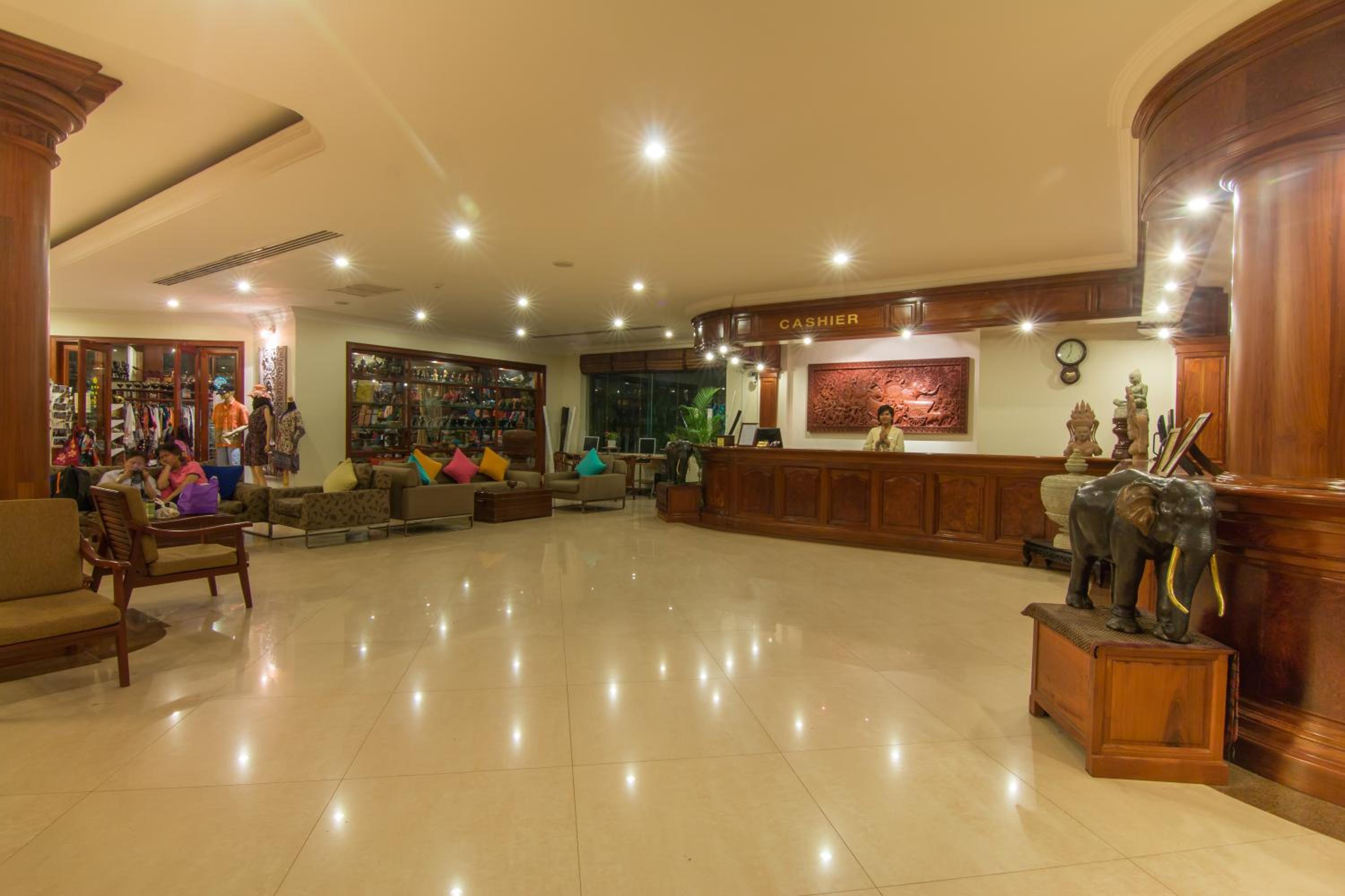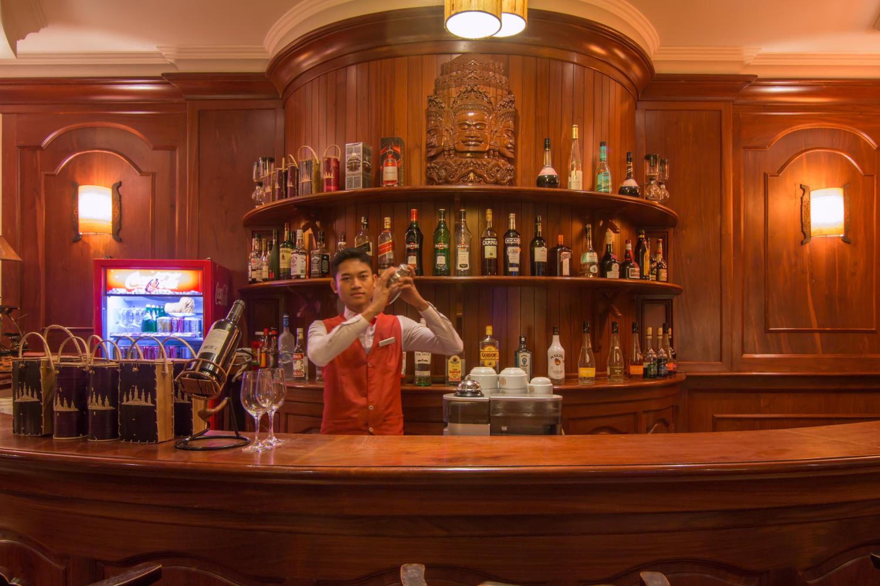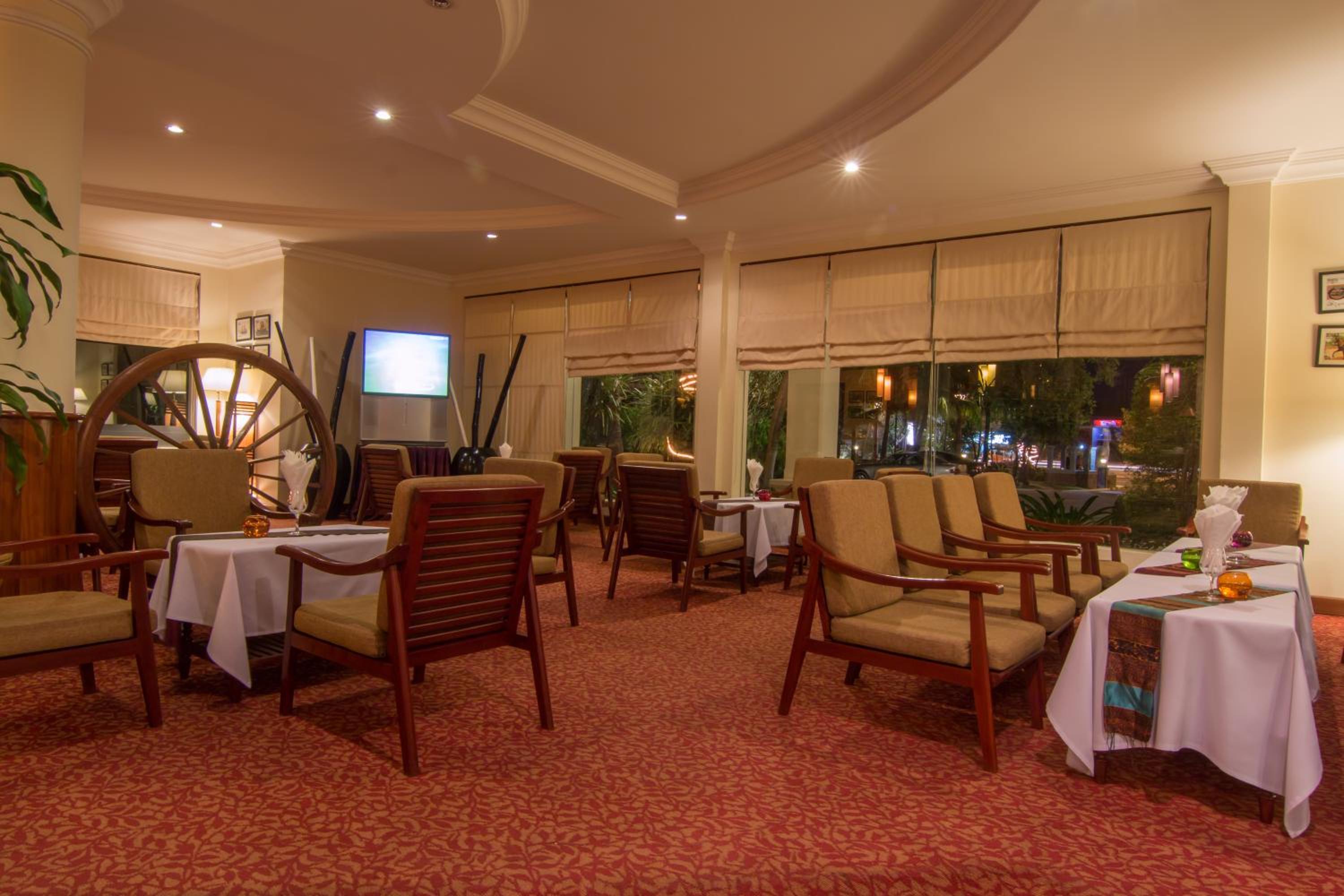 Book your stay at Khemara Angkor Hotel for a perfect blend of luxury, comfort, and entertainment. Enjoy spacious rooms with beautiful views, modern amenities like an outdoor pool and spa, and complimentary internet access. Indulge in delicious local and international cuisine at The Khemara Restaurant, and unwind at the Apsara Lobby Lounge with a variety of sports programs and tasty cocktails. Whether you prefer to relax at the sauna, stay active at the fitness center, or explore the nearby Angkor Wat, this hotel caters to all your needs. Don't miss out on a memorable experience - reserve your room now!