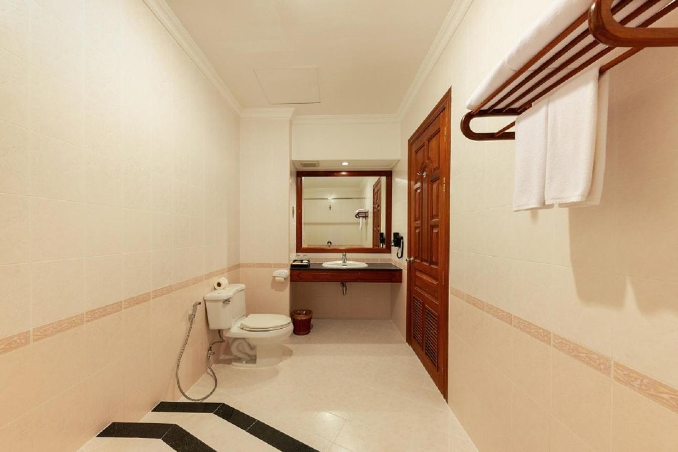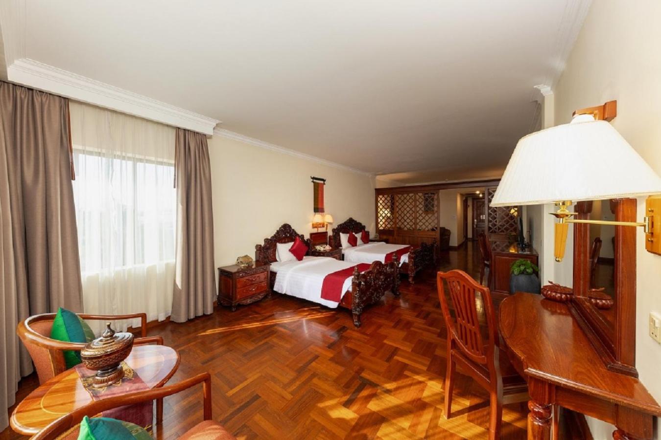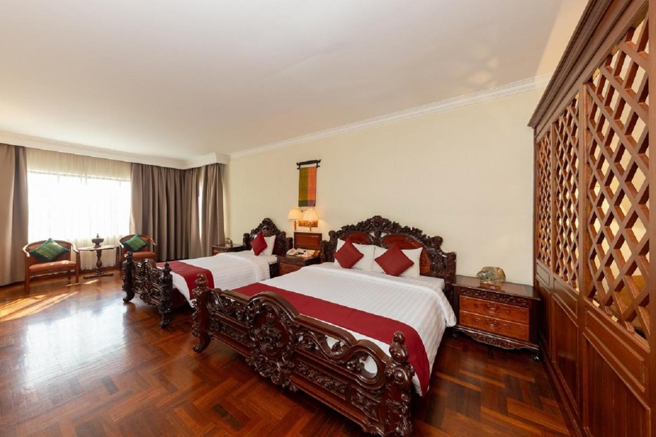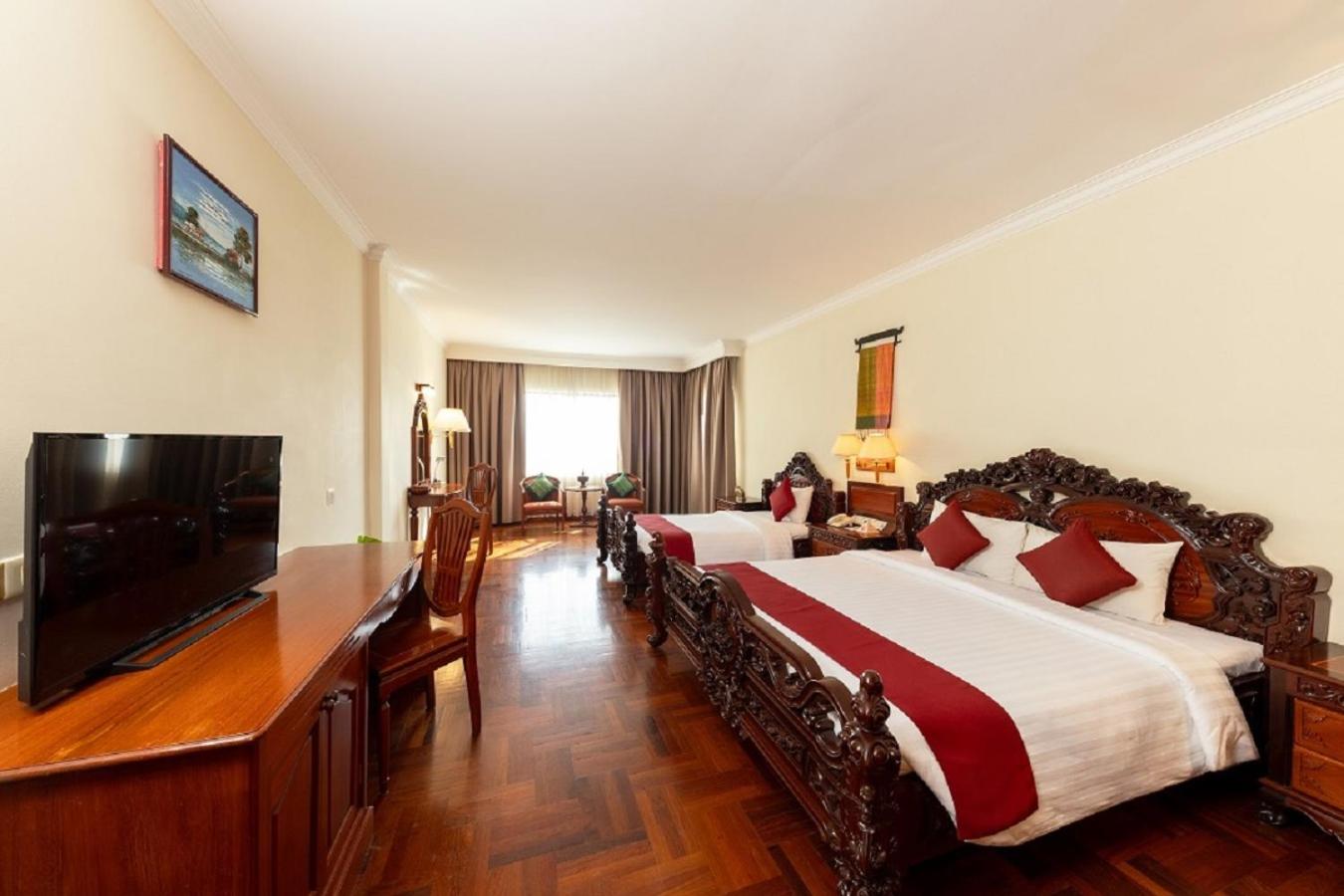The room is huge, the beds are very comfortable, and the bathroom is very large and comfortable, with a bathtub-style shower (something that is usually a problem in almost all affordable accommodation in Cambodia, where the bathroom ends up completely wet after a shower, but here you don't have that problem). The soundproofing, tinted windows and west-facing window allow you to sleep in late if you want, and in the afternoon, you can enjoy the best sunset right before your eyes. Finally, as for cleanliness, there is nothing to complain about; everything is impeccable.