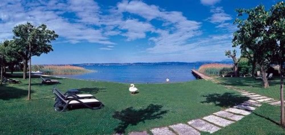 Ficamos duas noites nesse ótimo hotel com excelente localização. Lindo jardim com praia particular e funcionários atenciosos. Fica a uma pequena caminhada do centro histórico de Sirmione. Nosso quarto não tinha frigobar e o banheiro com piso molhado porquê box não vai até o chão (passa água por baixo). No mais tudo ótimo.