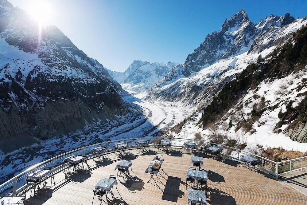 Immerse yourself in the breathtaking views from the terrace and garden while indulging in delectable French cuisine at Restaurant du Montenvers.