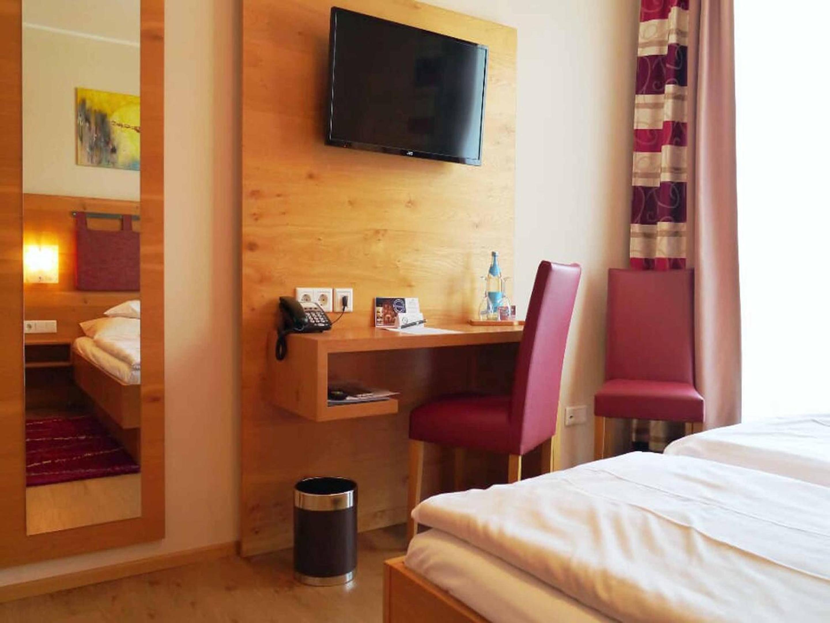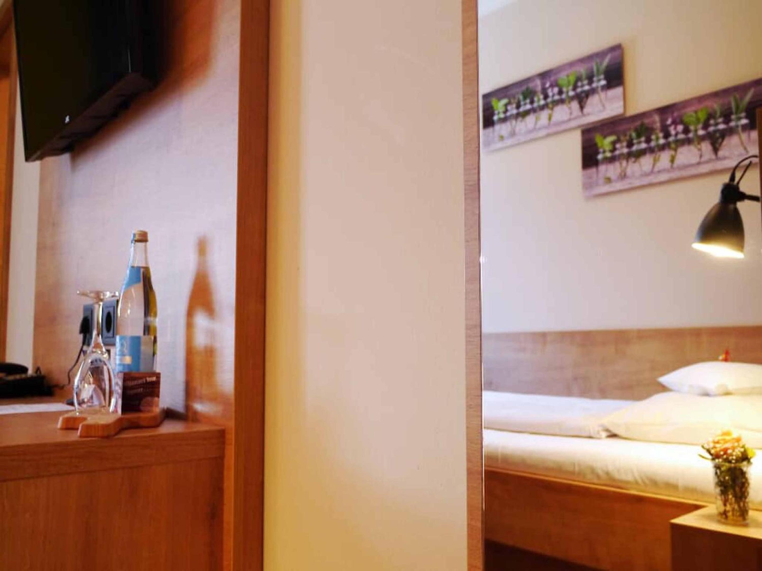 Sehr gute Speisen und Getränke (morgens und abends), liebevolle Einrichtung, sehr sauber und gepflegt, Flair eines familiengeführten Hotels, moderner Bau mit historischen Einrichtungsdetails, Wirtshausgutschein bei Entfall der täglichen Zwischenreinigung als Option