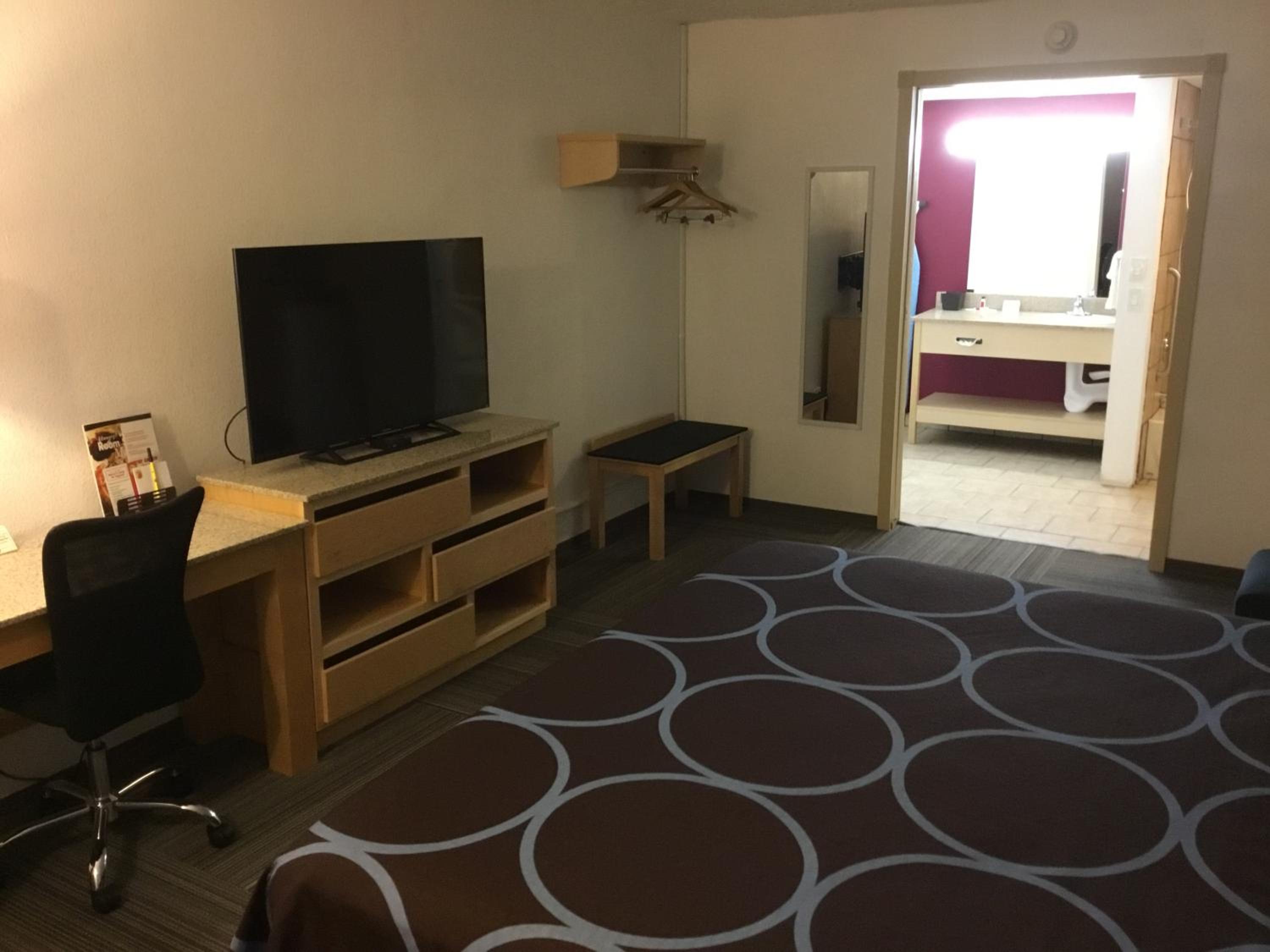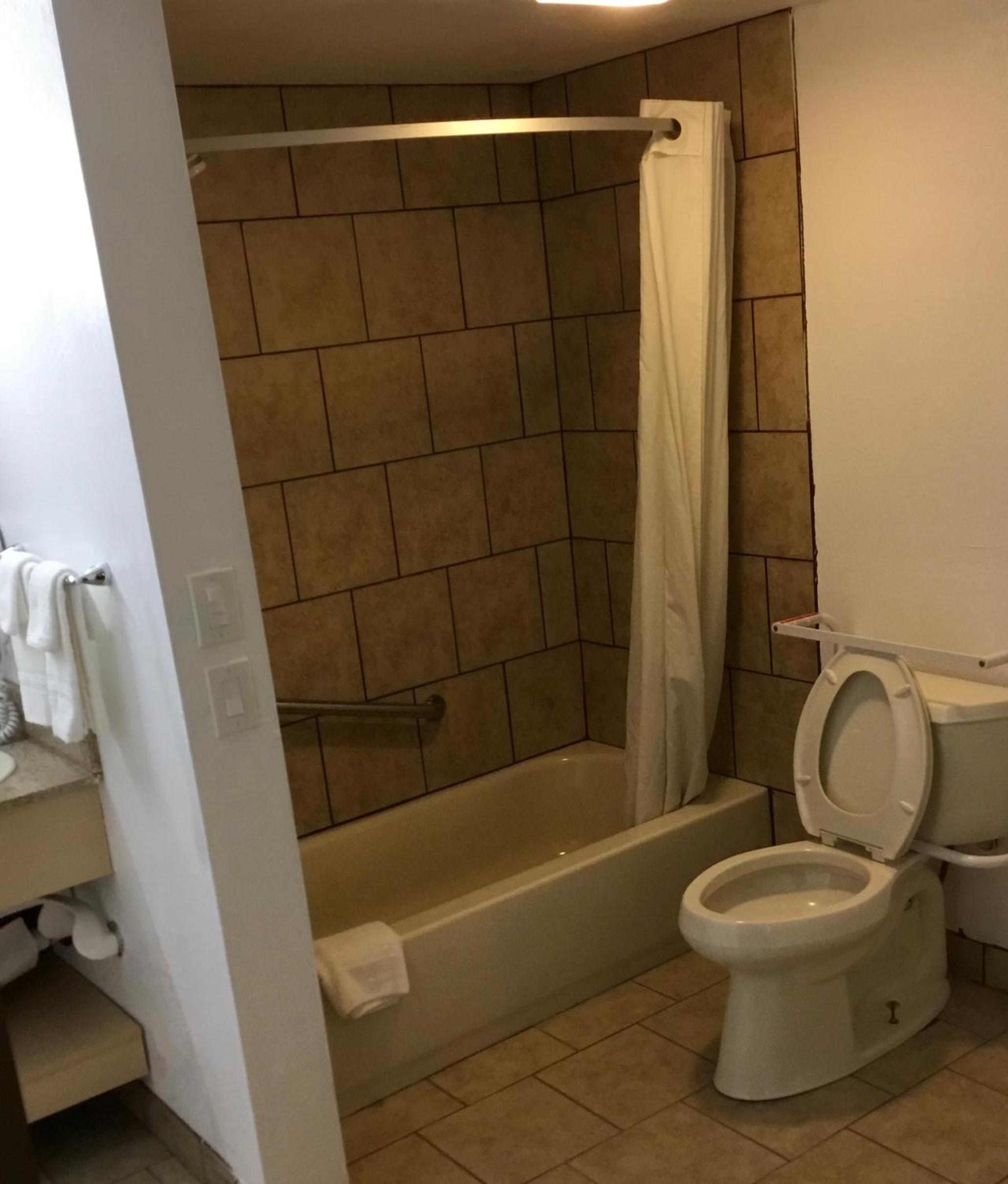 It was easy to get to and check in was quick and the desk clerk was professional. We had a tough night sleeping as it’s close to interstate and had car passing which at times was a bit loud. We also had someone pound on the door and a couple fighting outside which was quite loud.