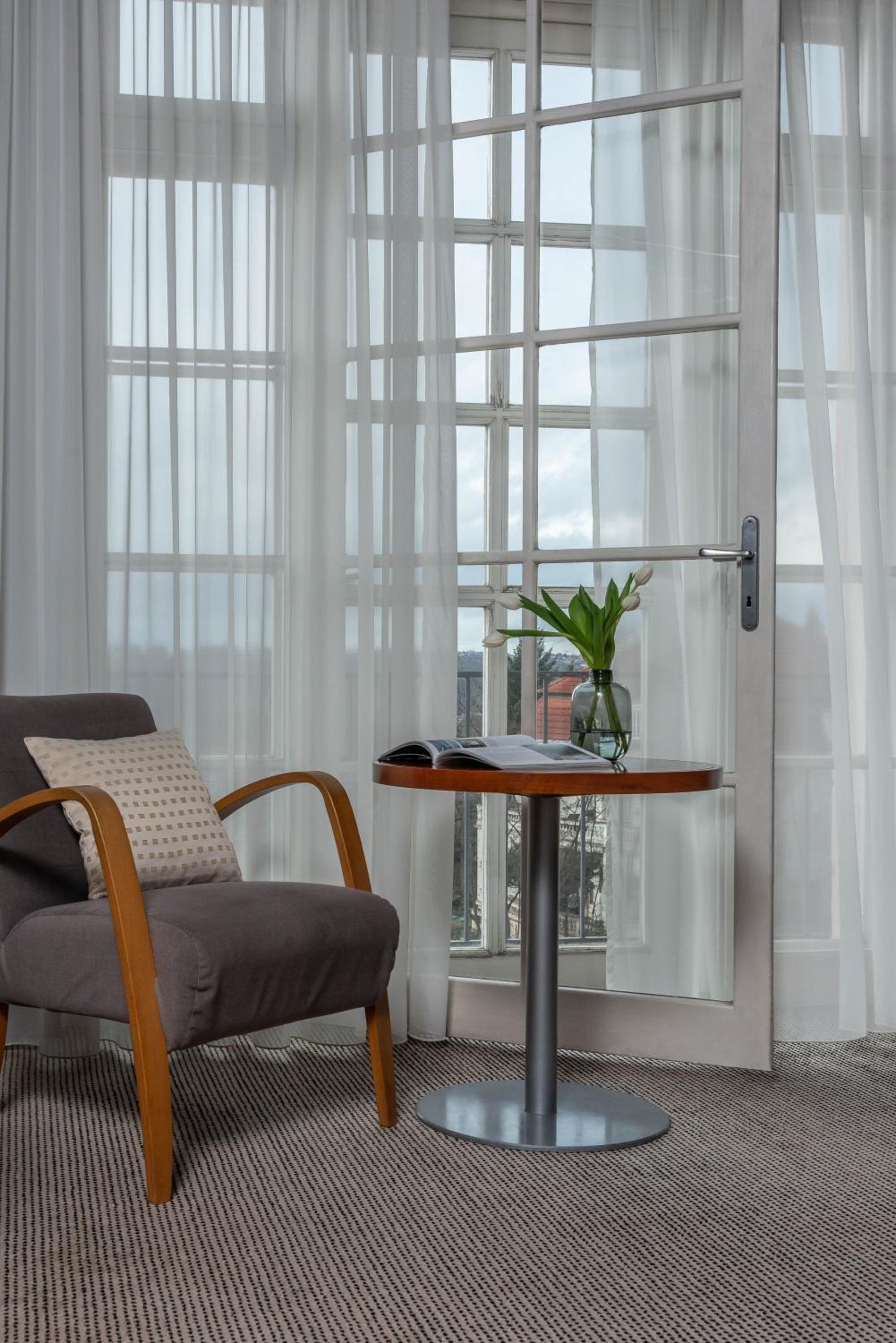Modern Comforts: Stay connected with complimentary wireless internet throughout the hotel. Whether you're enjoying views of Prague Castle or the tranquil garden, every room offers a blend of luxury and artistic inspiration.