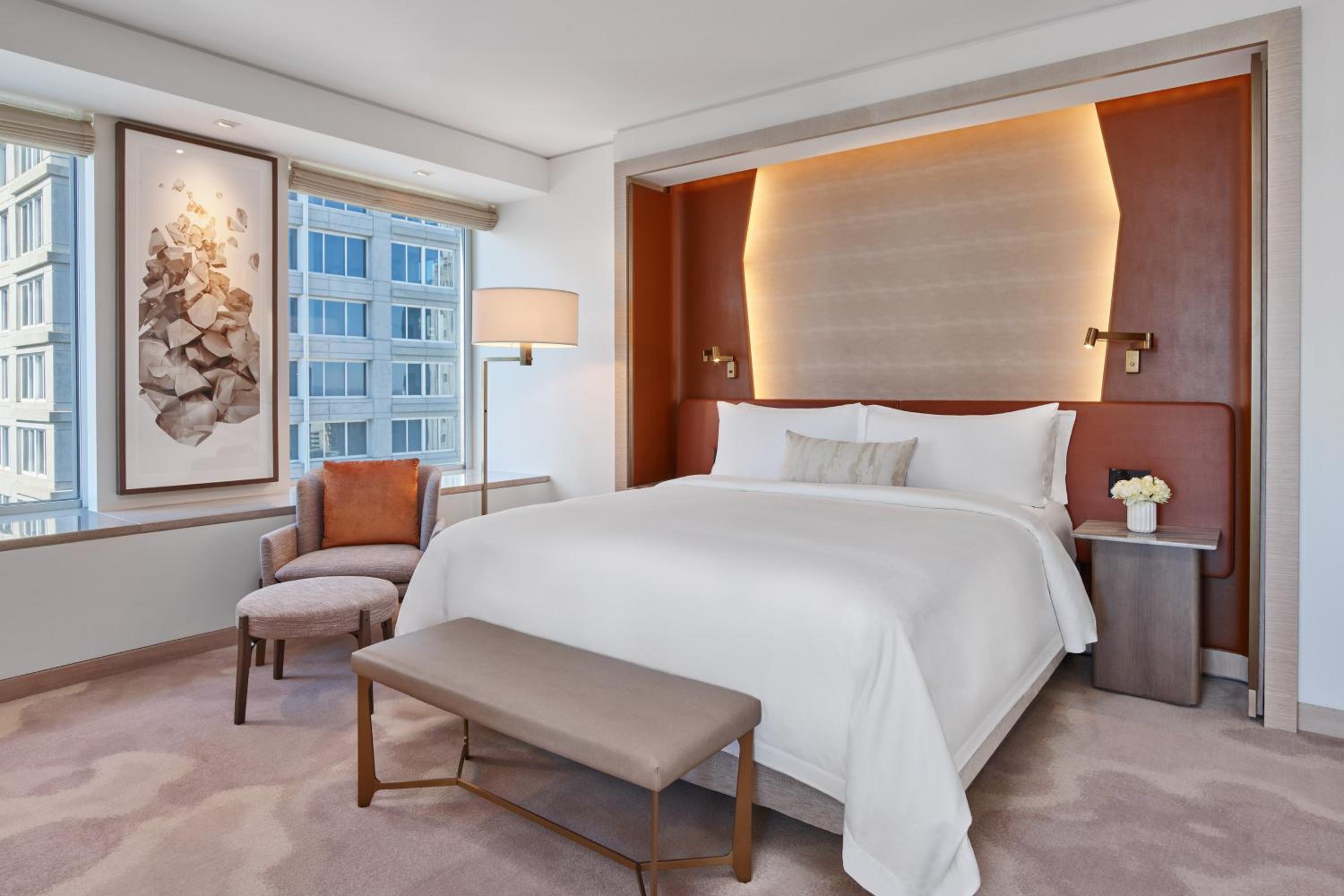 The St Regis San Francisco, nestled in the vibrant SOMA District, offers elegantly decorated rooms with flat-screen TVs and luxurious soaking tubs. Each room also features a minibar for added convenience.