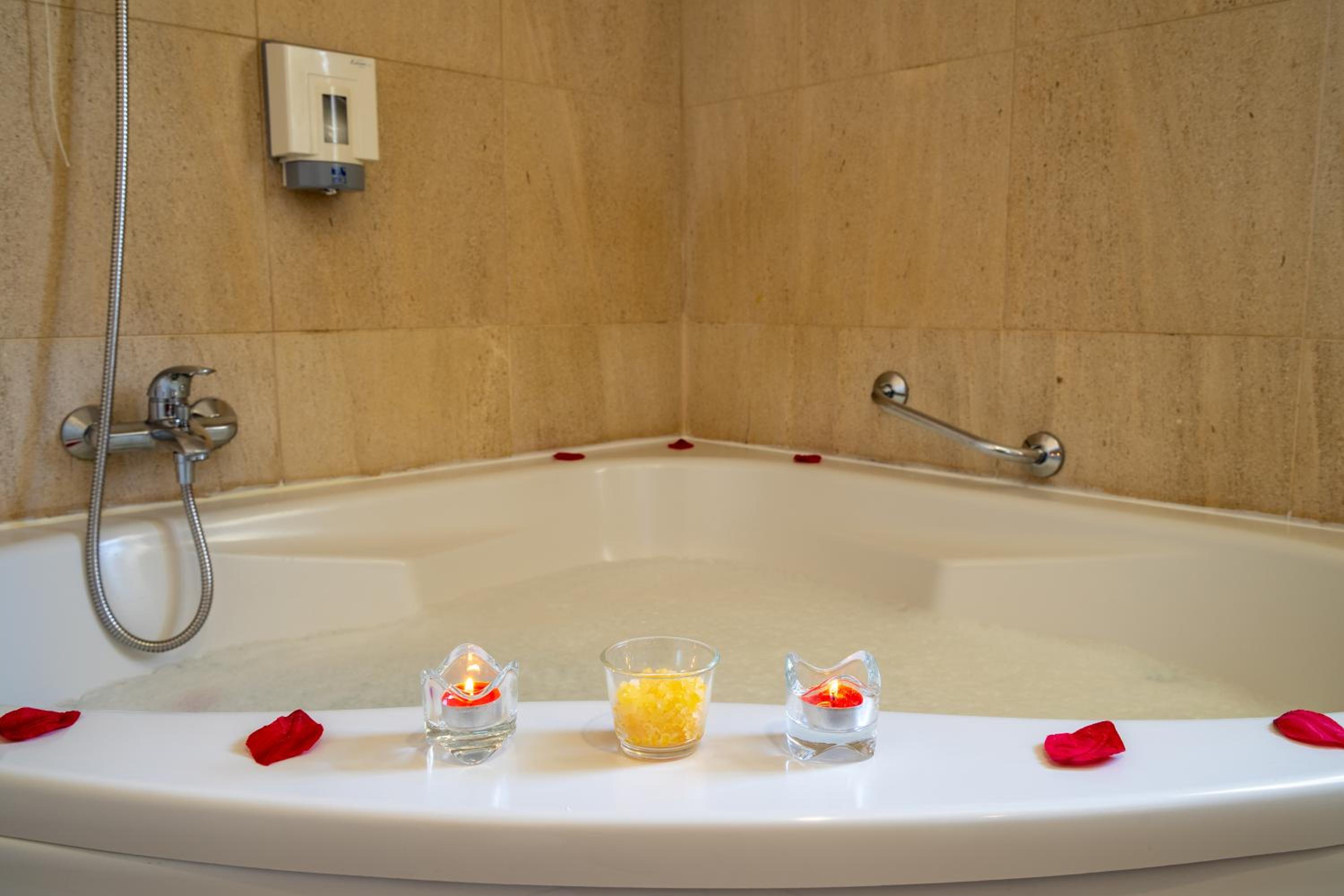 A parte do spa , piscina não é tão legal , a banheira de hidro do quarto , é pequena e quando está a esvaziar o botão não desliga a função hidro , e a água acaba sendo lançada na parede e molha o chão 🤦🏻♀️, o custo adicional de decoração do quarto romântico é muito fraquinho , tv não libera canais, não pode mexer no ar condicionado, gostei mas teve pontos que pode melhorar 👍