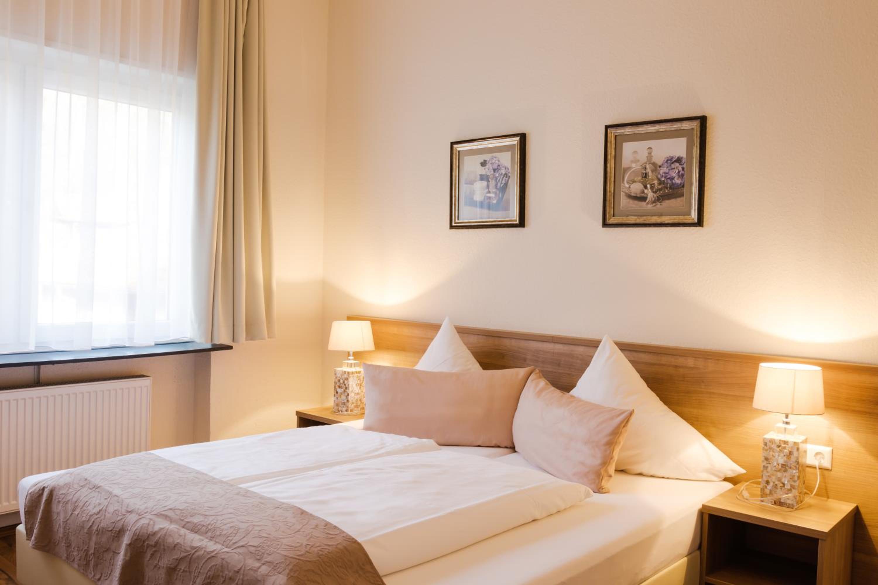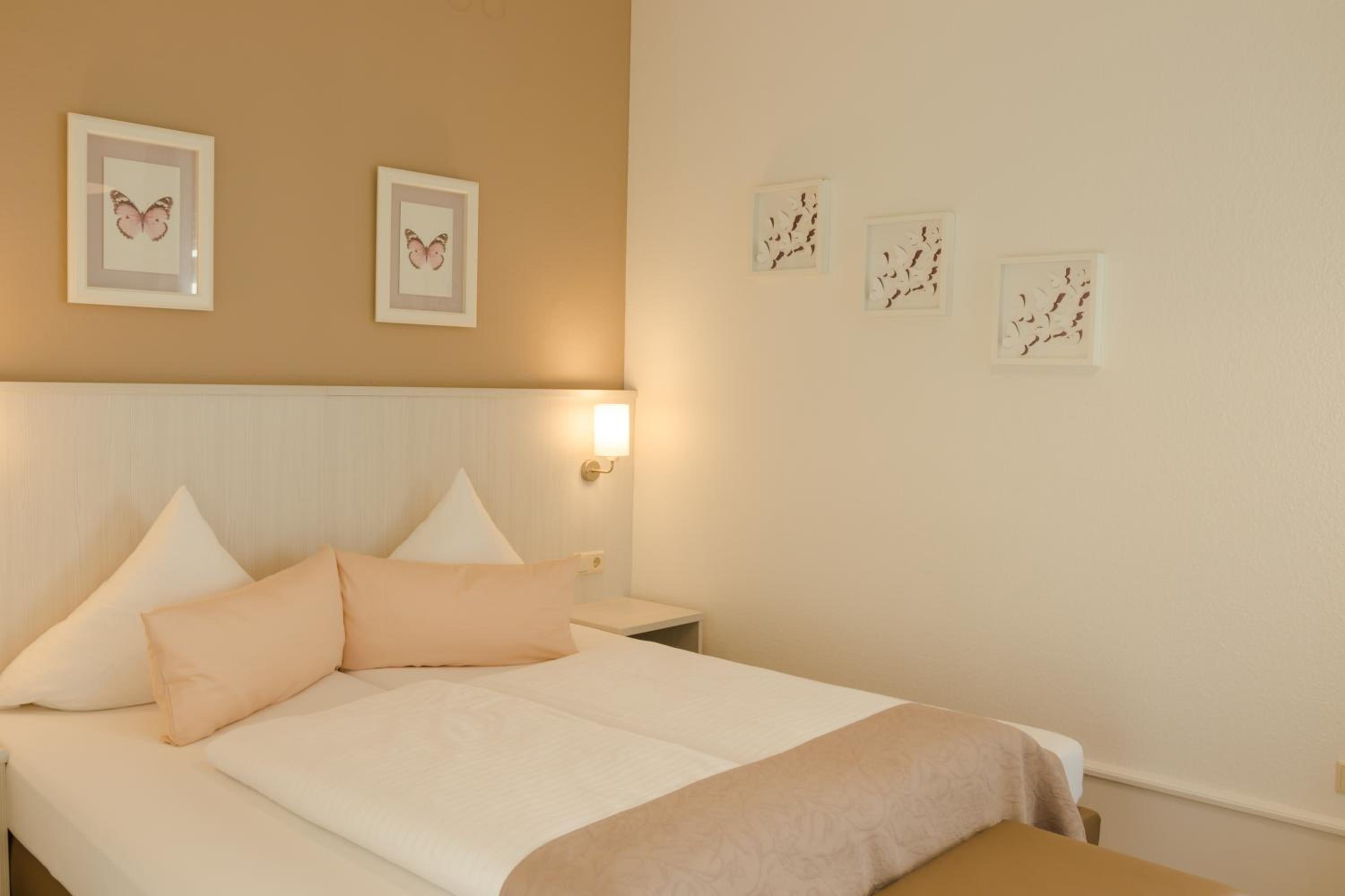 Frühstück hatte eine große Auswahl und schmeckte alles gut bis sehr gut. Für Fahrräder gibt es einen absperrbaren Raum. Parkplatzmöglichkeit hinter dem Hotel war ebenfalls gut, allerdings relativ schmale Parkplätze. Grünanlage hinter dem Hotel ist sehr idyllisch und ladet zum verweilen ein. Hotelzimmer war für mich vollkommen in Ordnung, großen Luxus gab es aber jetzt auch nicht, hatte ich für den Preis aber auch nicht erwartet.